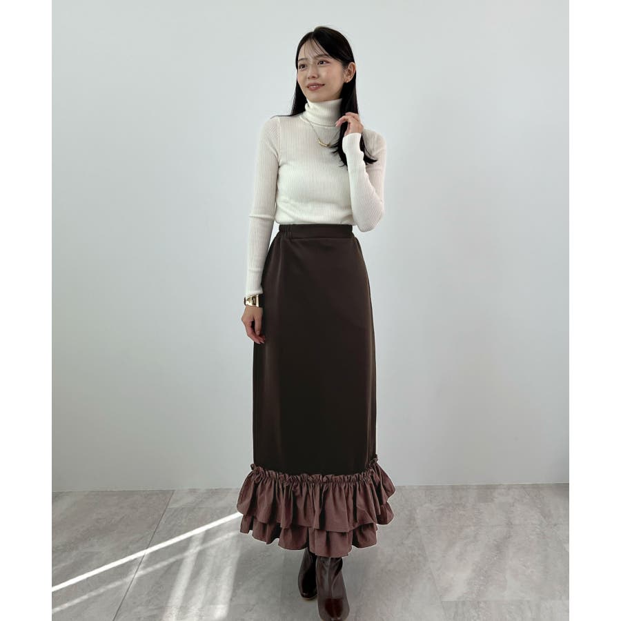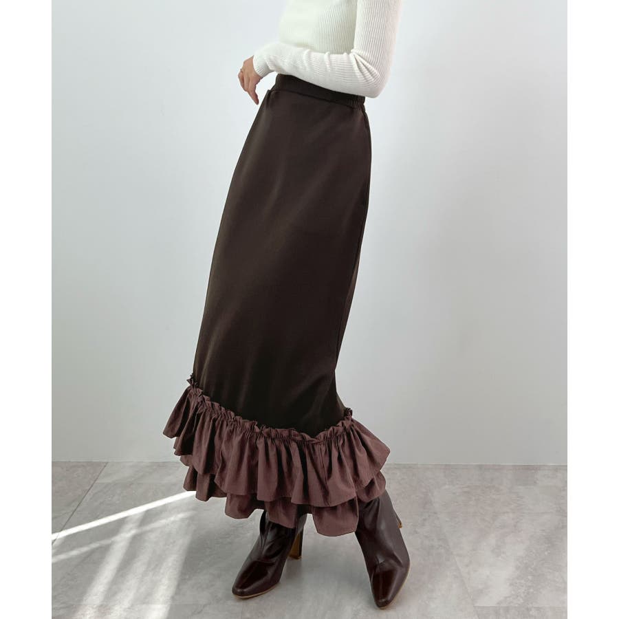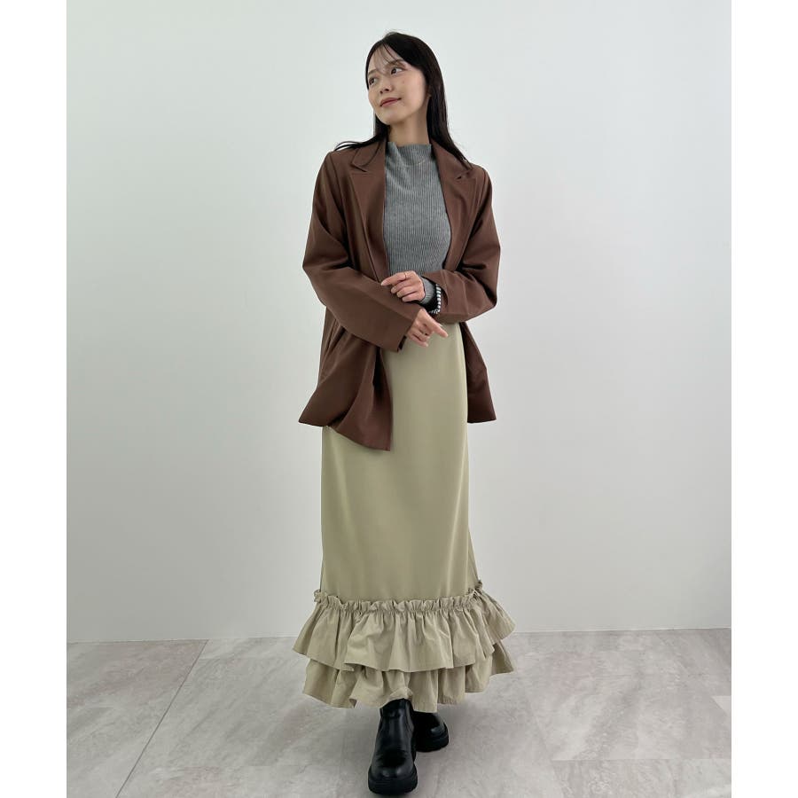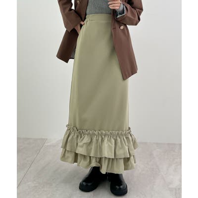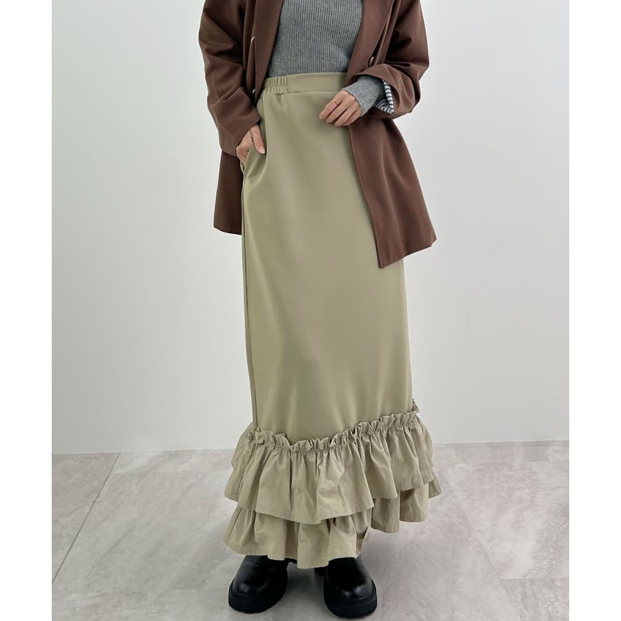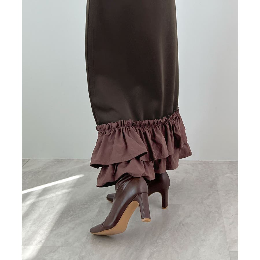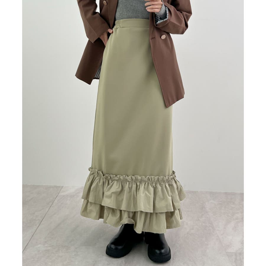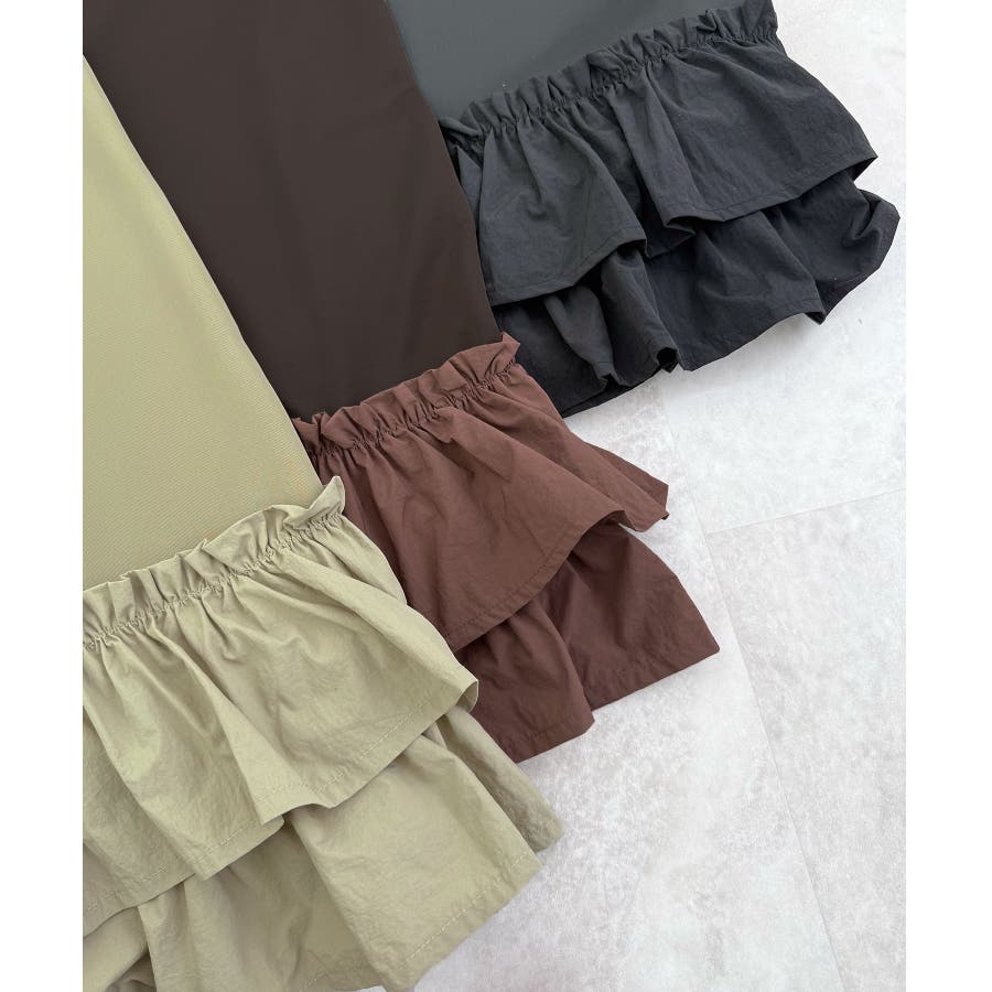 動きに華やぎを添える。ティアードフリルヘムスカート