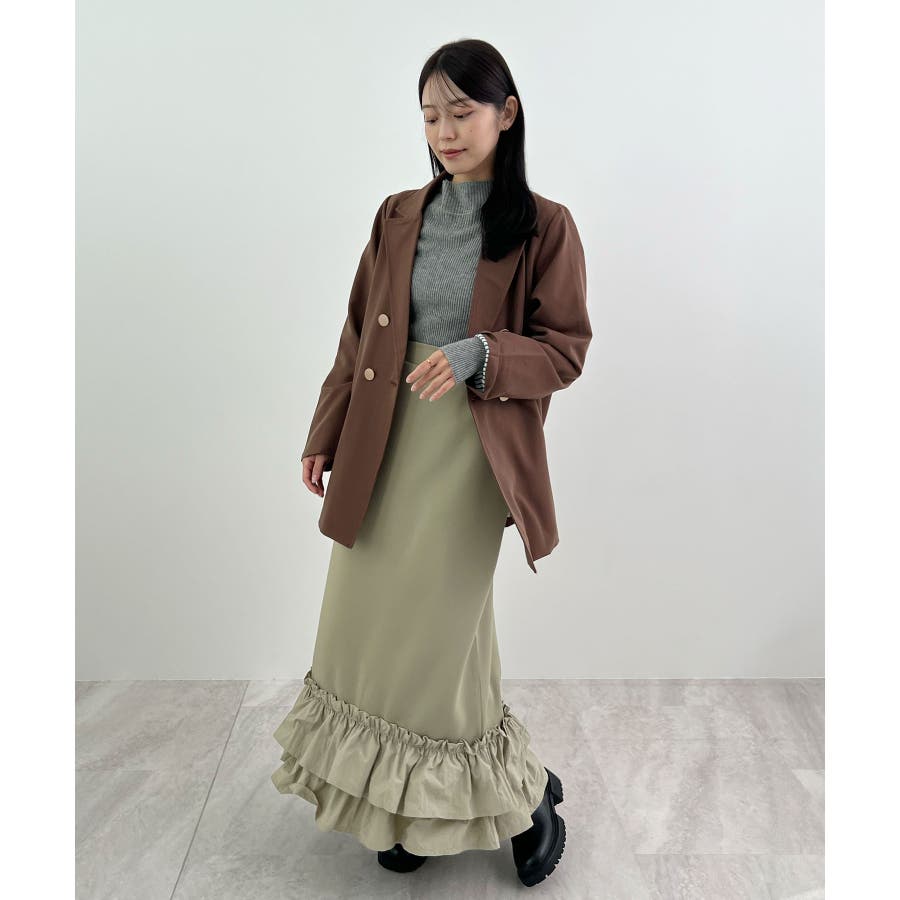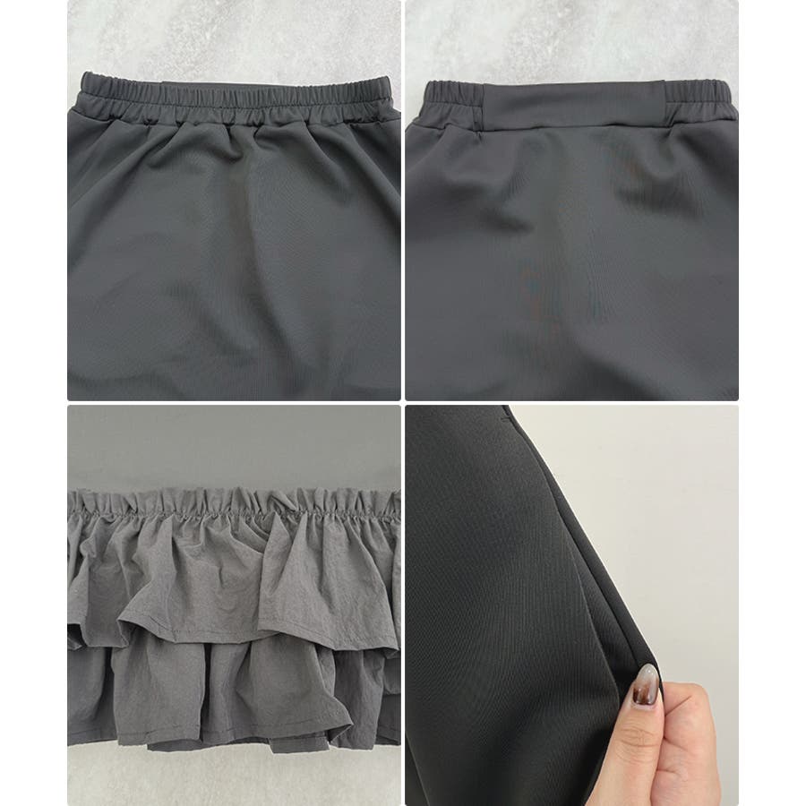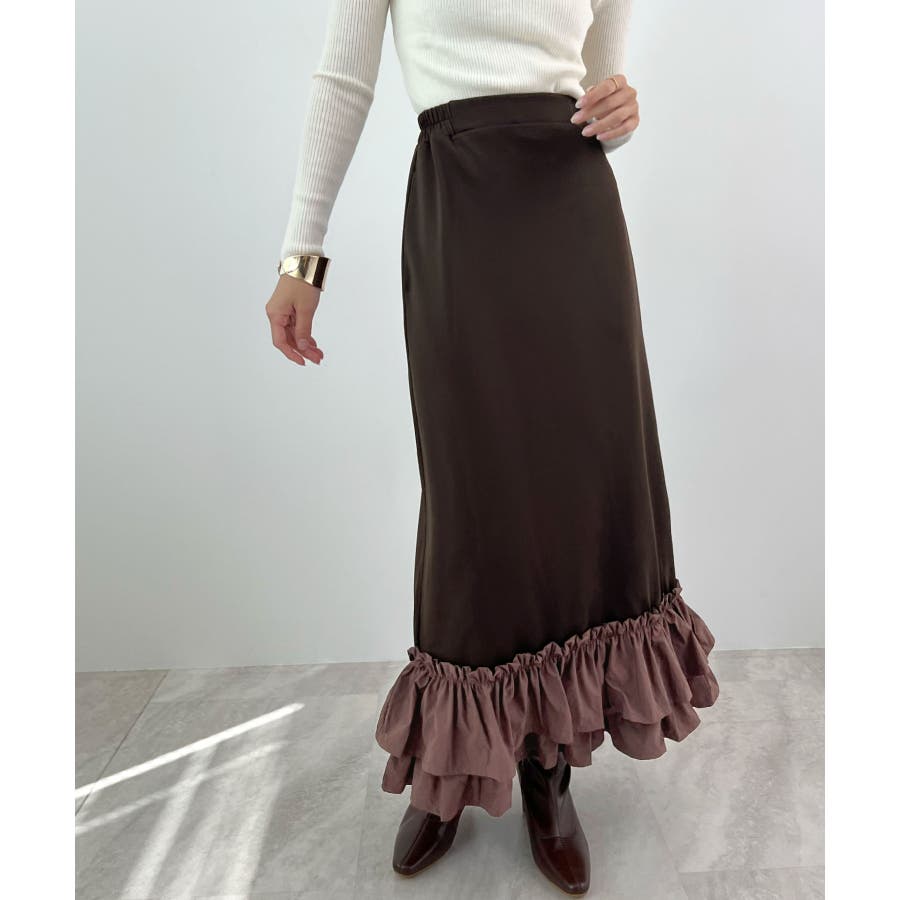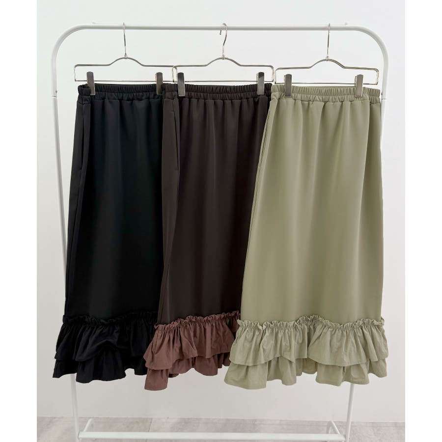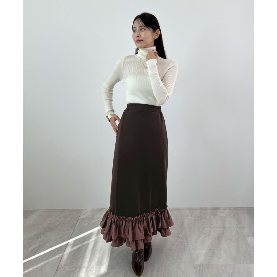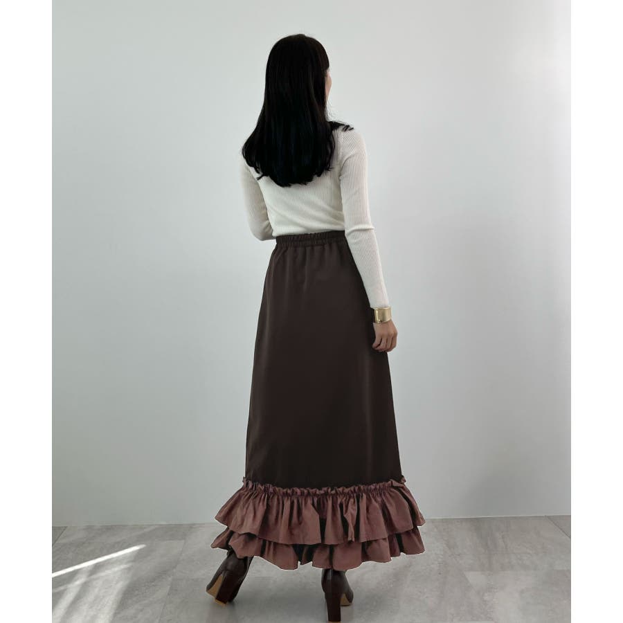 動きに華やぎを添える。ティアードフリルヘムスカート