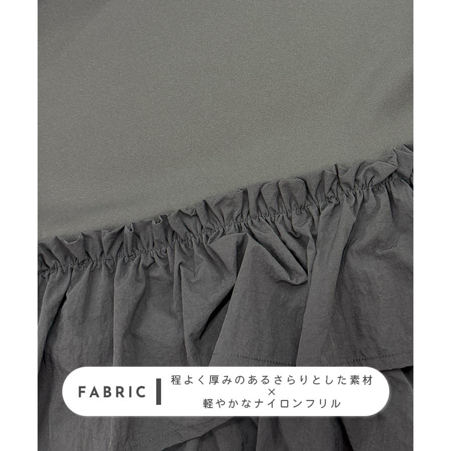 ★生地:程よく厚みのあるさらりとしたポリエステル素材×軽やかなナイロンフリル