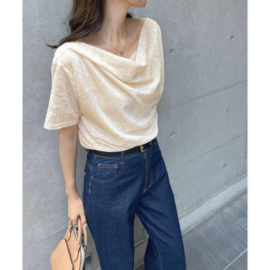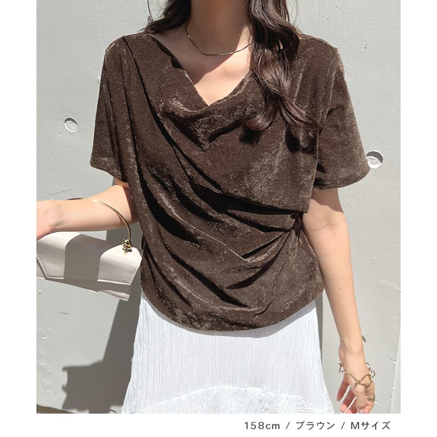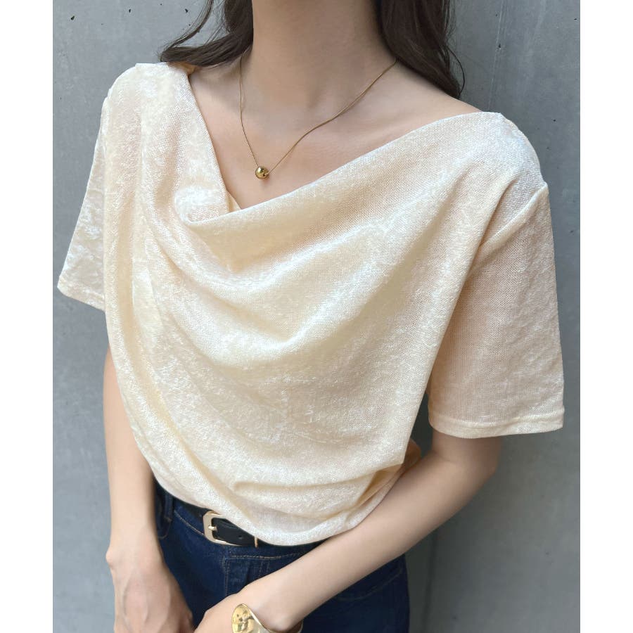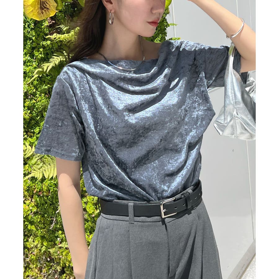 シアー×ドレープが魅せる大人の色気、ドレープシアーベロア半袖Tシャツ
