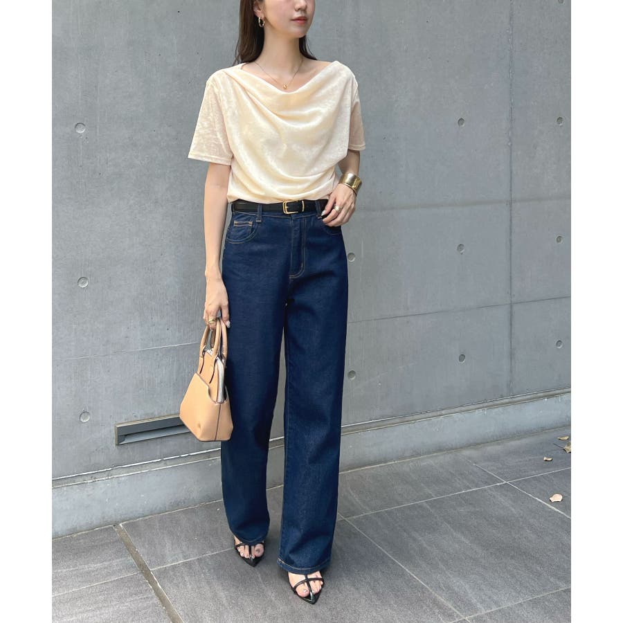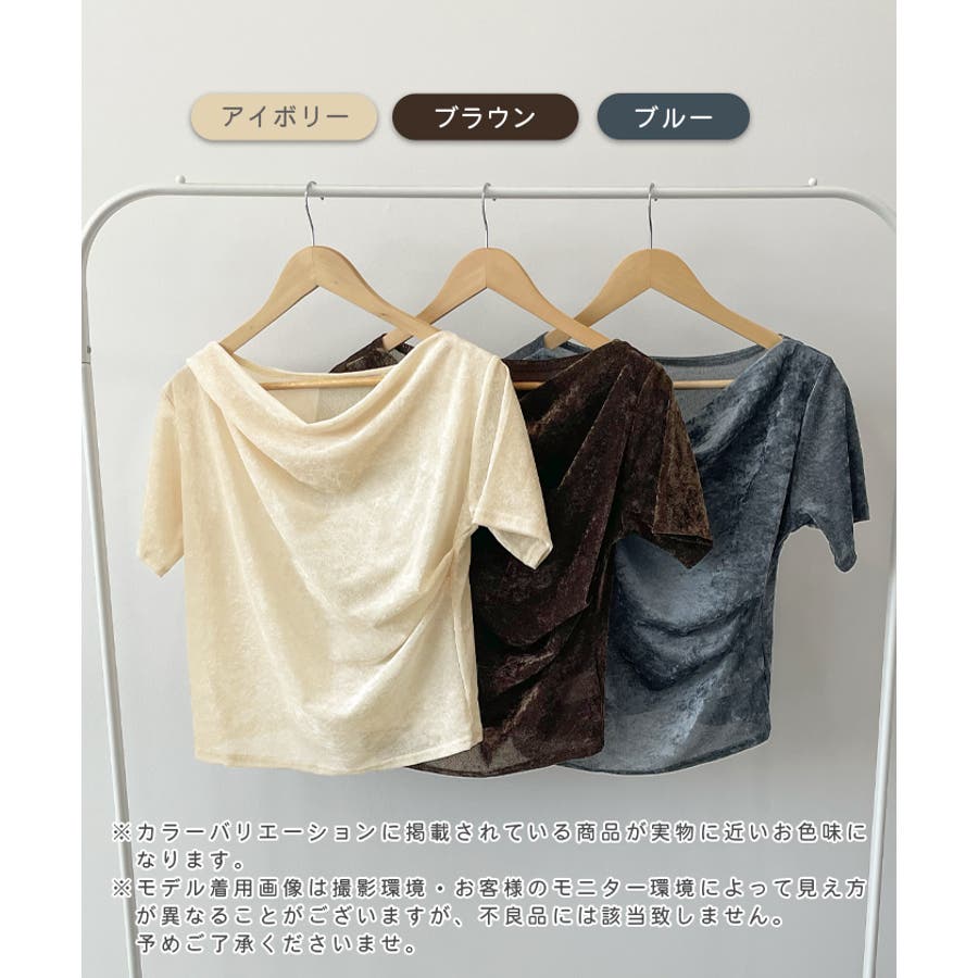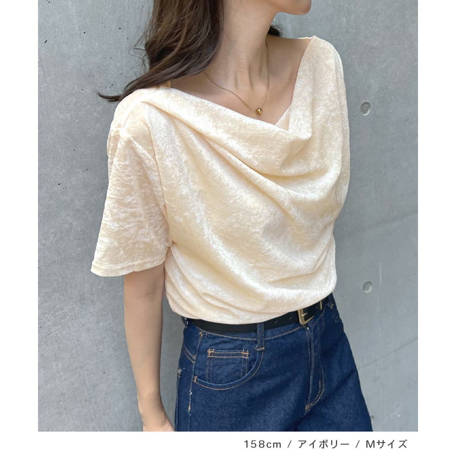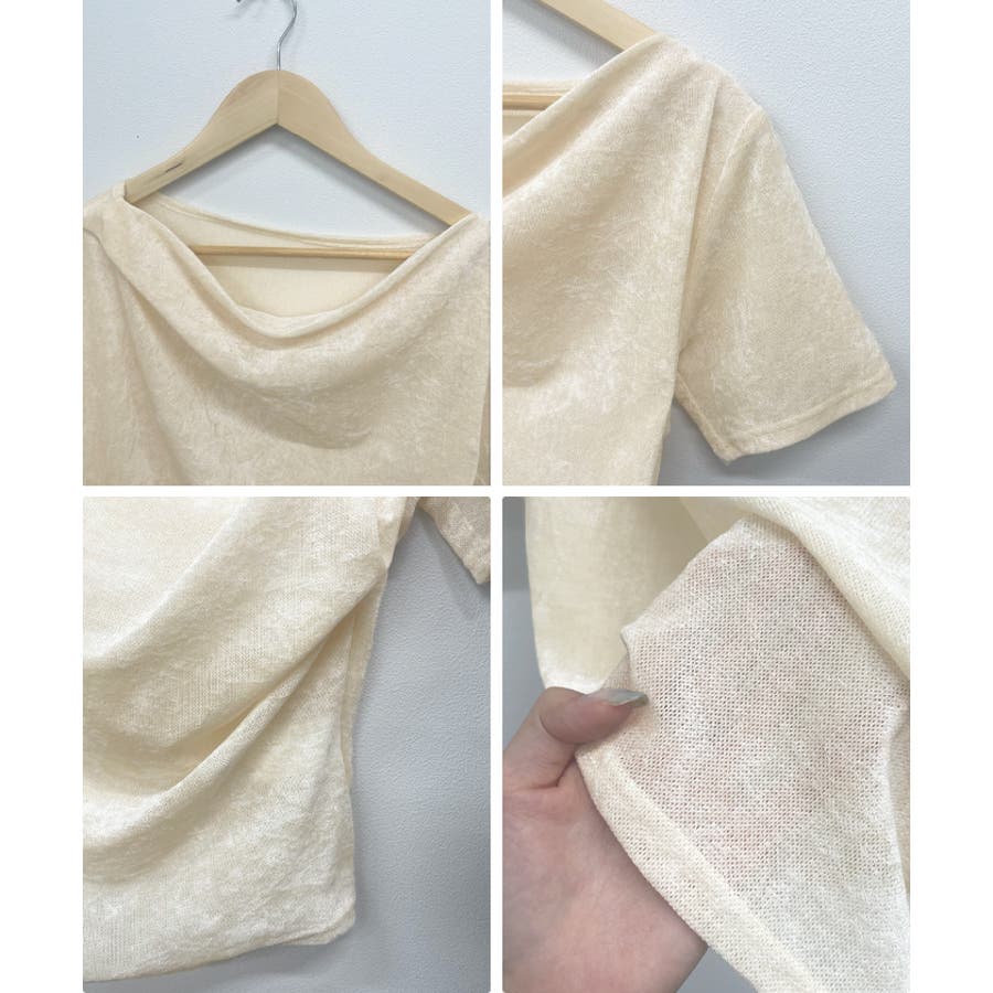 シアー×ドレープが魅せる大人の色気、ドレープシアーベロア半袖Tシャツ