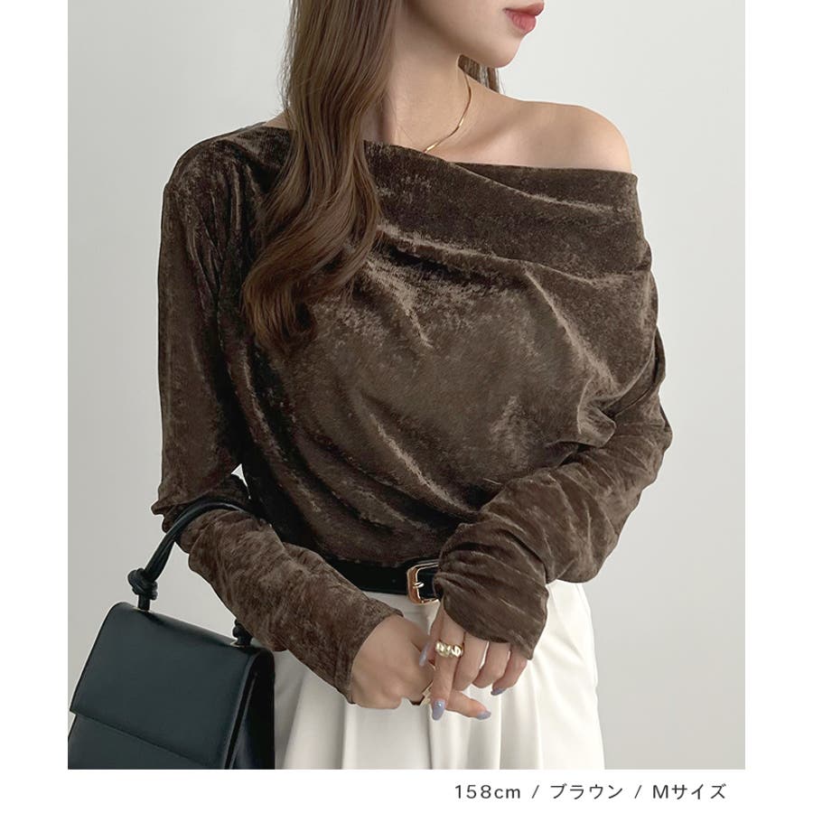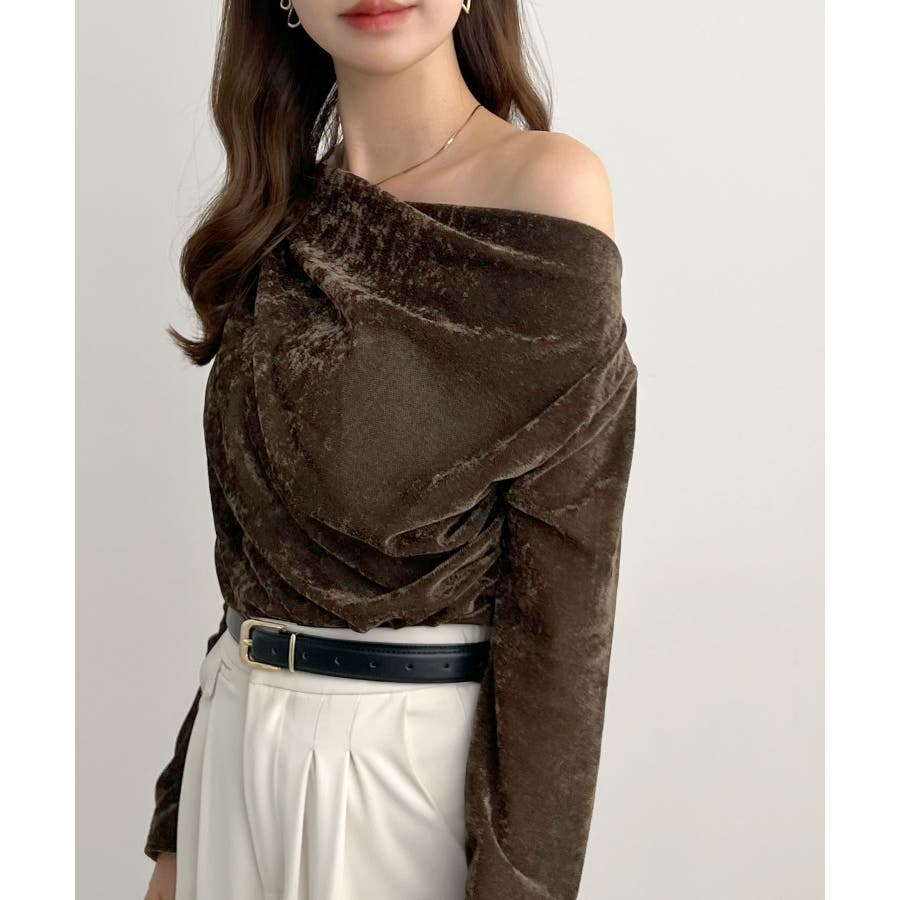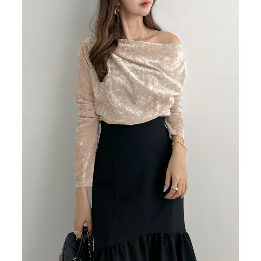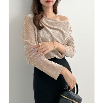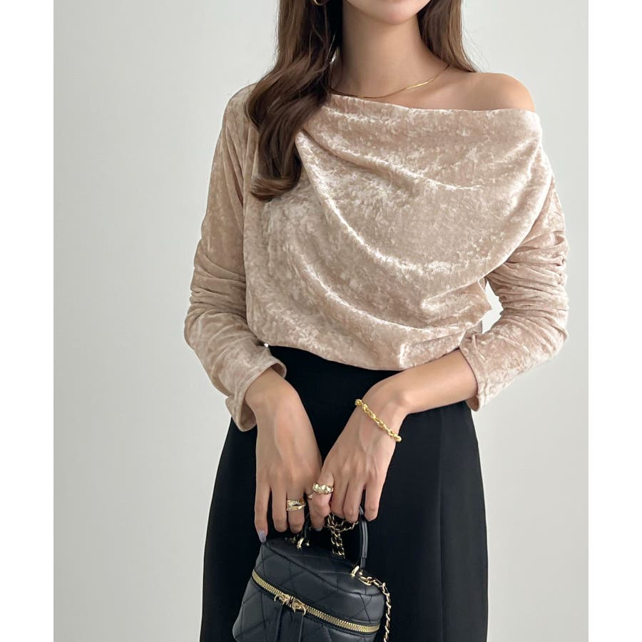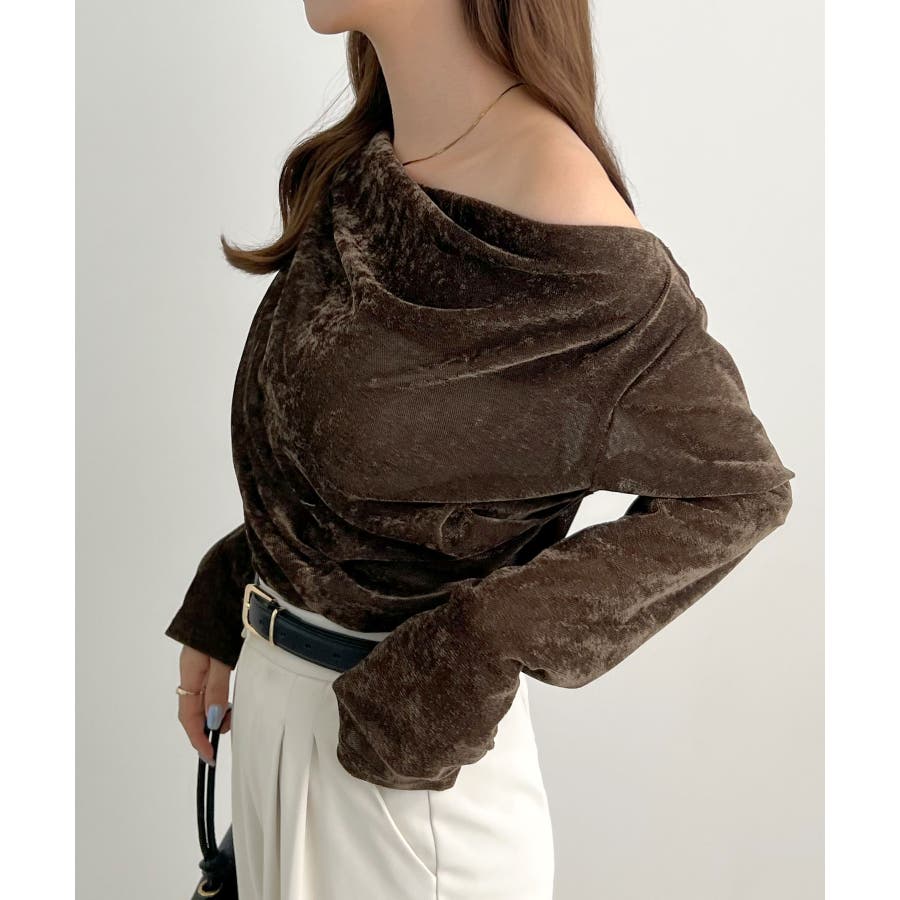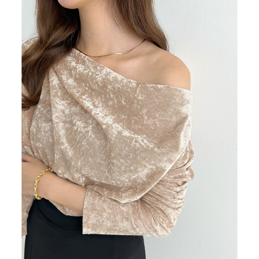 ドレープ感が美しいフロッキー素材のこなれトップス