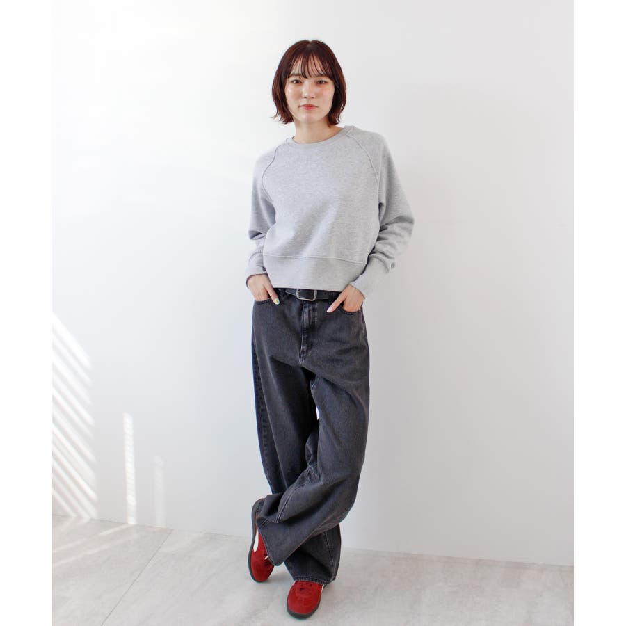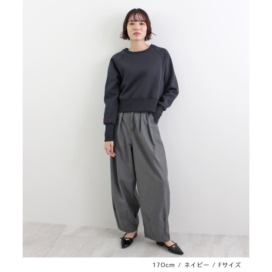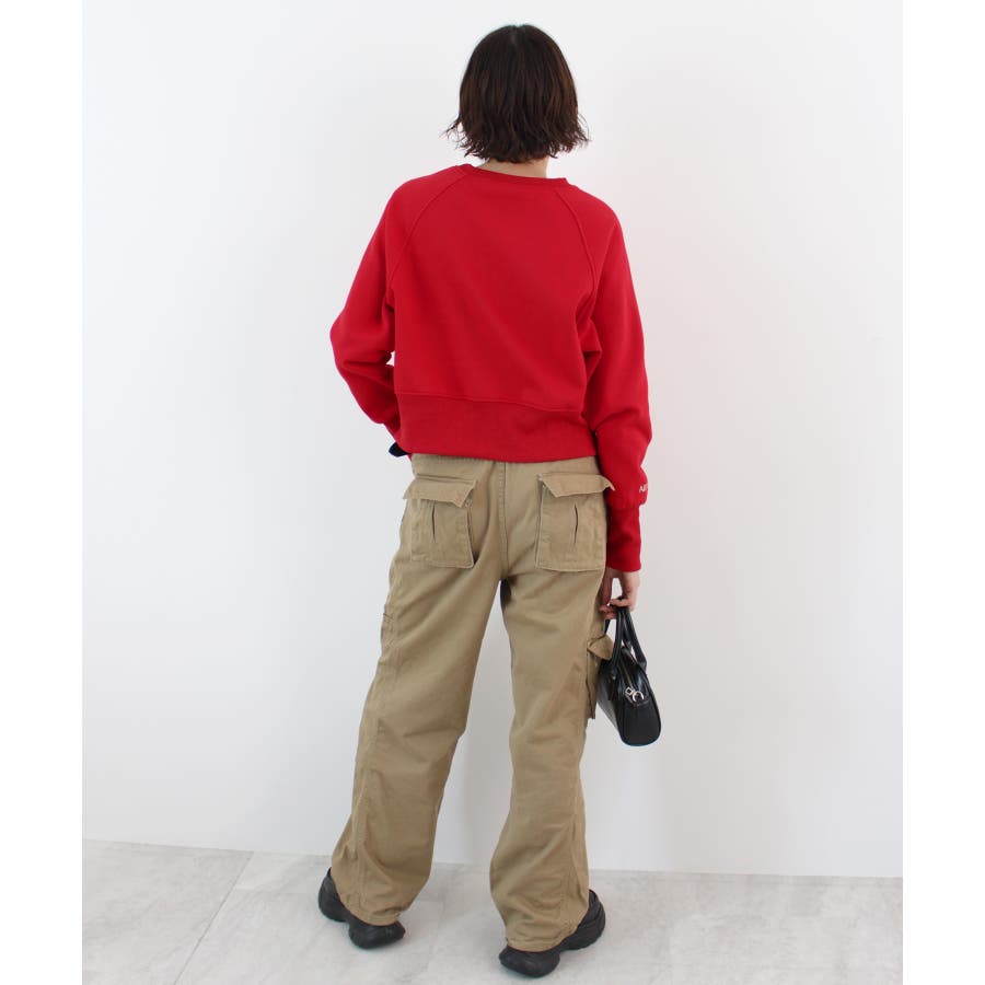 手元のロゴ刺繍がポイントの裏起毛ショート丈スウエットが新登場!程よい丈感や、大きめのリブがスタイルアップ効果を期待できるスウエット。