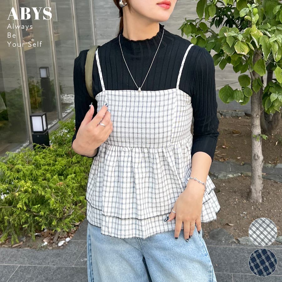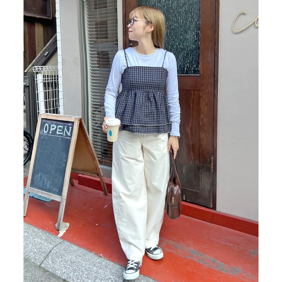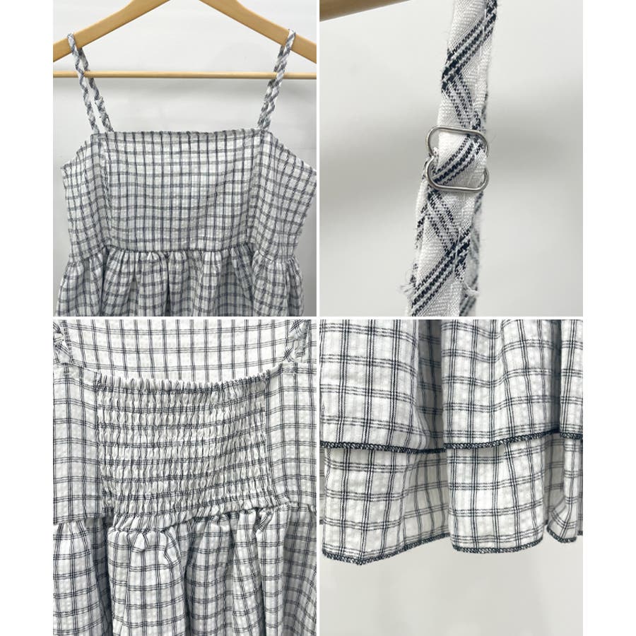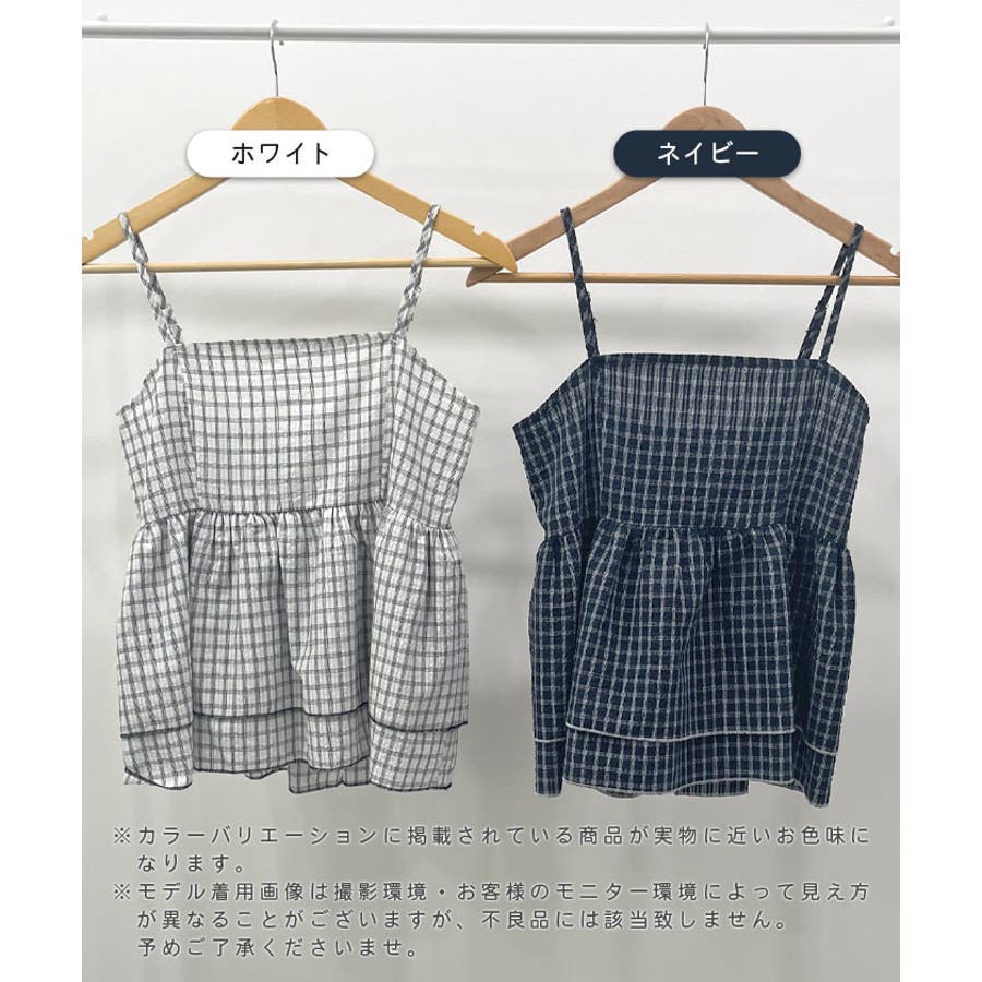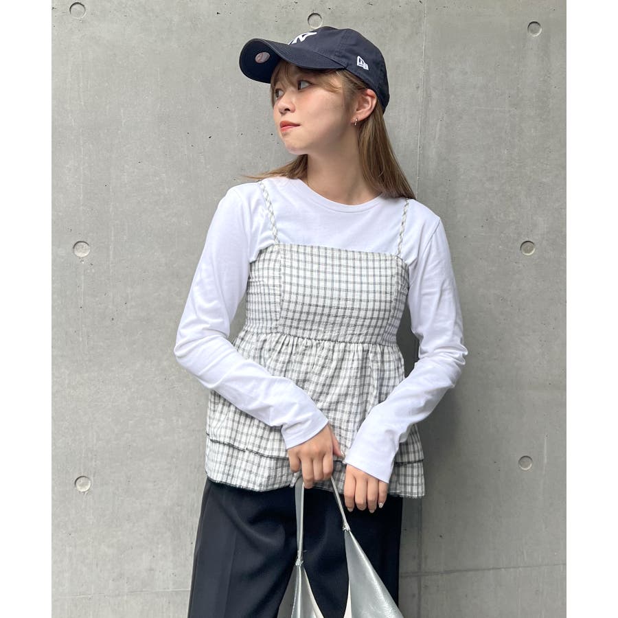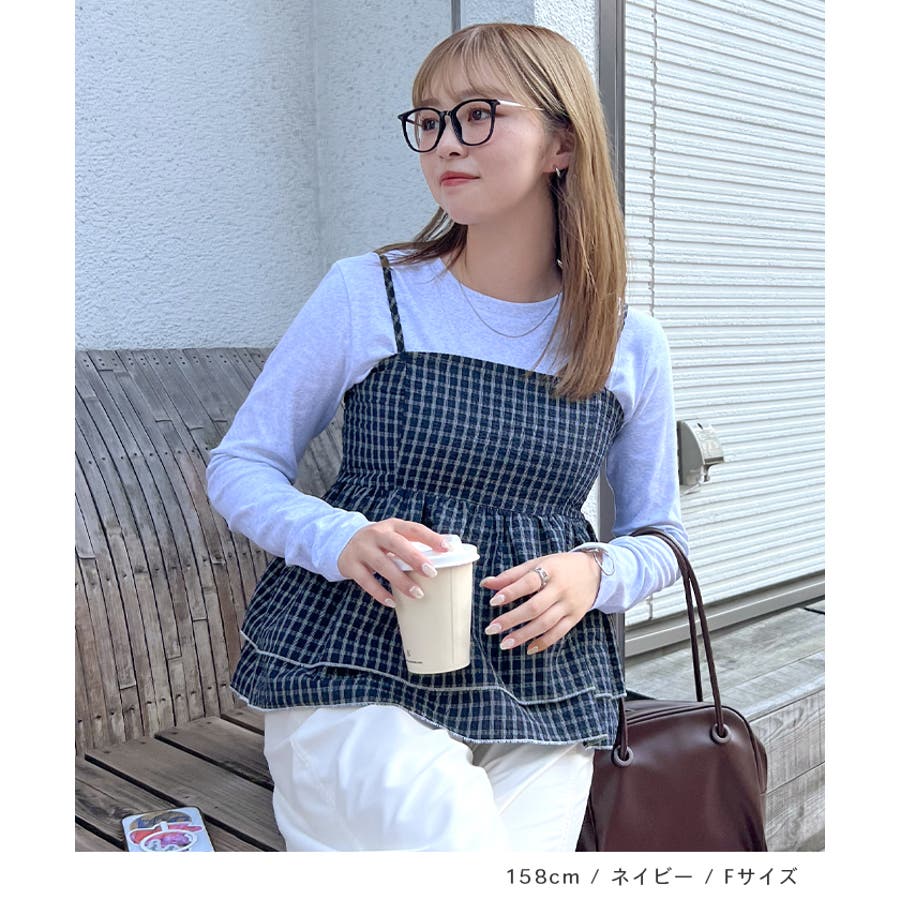 2段フリル×チェックで大人可愛い主役トップス。チェックキャミビスチェ