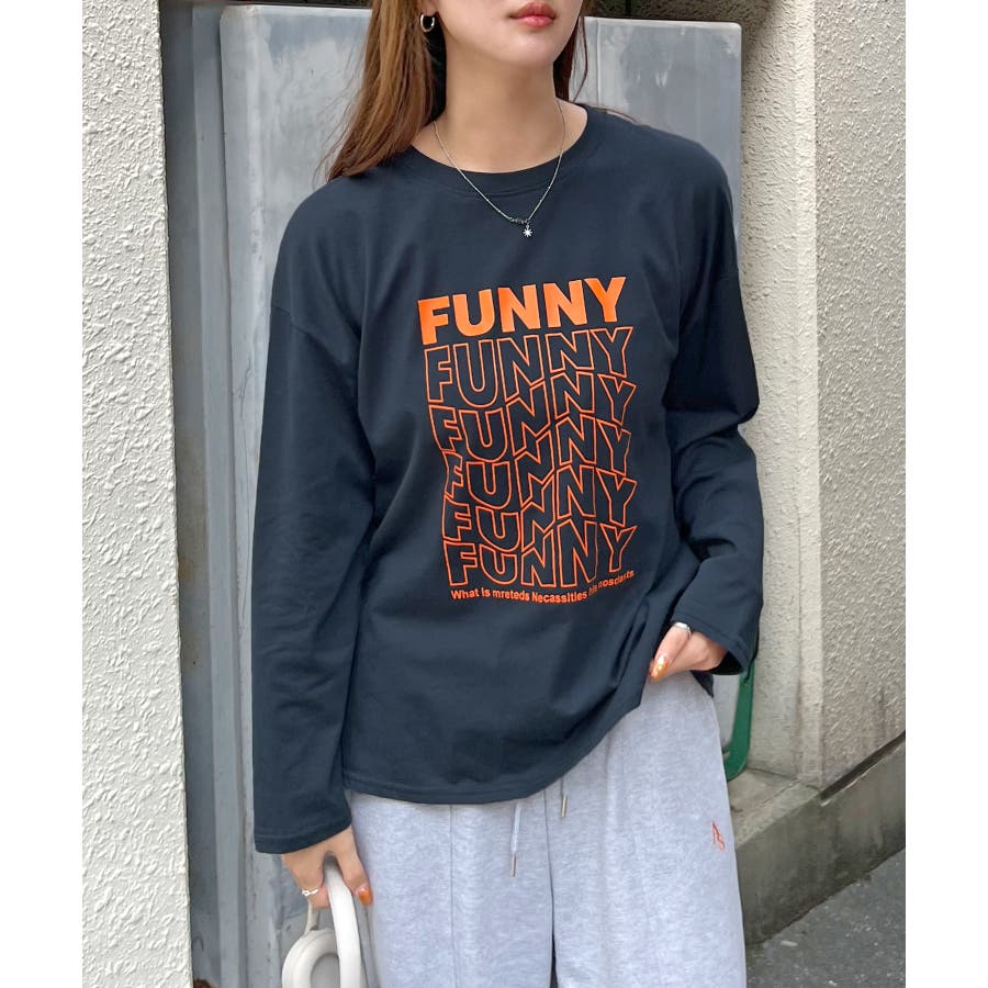《ABYS》1枚で映える存在感ロングT。 FUNNYロゴプリント長袖Tシャツ