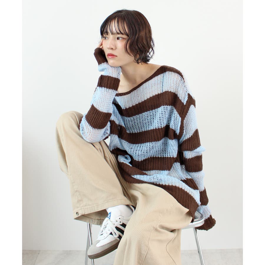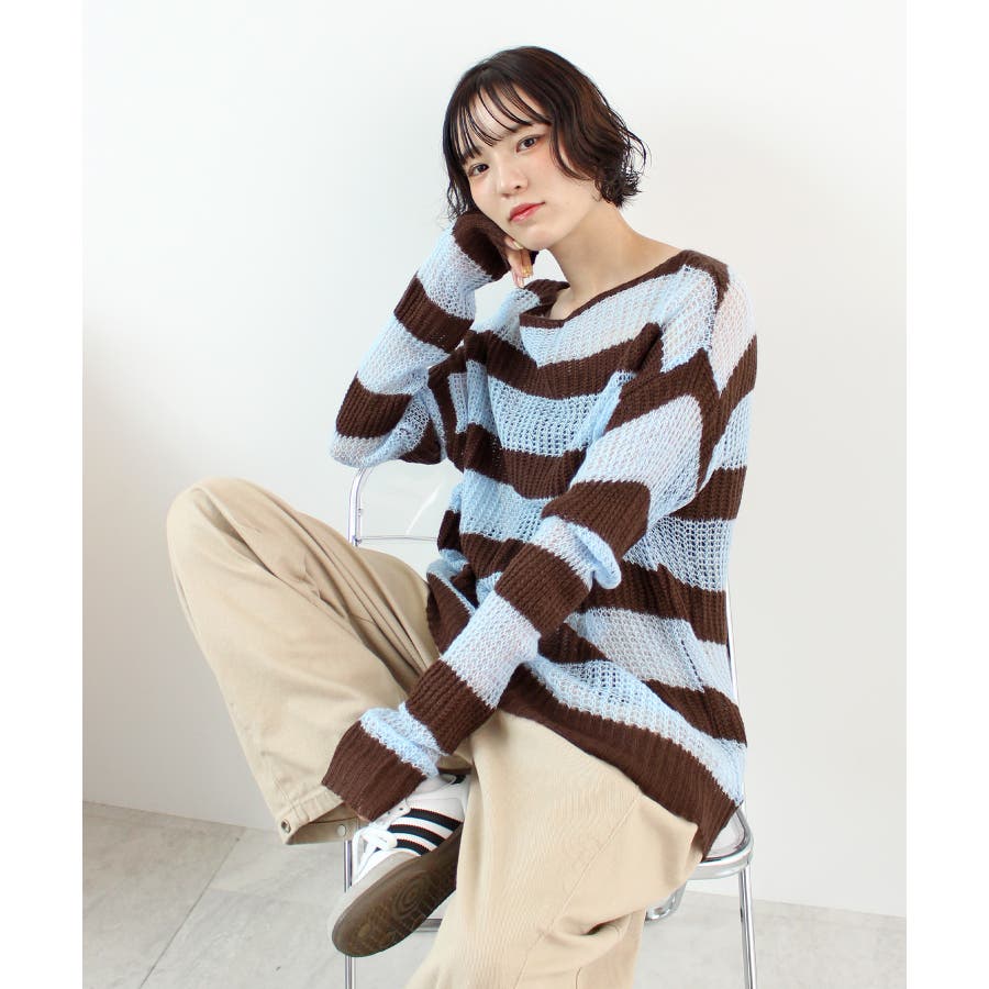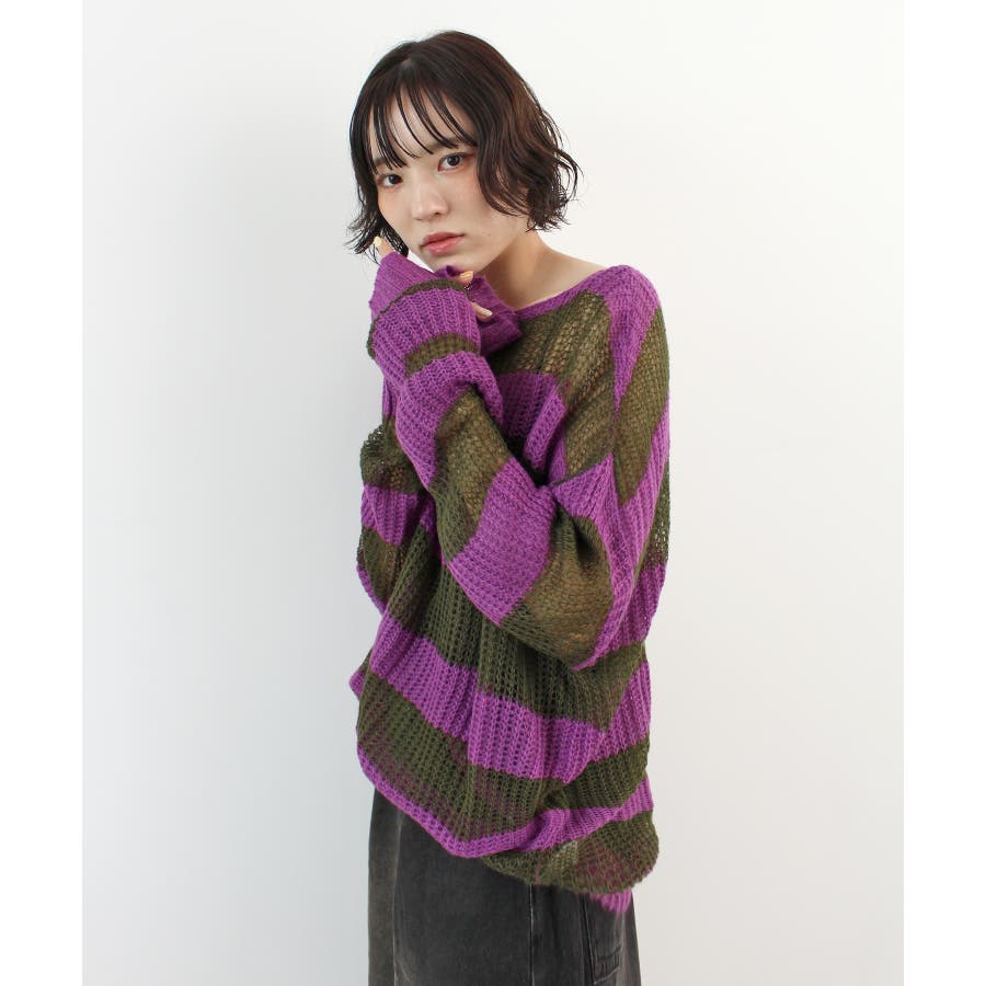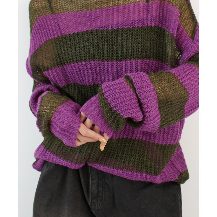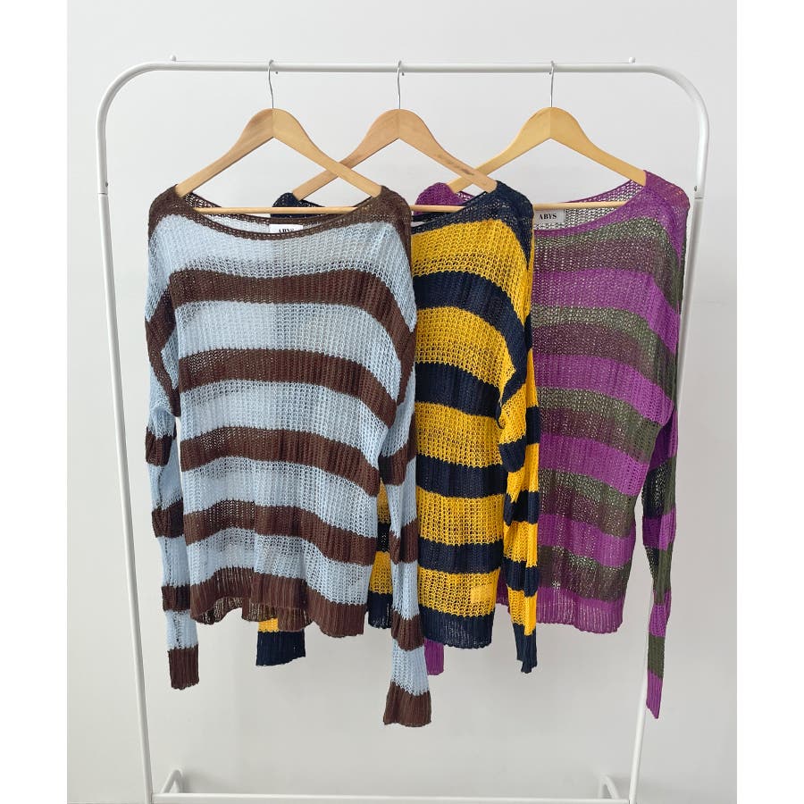 《ABYSアビス》こだわりある配色!透かし編みボーダーシアーニット