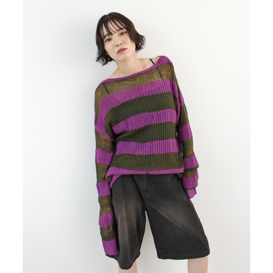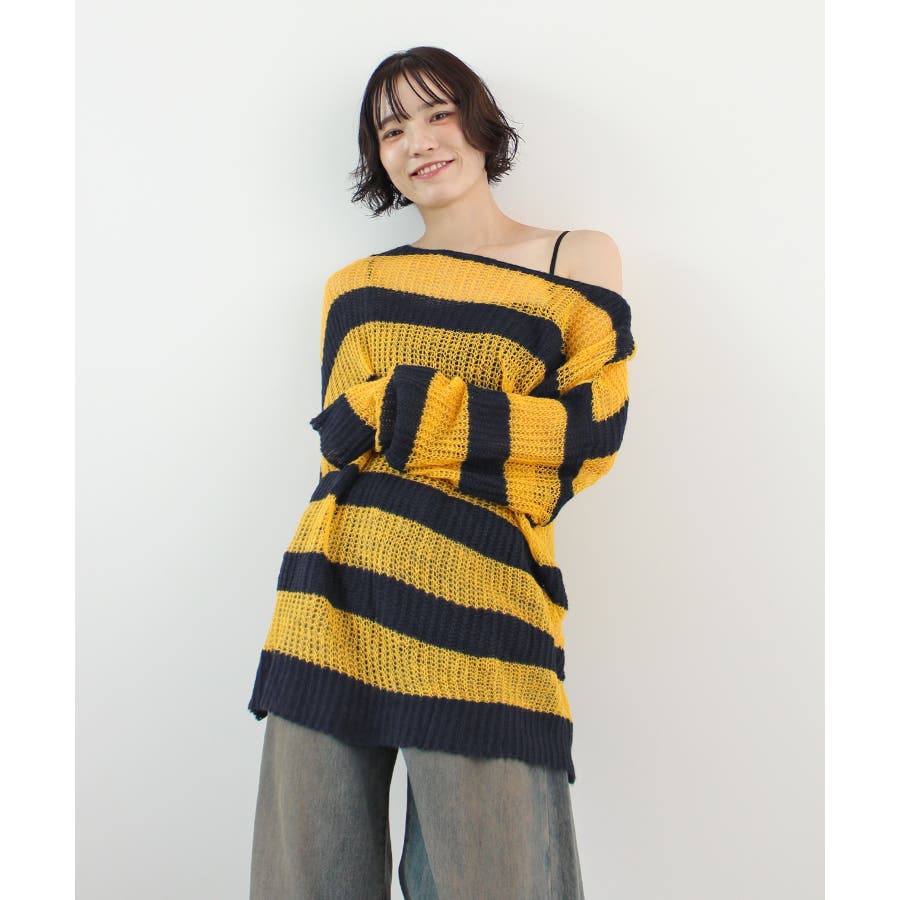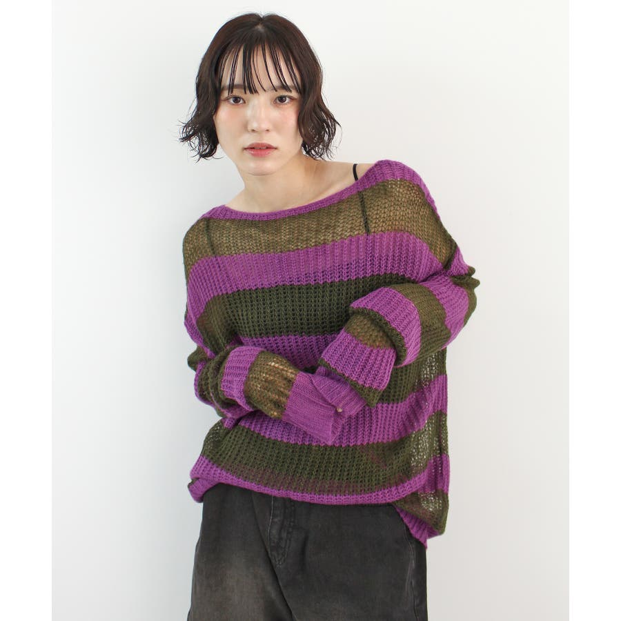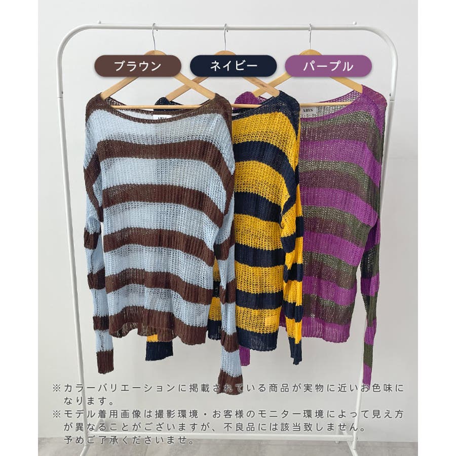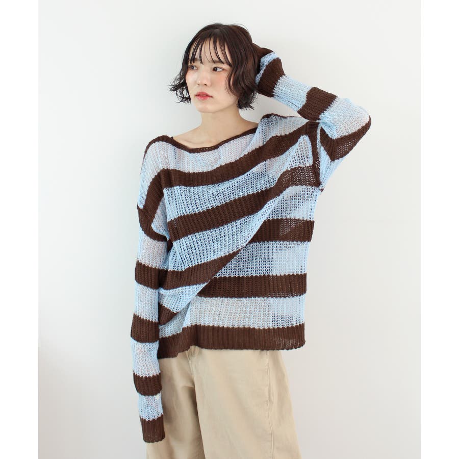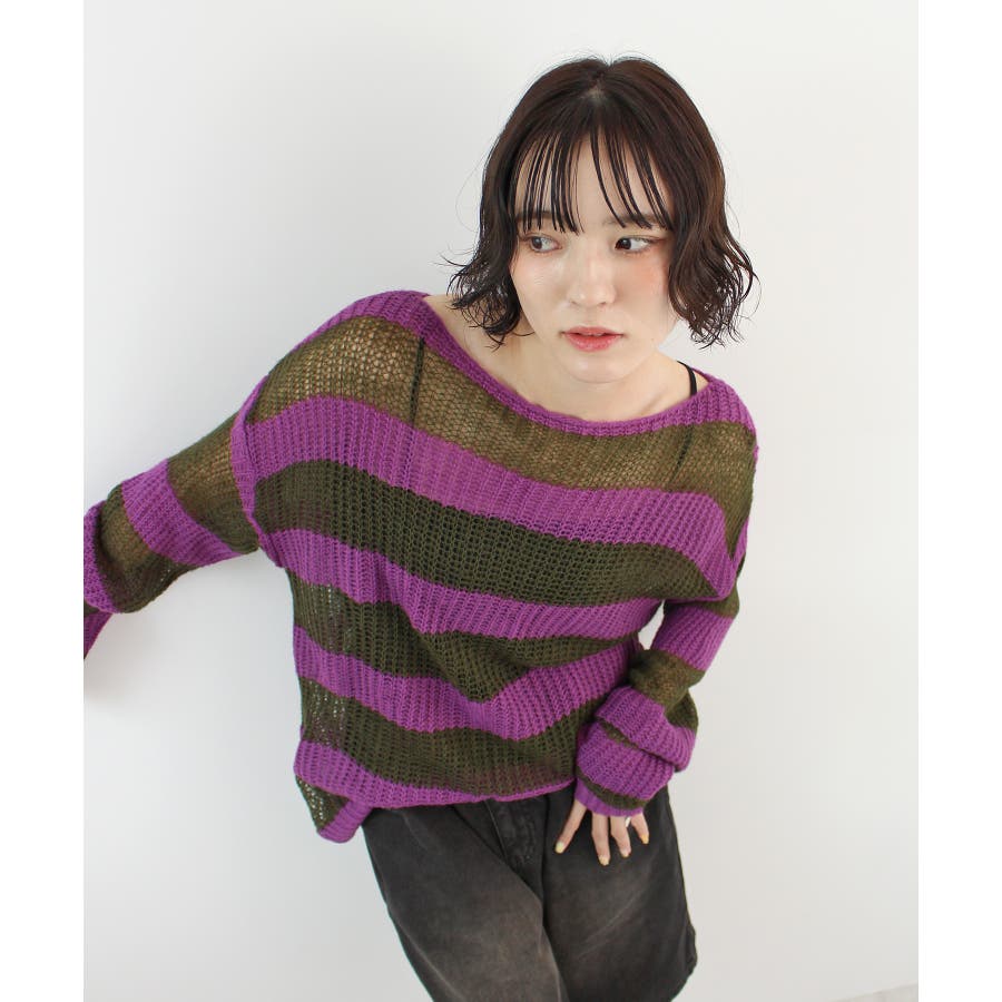 《ABYSアビス》こだわりある配色!透かし編みボーダーシアーニット