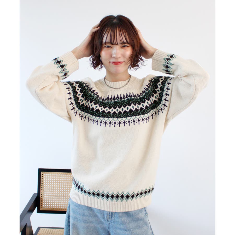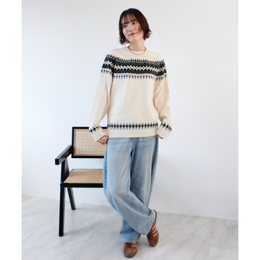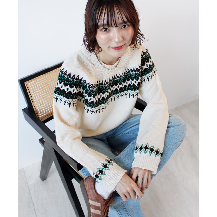 《ABYS》季節感たっぷりの定番ニット。ノルディック柄ニットプルオーバー