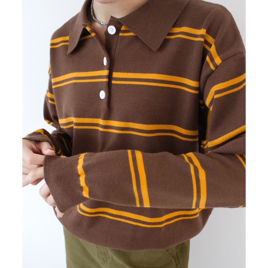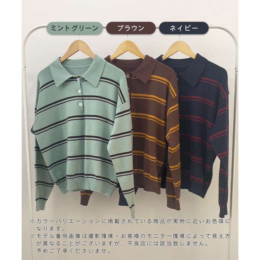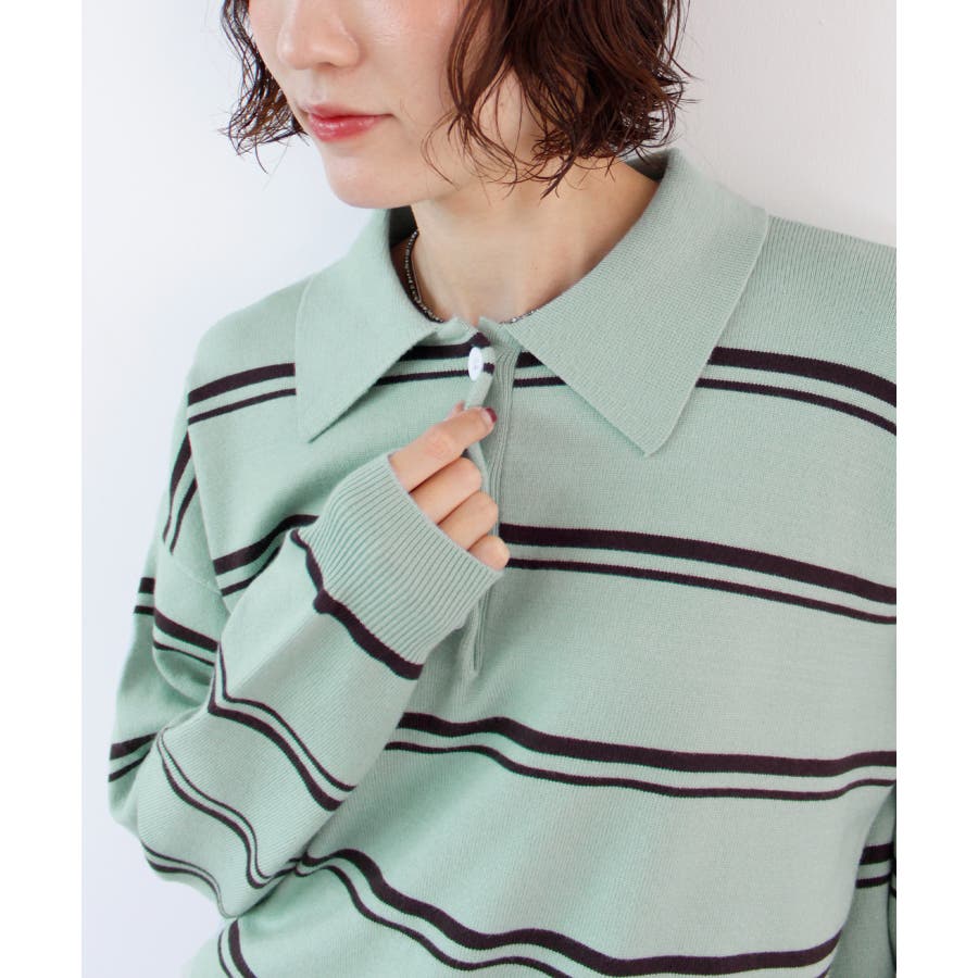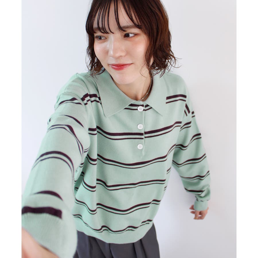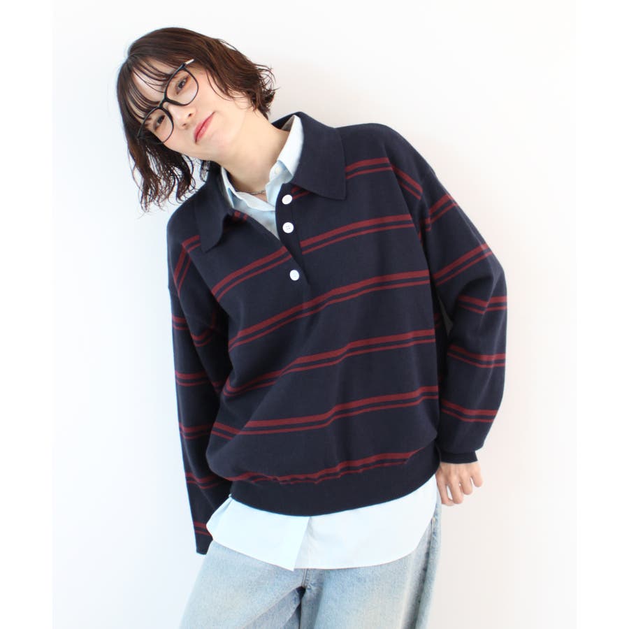 《ABYS》こなれボーダーでラフにきめる。襟付きボーダーポロニットトップス