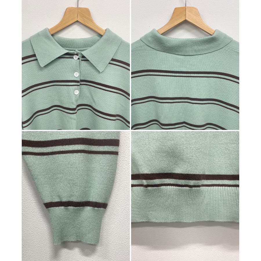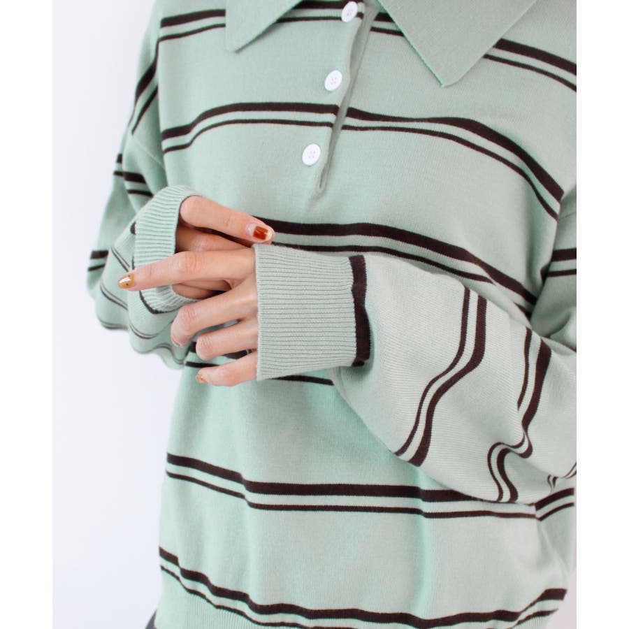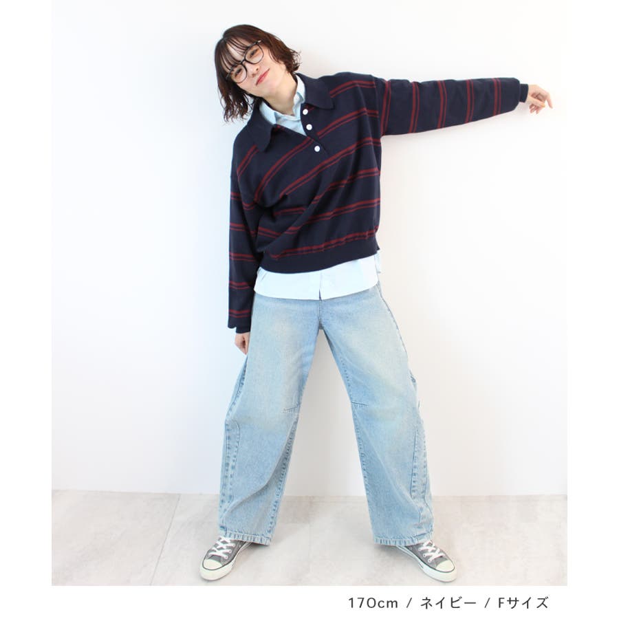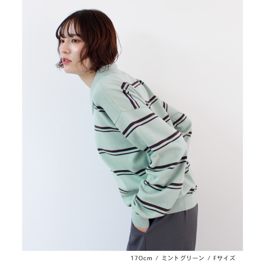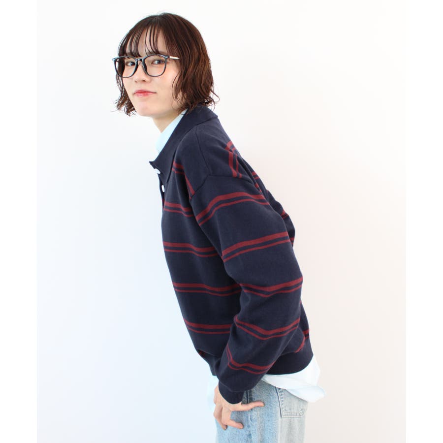 《ABYS》こなれボーダーでラフにきめる。襟付きボーダーポロニットトップス