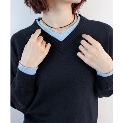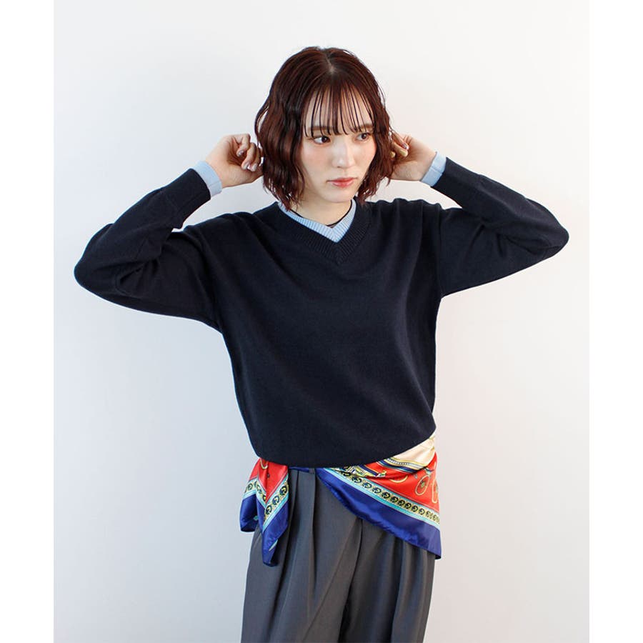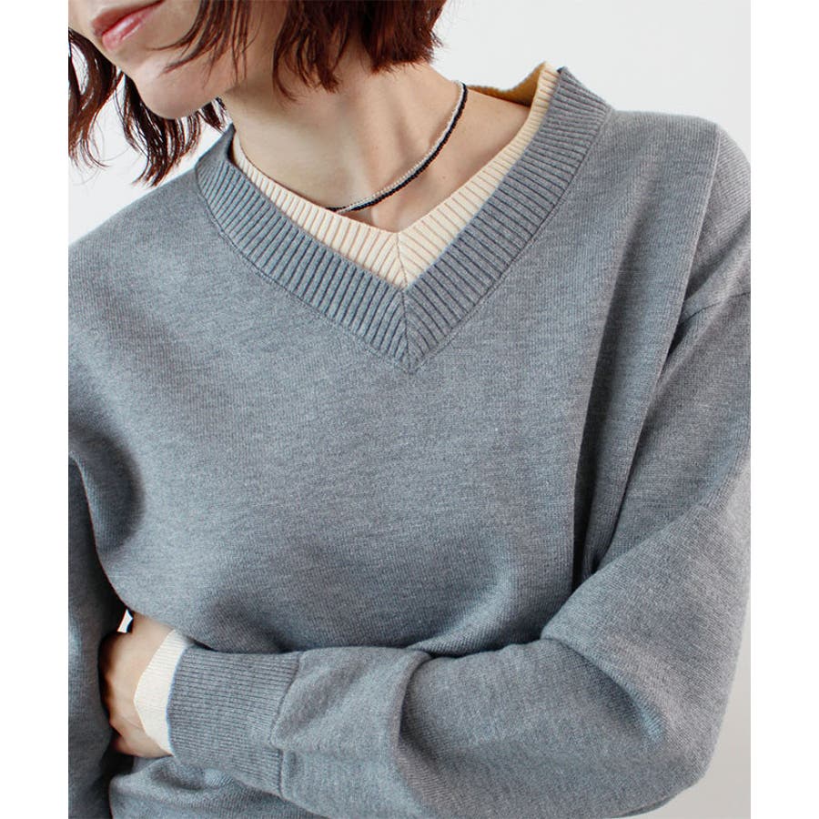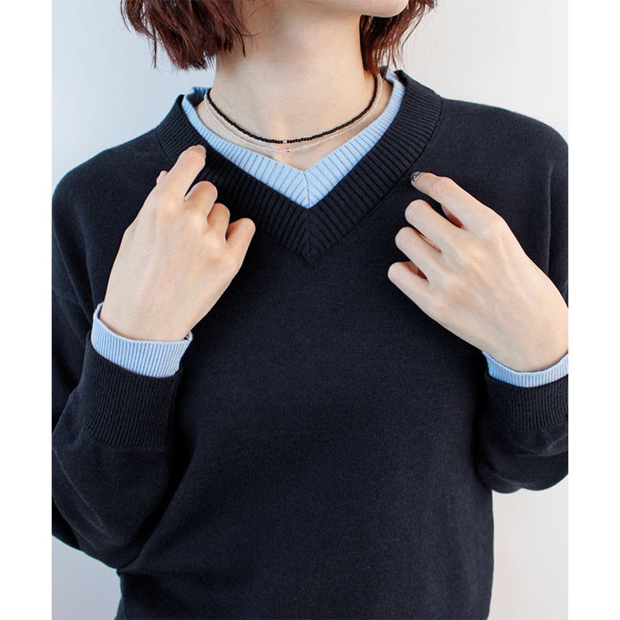 【首元と袖を配色にし、1枚でレイヤードが叶うニットが新登場!】