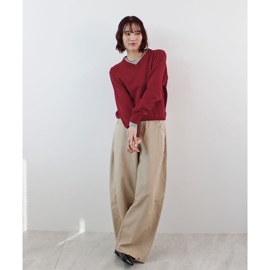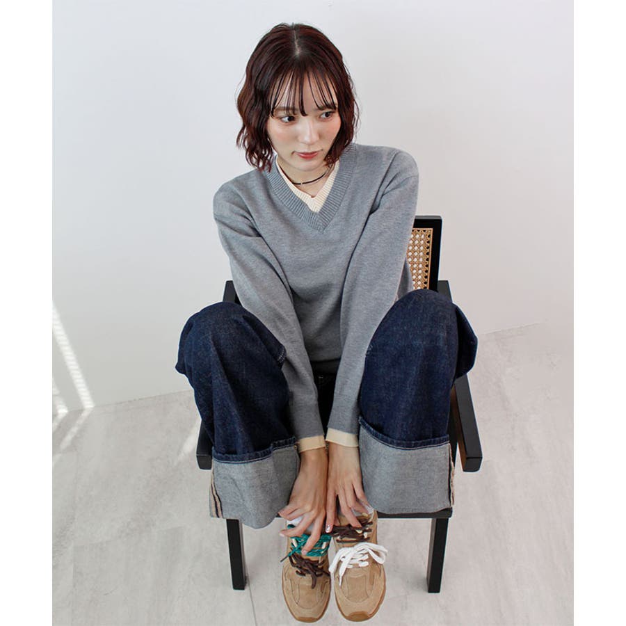 ・幅広いボトムスと相性が良く、デニムやワイドパンツ、スラックスなどどんなスタイルにも合わせやすい万能ニット!