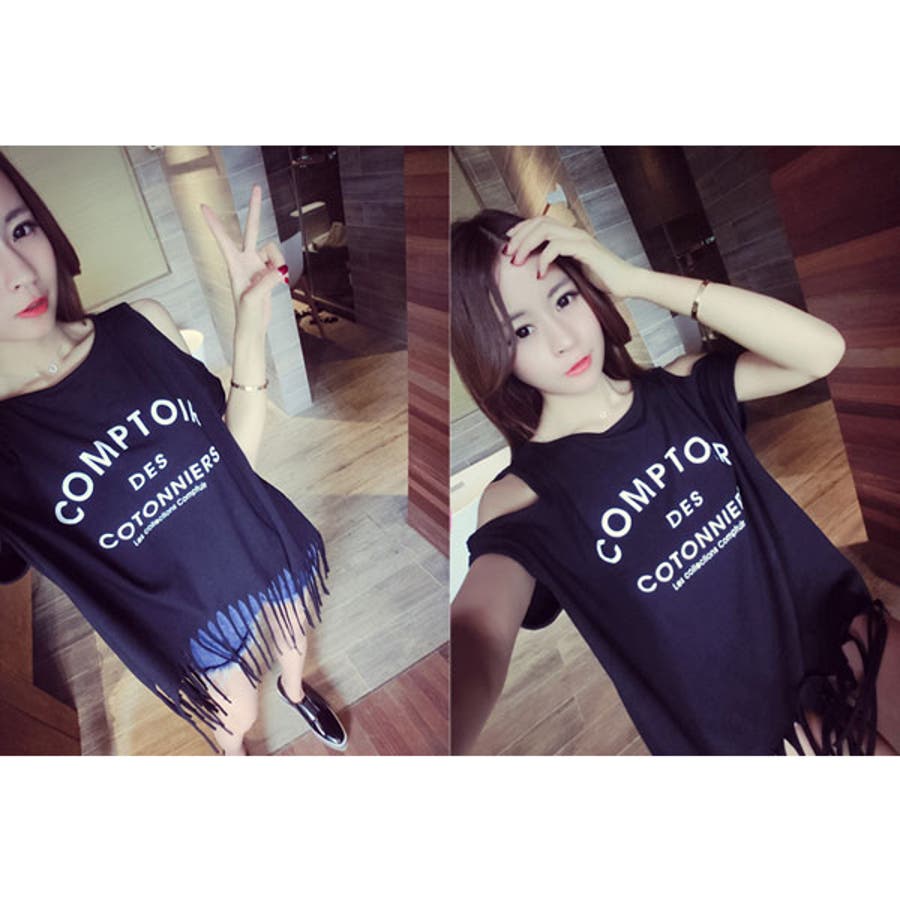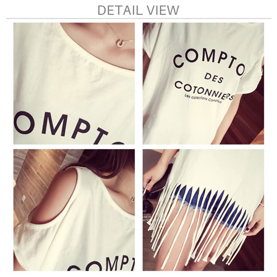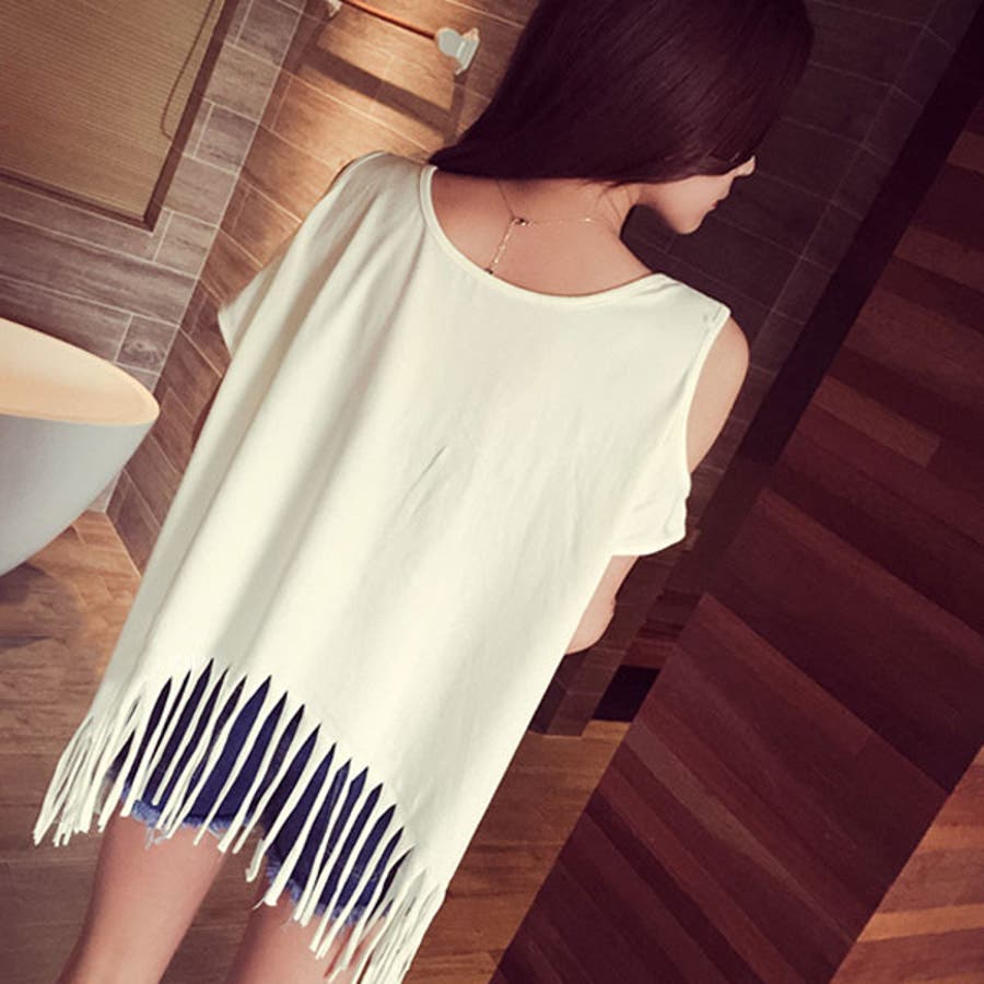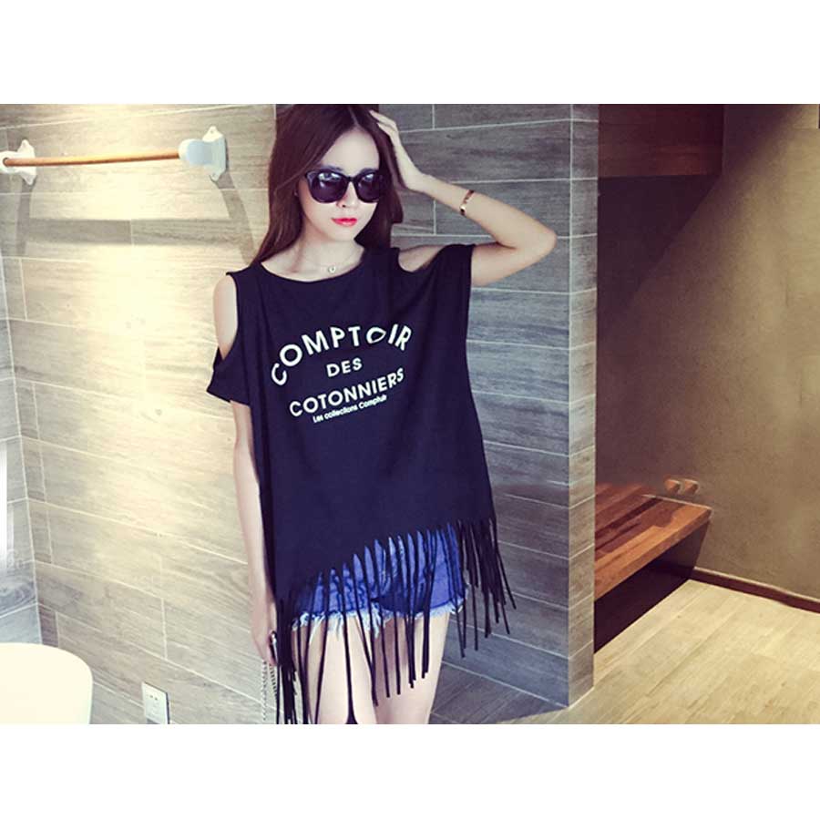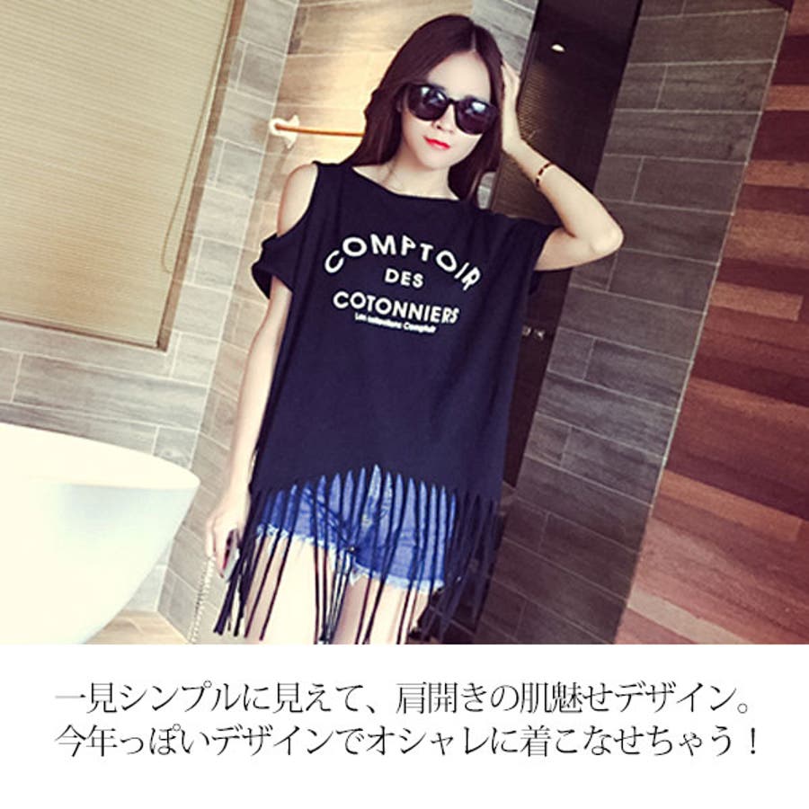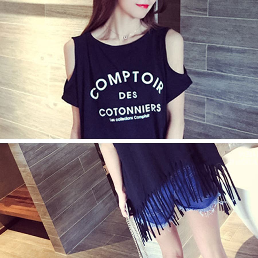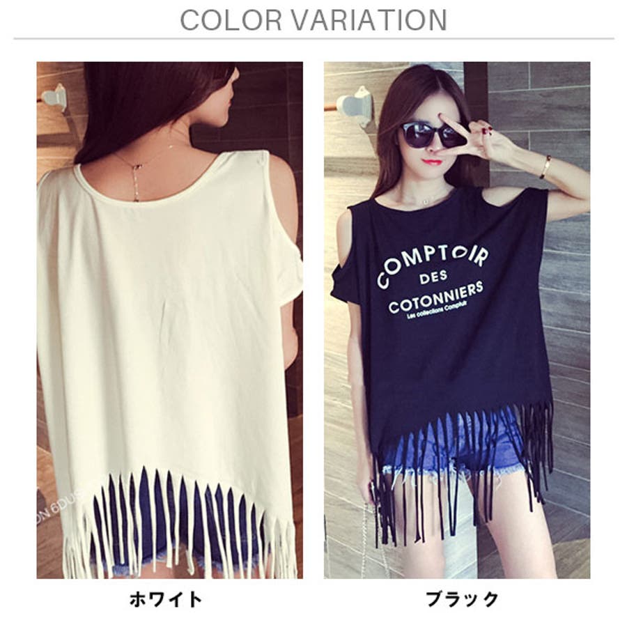 【トレンドの海外セレブ風フリンジTシャツ 肩開きデザインが大人sexy!!】Tシ…