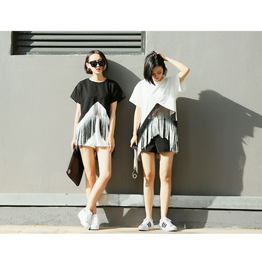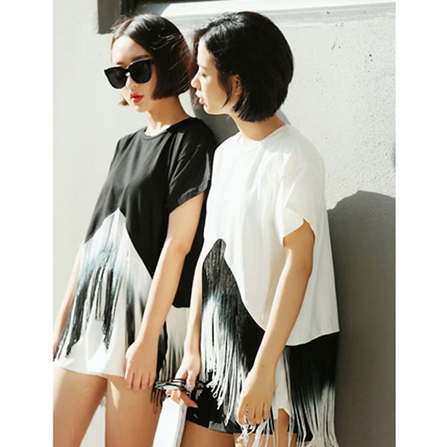 【今季トレンドのスタイルになれちゃう フリンジボヘミアンTシャツ♪】Tシャツ シ…
