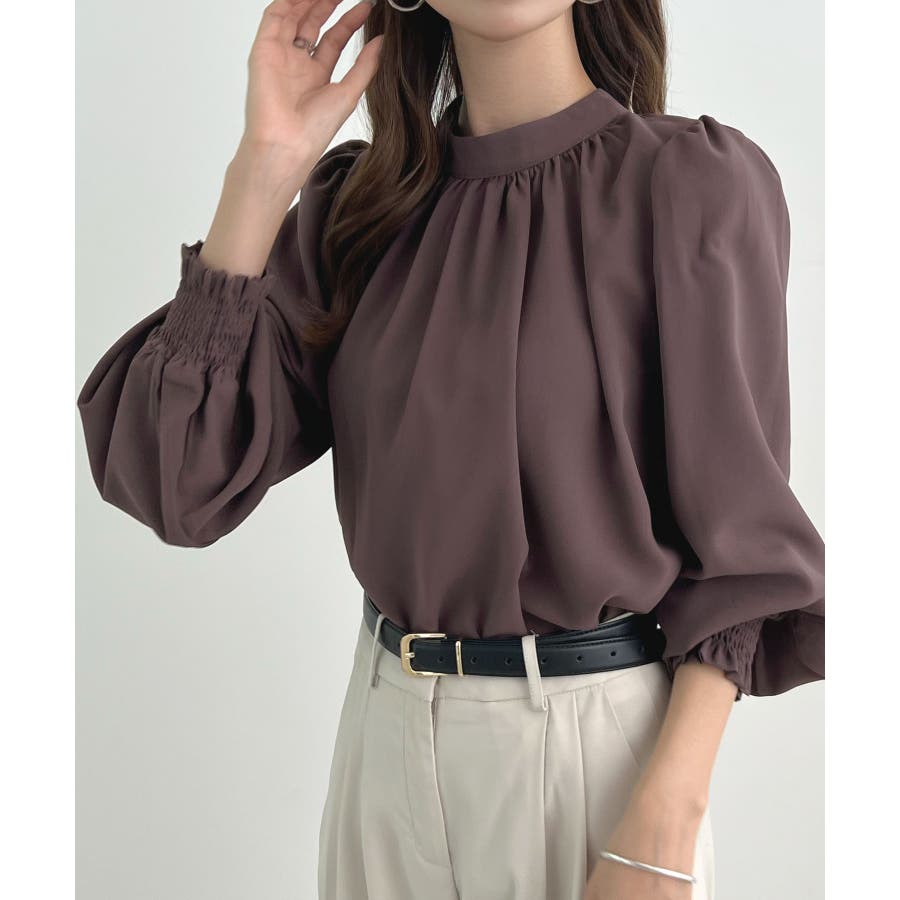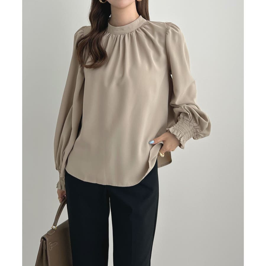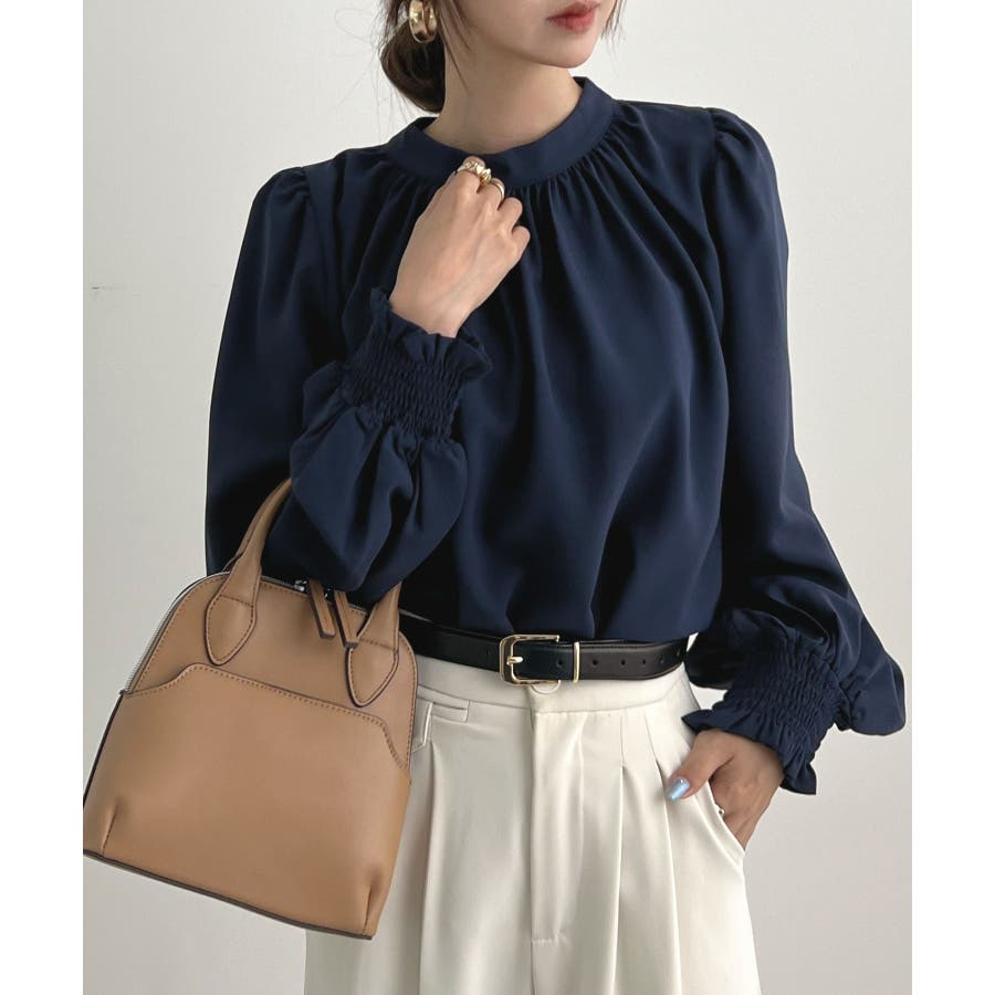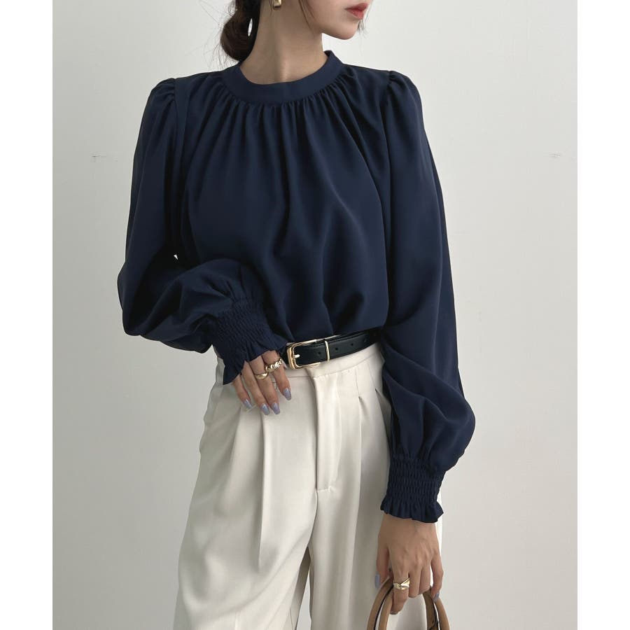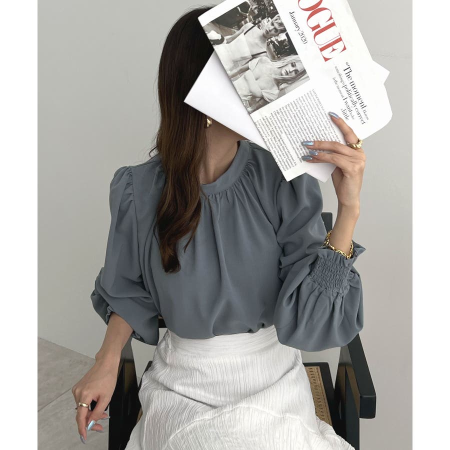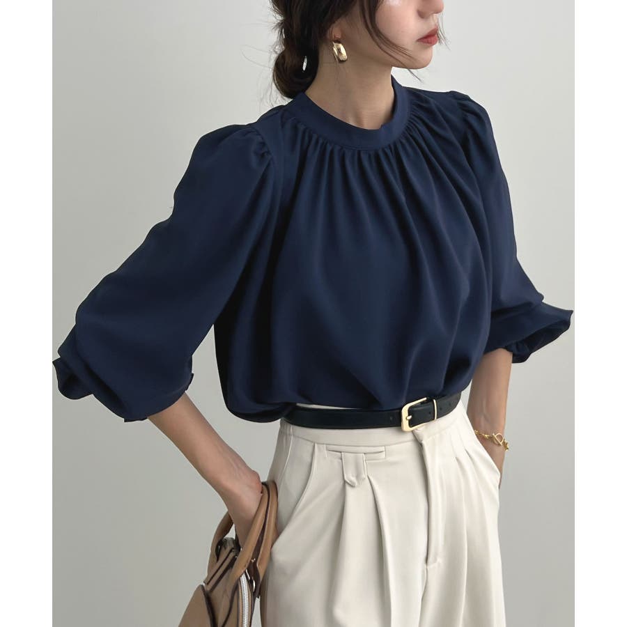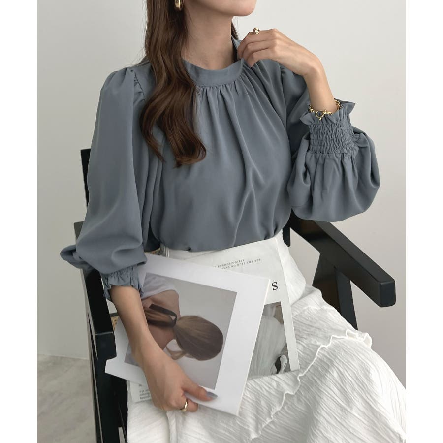 長すぎない着丈と主張しすぎないデザイン性で合わせるアイテムや系統問わず合わせやすいブラウスです。