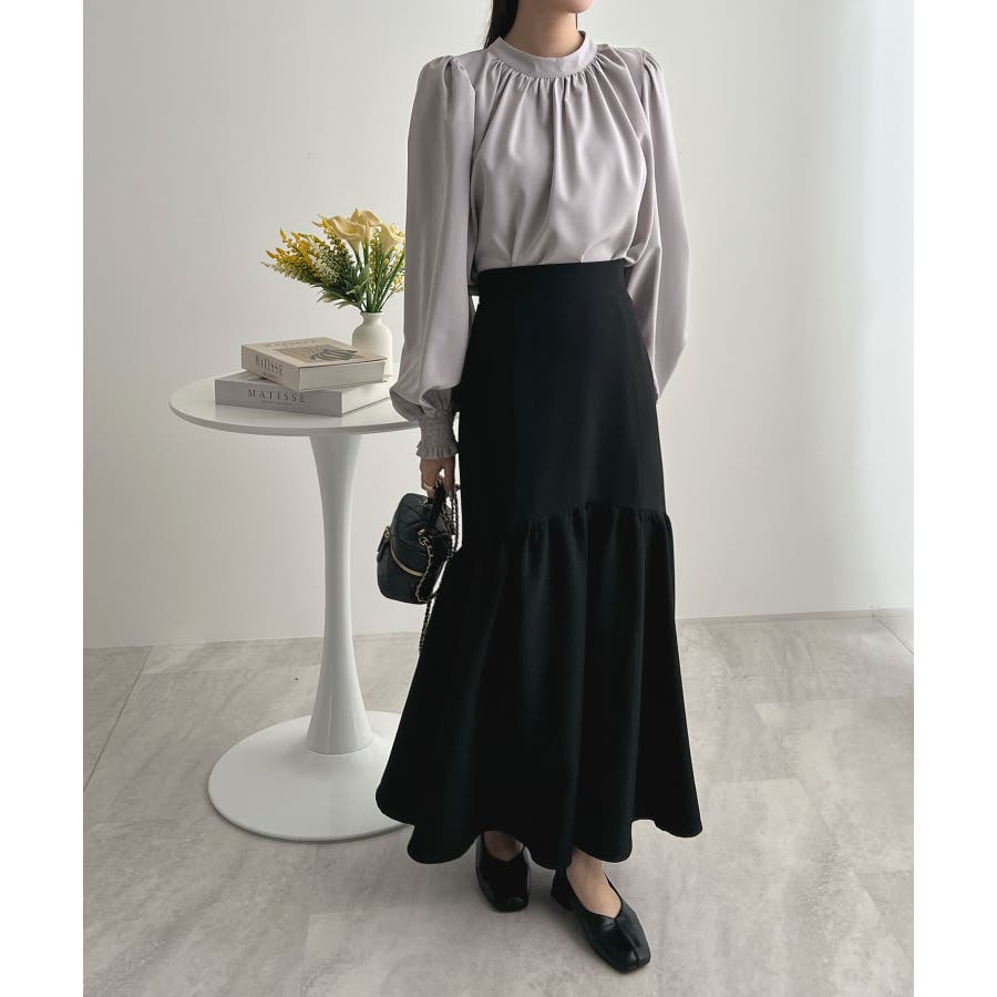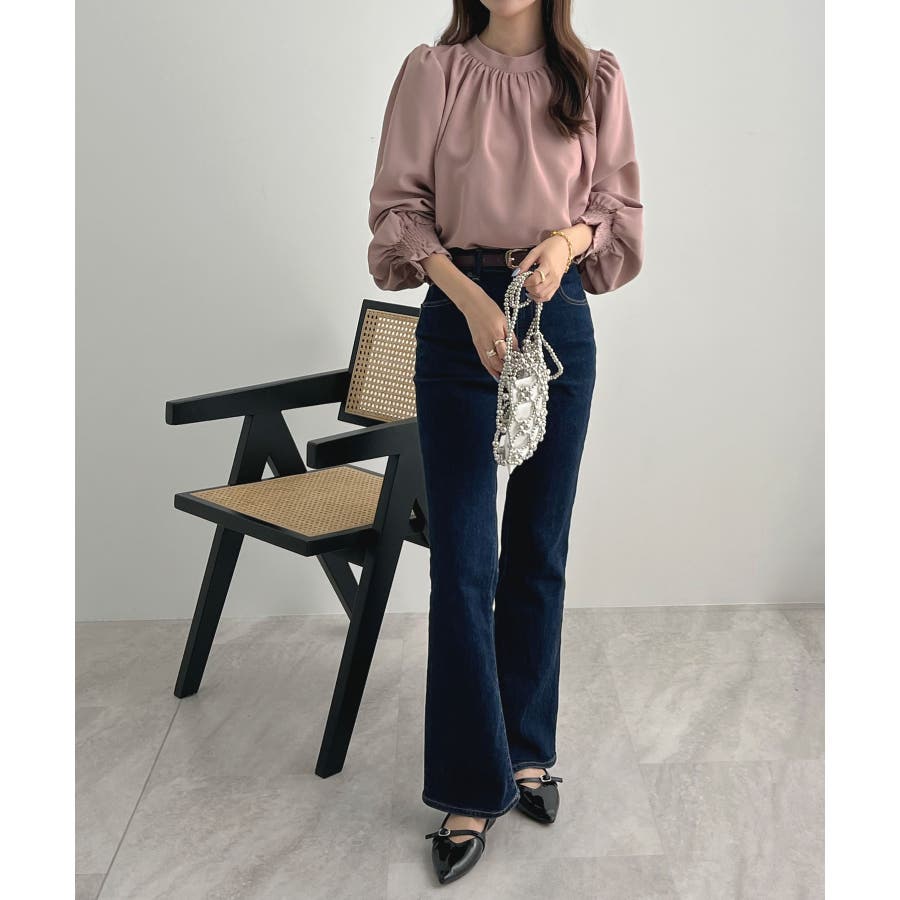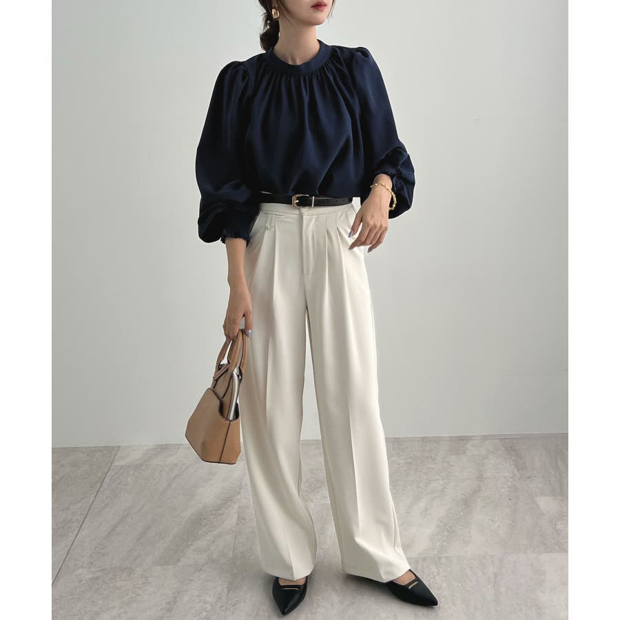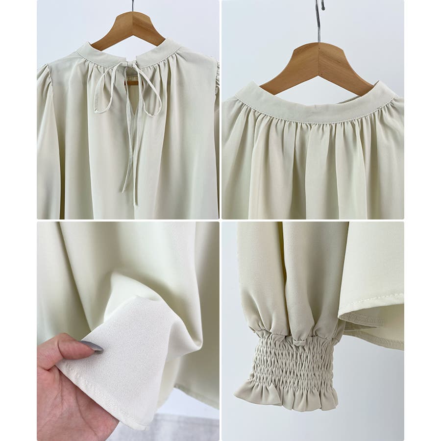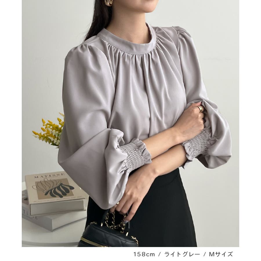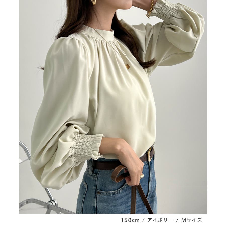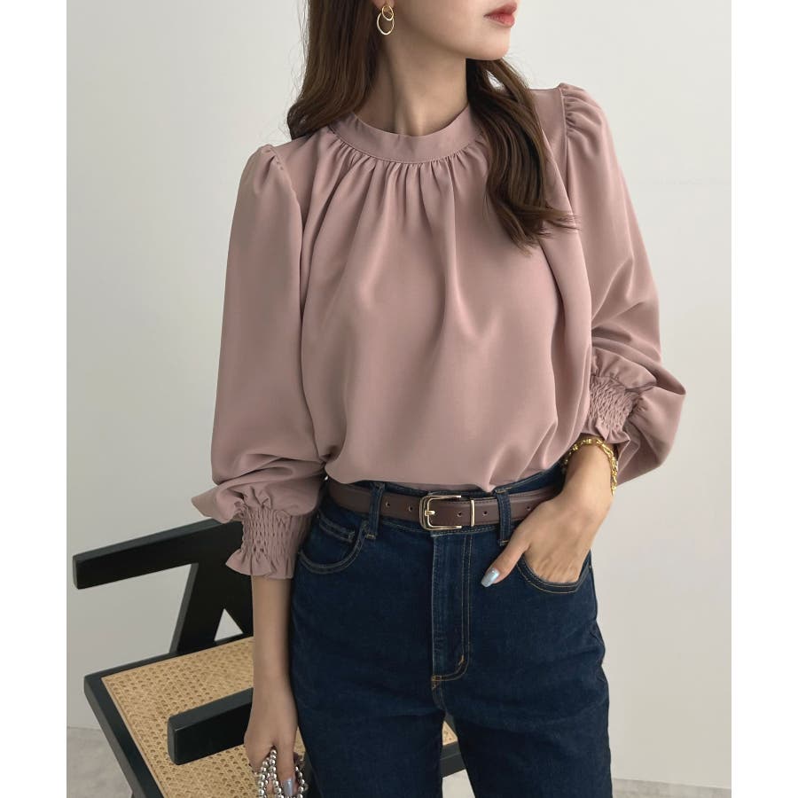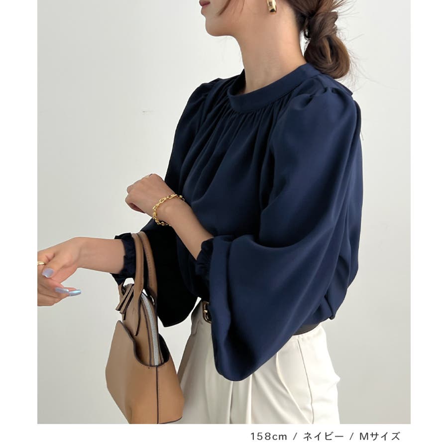 長すぎない着丈と主張しすぎないデザイン性で合わせるアイテムや系統問わず合わせやすいブラウスです。