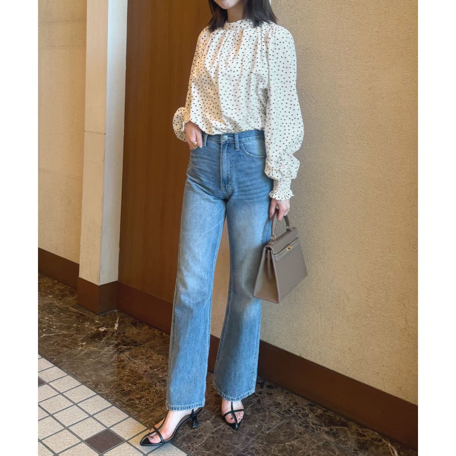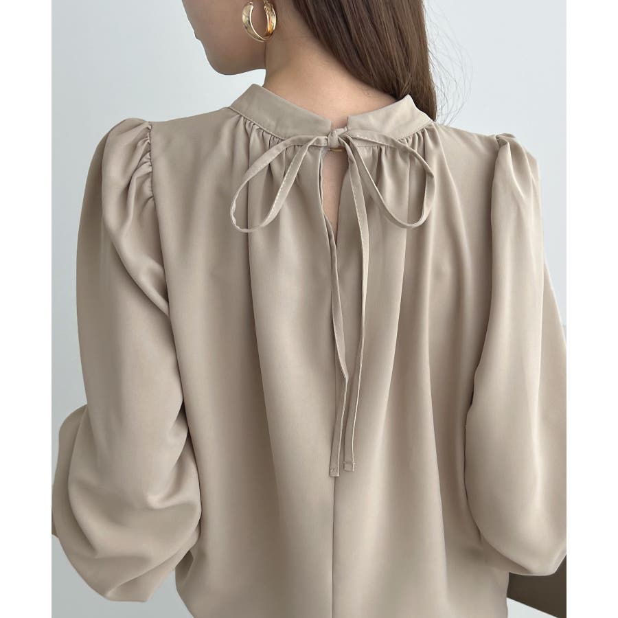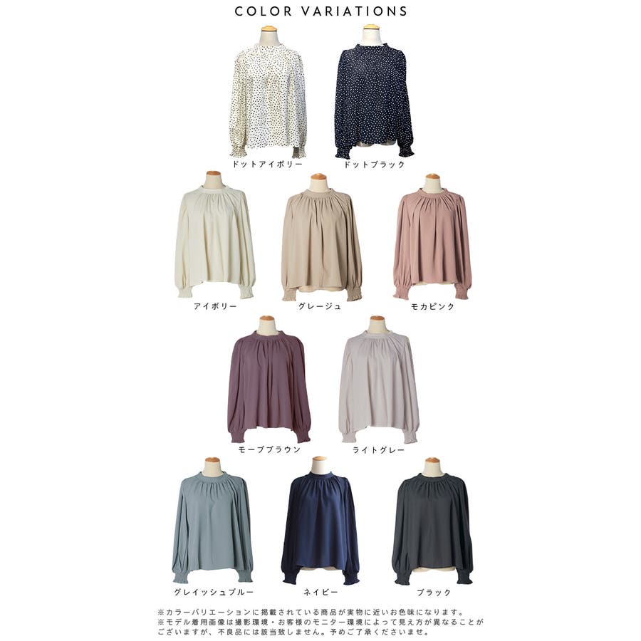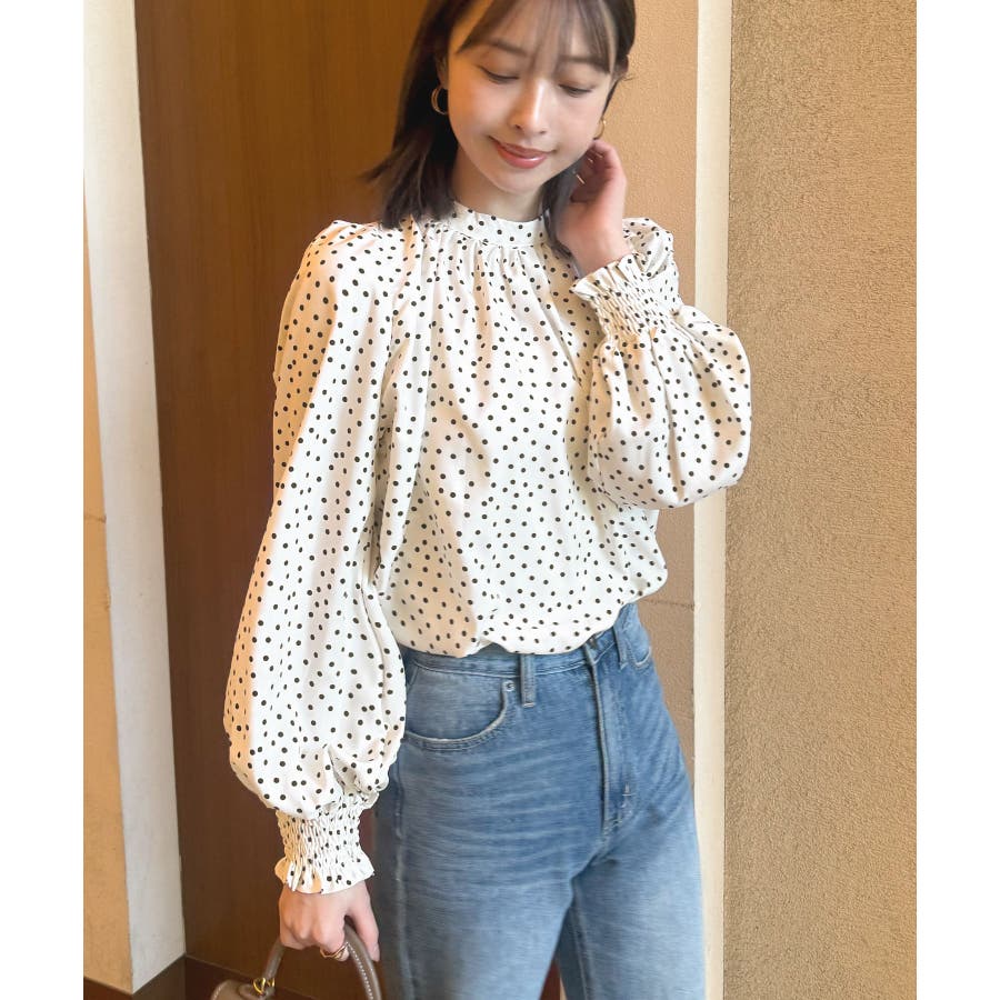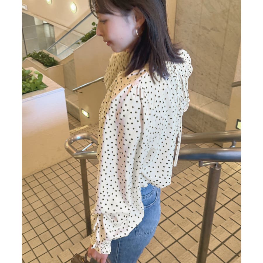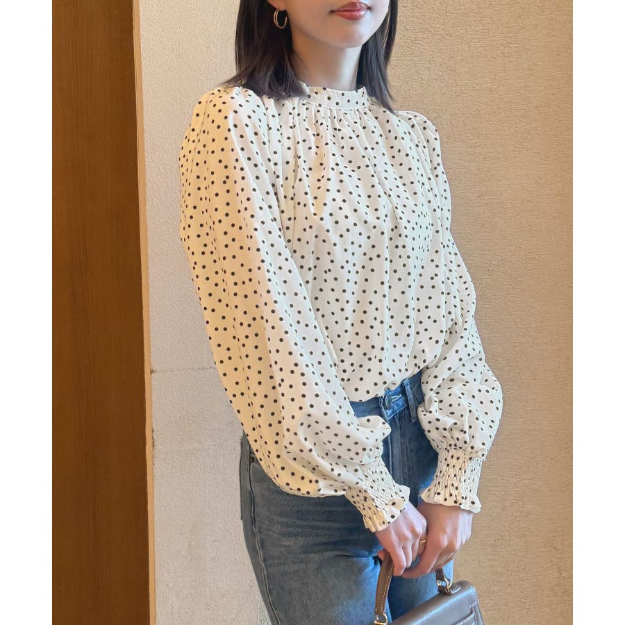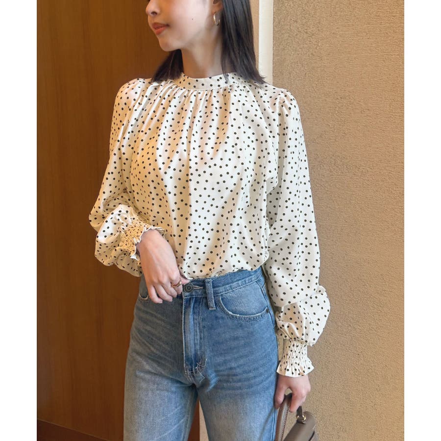 【ドット(アイボリー)】大人ブラウスの抜け感。ハイネックバルーンスリーブブラウス