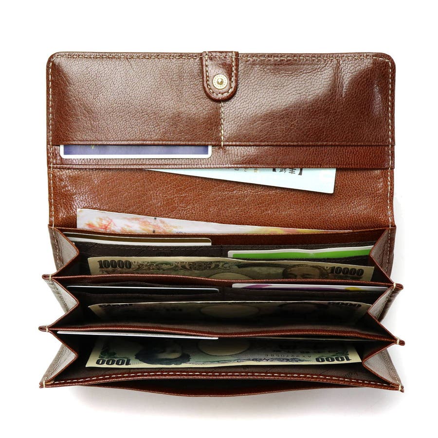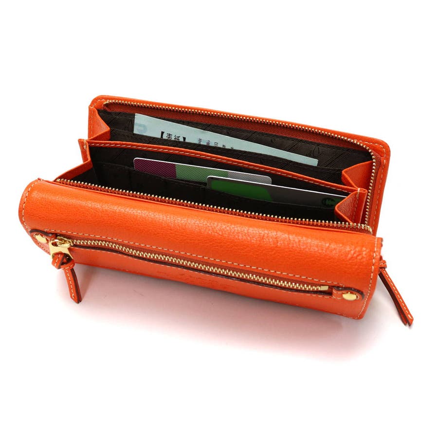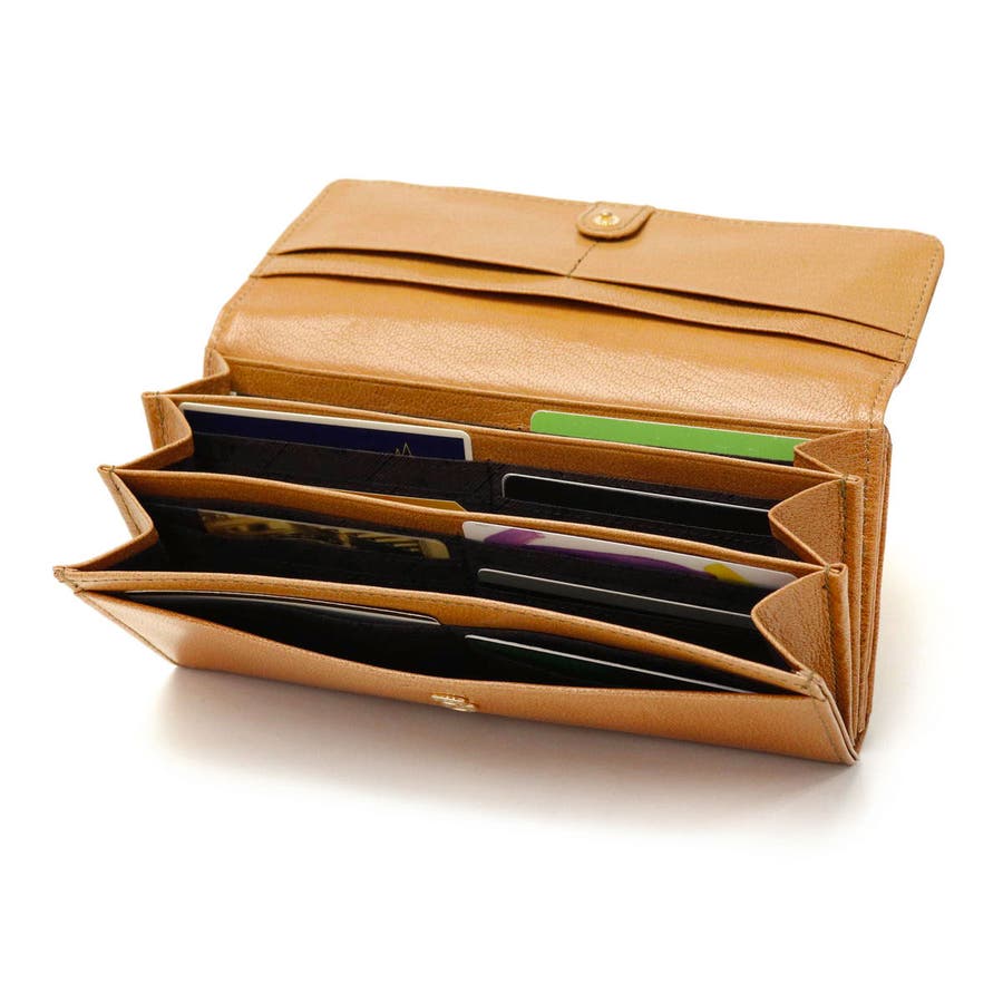 ツヤ感のあるゴート革を用いた、上品な仕上がりの長財布です。すっきりとしたシルエットでありながら、種別管理がしやすい機能的な内装設計がポイントです。さらに、コーラルピンク、アイボリーは、特別感のある当店限定色です。