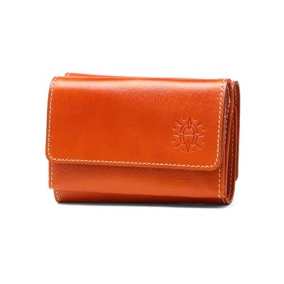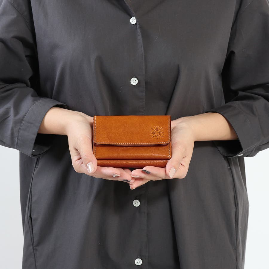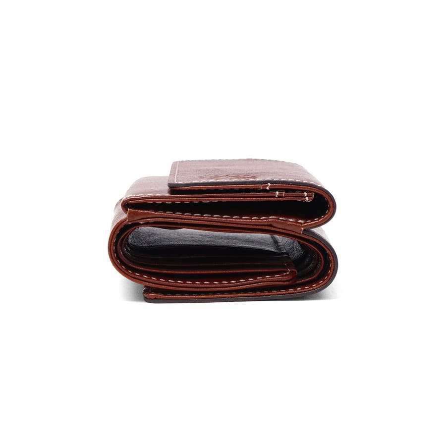 馬蹄の素押しをあしらった、イタリアンレザーの魅力溢れる『フォンス2』シリーズの三つ折り財布。ステッチワークが革の風合いを引き立て、シンプルながら上品な印象に。手触りや色味の変化を楽しめるエイジングも魅力です。前面のホックボタン付きの小銭入れは、大きく開いて中が見やすい仕様。背面は札入れやカード収納もあり、コンパクトながら機能性にも優れたアイテムです。