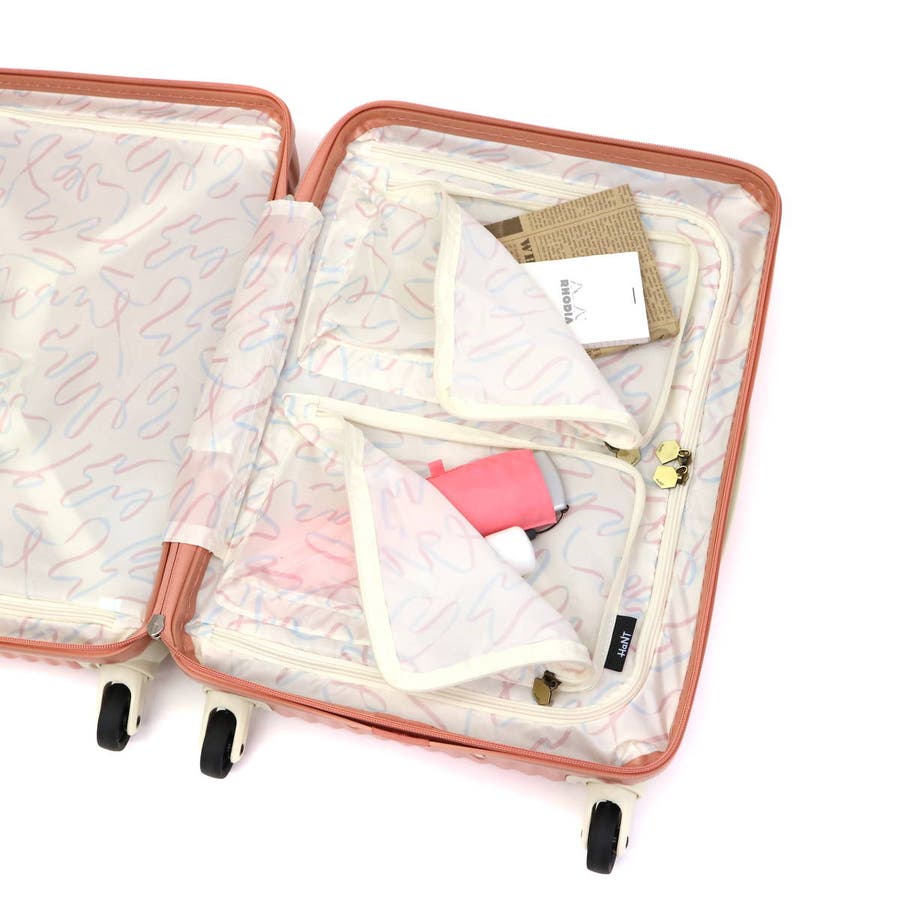 スーツケースメーカー、エースの女性社員チームが「本当に欲しいと思うスーツケースを作る」というコンセプトのもと開発した、女性のためのトラベルブランド『HaNT/ハント』。「マイン」シリーズは、可愛い内装が旅のウキウキ気分を盛り上げてくれる、女子ならではのこだわりが詰まった自信作です。