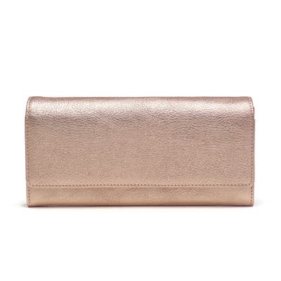 光輝く美しい箔加工が施された『フィーナ』シリーズから長財布が登場です。内装に使用されている優しく柔らかなカラーとゴールドのパーツ使いがより女性らしさを引き立ててくれます。内装はササマチタイプの設計で見やすいつくり。L字ファスナー開閉で大きく開く小銭入れは視認性に優れ、中仕切りを設けているので金額別に分けられる使い勝手のよいつくりになっています。内部にはカードポケットを24ヶ所と便利なポケットを3ヶ所装備。外側にもポケットを設けた収納機能も充実したつくりになっています。多くなりがちなカードなどのアイテムをすっきりと管理したい方におすすめの仕上がりです。