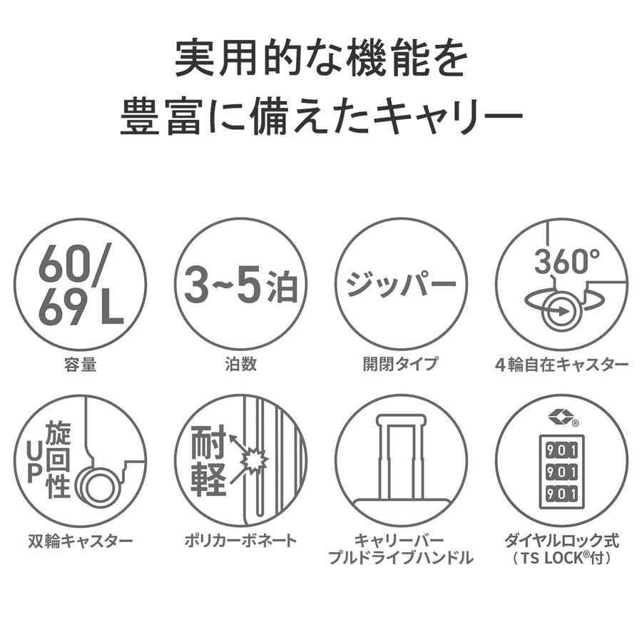 旅行を快適にする機能性を備えた「ALMITE」シリーズのスーツケースから、5~6泊程度の旅行に最適なミディアムサイズのモデルが登場。本体サイドのファスナーを開くことにより、サイズを60~69Lまでに広げることが可能で、出先で荷物が増えても安心。内装には複数ポケットを設け、細かな荷物も収納しやすいつくりになっていたり、内部のウォールポケットは取り外して単体使いが可能であるなど、実用性に長けた作りが魅力です。バイカラーがスタイリッシュな「BLACK×RED」は当店でしか手に入らない別注カラーになっています。