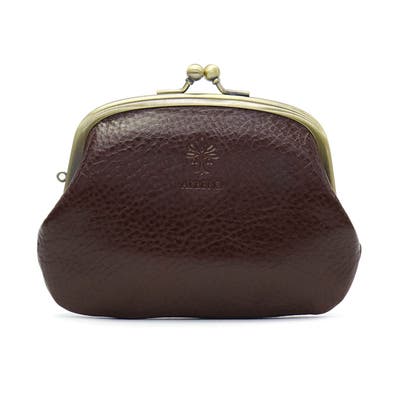 「自然を大切に」と思うデザイナーがイタリアや日本の職人と作り上げたALBERO。こちらはシボ感とツヤが魅力のイタリア製レザーで仕立てあげた『BERRETTA/ベレッタ』シリーズのがま口財布です。コロンとした優しいデザインが女性らしく、大切な人への贈り物にも最適です。メイン収納部は使いやすい金口式。がま口を開くと、中にはさらに小さめのパースが現れる愛らしいデザインとなっています。内装には2カ所のカードポケットを装備し、必要最低限の収納ができるミニマムサイズが魅力です。使うほどに愛着が増すコンパクトな大きさで、サブウォレットとしてもオススメです。素材には、ベジタブルタンニンでなめしオイルを含ませるバケッタ製法を用いたイタリア製牛革を採用。表面のシボ感とツヤが特徴です。革本来のナチュラルさが魅力で、同じものは二つと無いあなただけの革の表情をお楽しみいただけます。使い込む程に色が深まりしなやかに手に馴染む感覚を味わえるアイテムです。