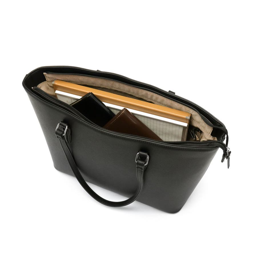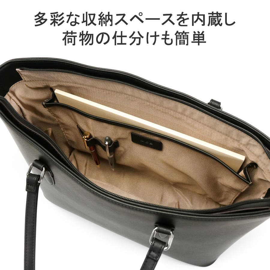 しっかりと自立し、リクルート・ビジネスシーンに最適なシンプルトートバッグ。A4ファイルがゆったり収まるサイジングや、肩掛けしやすい長めのハンドル。ストレスフリーな収納に配慮された豊富な機能性を備え、頼もしい仕上がりになっています。