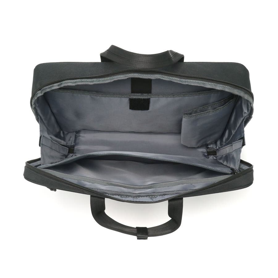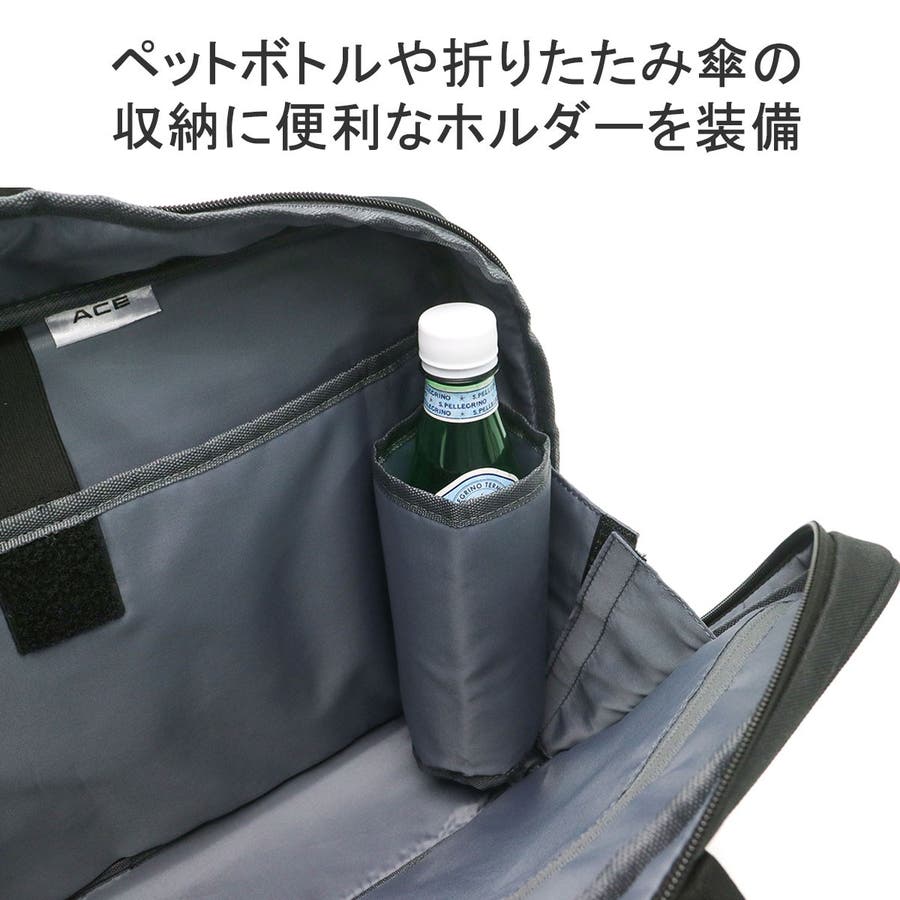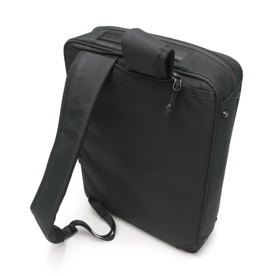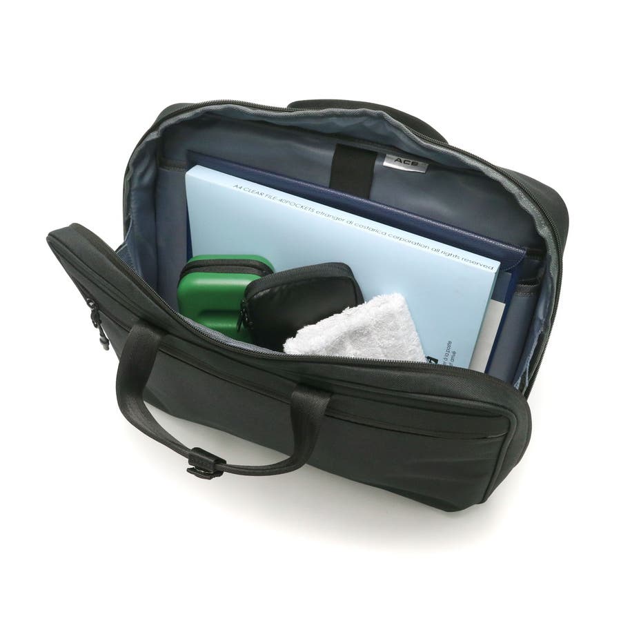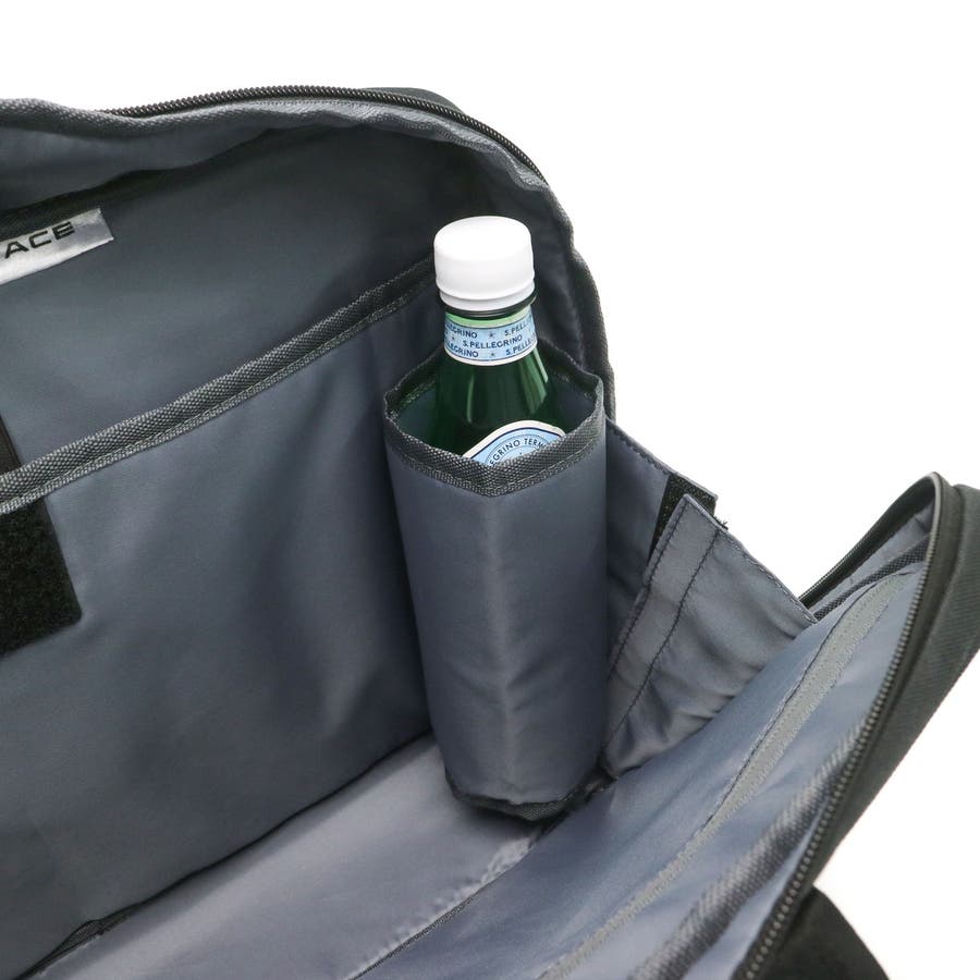 本体はA4書類やファイルがゆったり収まるサイジング。本体の背面部分には14インチに対応したPC収納を備えており、デバイスの管理も安心。ペットボトルや折りたたみ傘をしまいたい際には、ボトルホルダーが役立ちます。本体のフロント部分には散らばりがちな小物類の管理に便利なオーガナイザーポケットを備えており、移動中でもスムーズに荷物が取り出せるのが魅力的です。