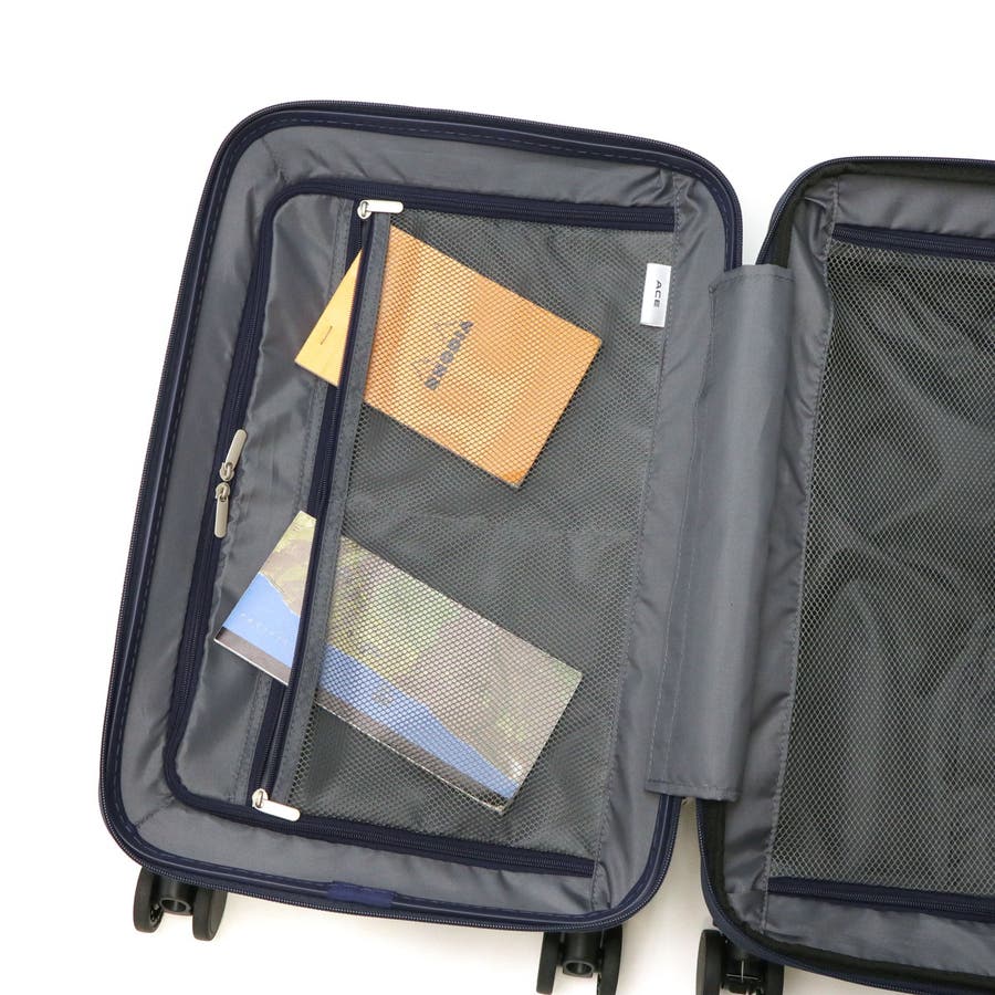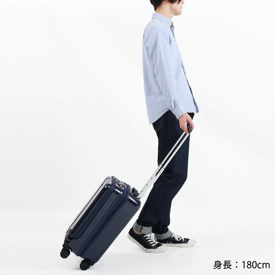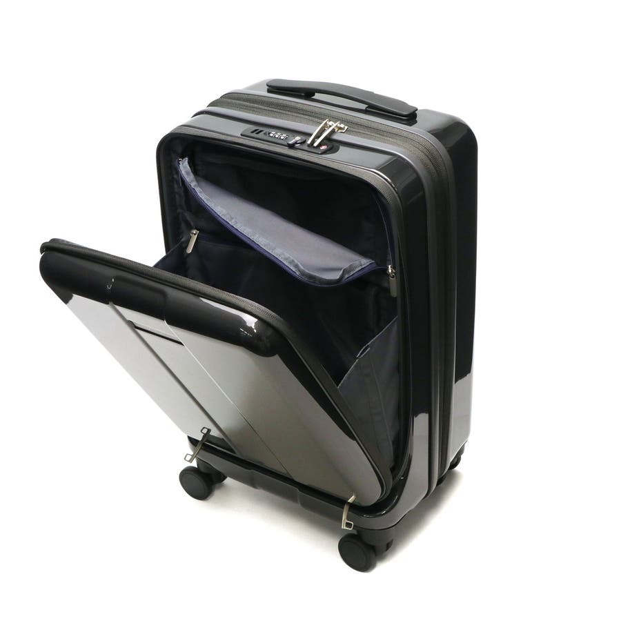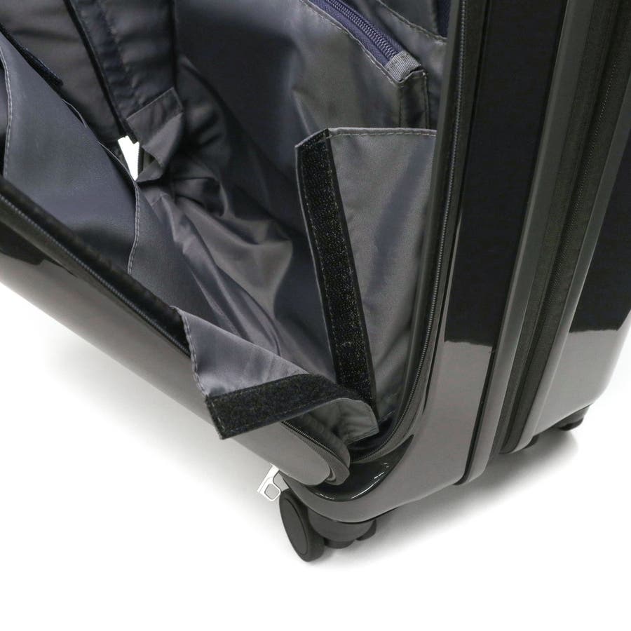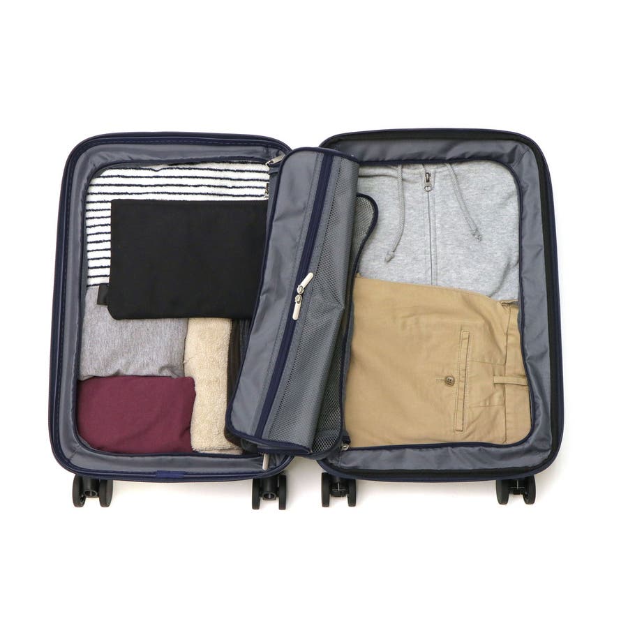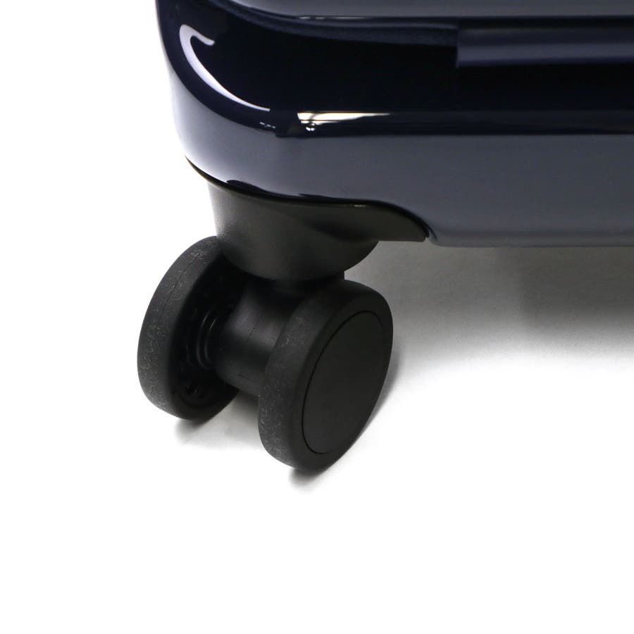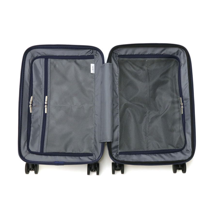 本体には、移動中でも荷物をスムーズに取り出すことができるフロントポケットを備えています。内部には細かな荷物の管理に役立つ小分けポケットや、13インチに対応したPC収納を装備。さらに背面部分のファスナーを使えば、簡単にメインルームへアクセスできます。メインルームはファスナー付き収納部を設け、荷物の整頓に配慮したつくり。さらに外側に備わったファスナーを広げる事で容量を拡張する事ができる為、出先で荷物が増えた際も安心して対応できます。その他にも、旋回性に優れた双輪キャスターや、不意な走行を防止するキャスターストッパー、安心のTSAダイヤルロックを備えた申し分のない機能性が魅力となっています。