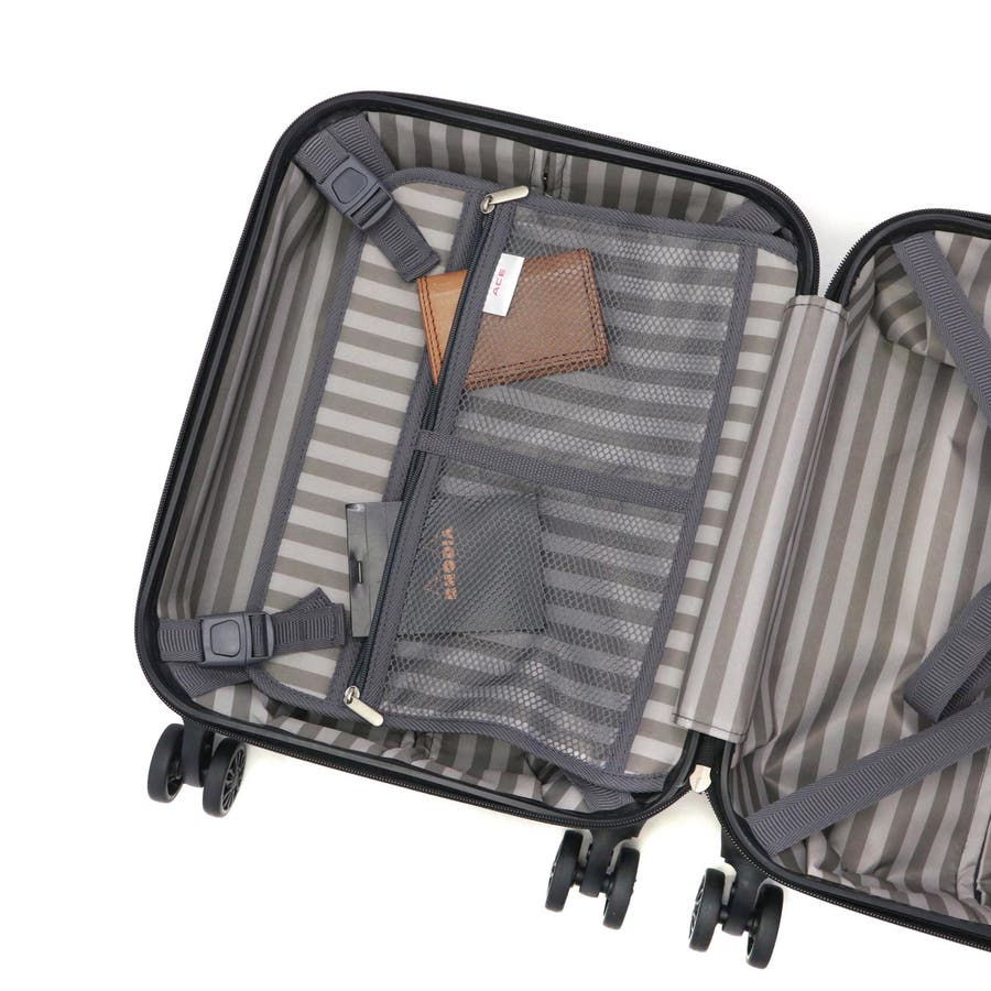 スタイリッシュなボディデザインで、旅行は勿論、出張にも最適な『クレスタ』シリーズのスーツケース。こちらは駅や空港、商業施設などに設置のコインロッカーへの収納に対応したコンパクトサイズです。シンプルでありながら使い心地の良い内装設計が施されており、収納力も抜群。旋回性に優れた双輪キャスターを搭載しているため、走行も安定しており、ストレスフリーで快適な旅を楽しむことができます。