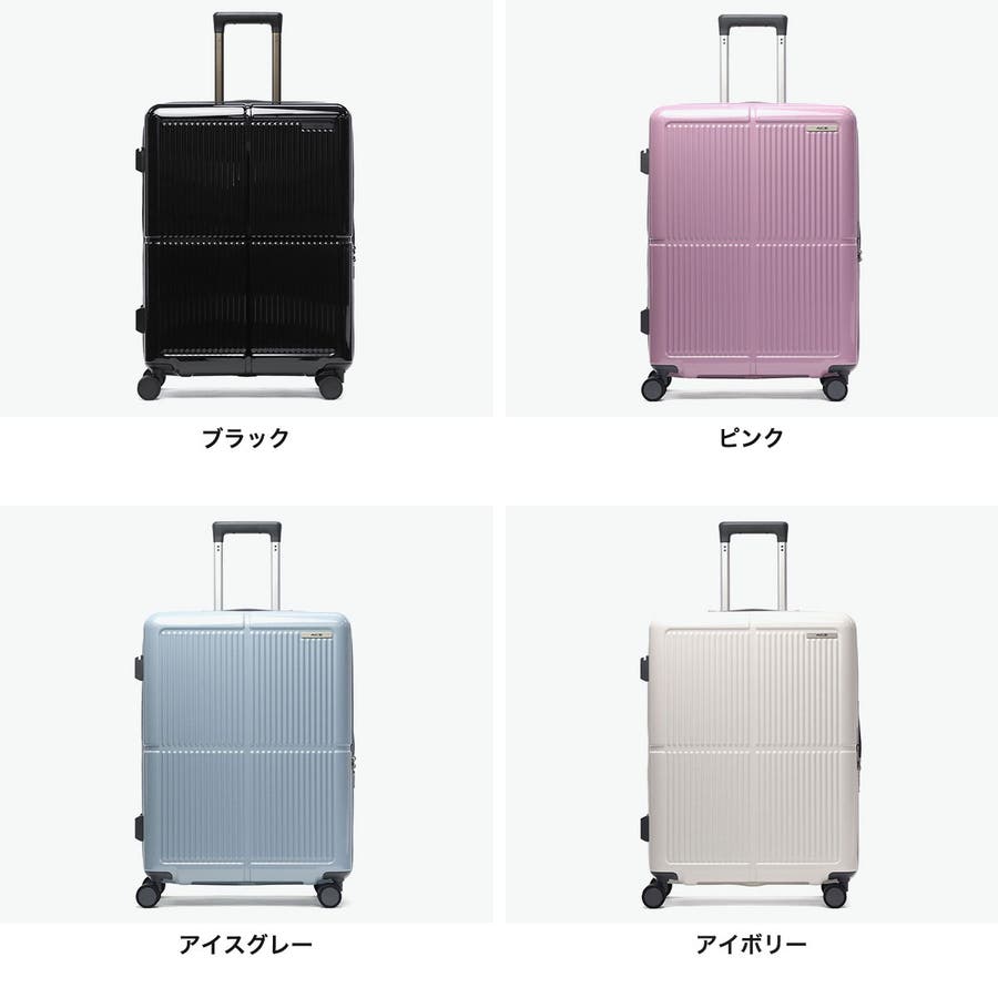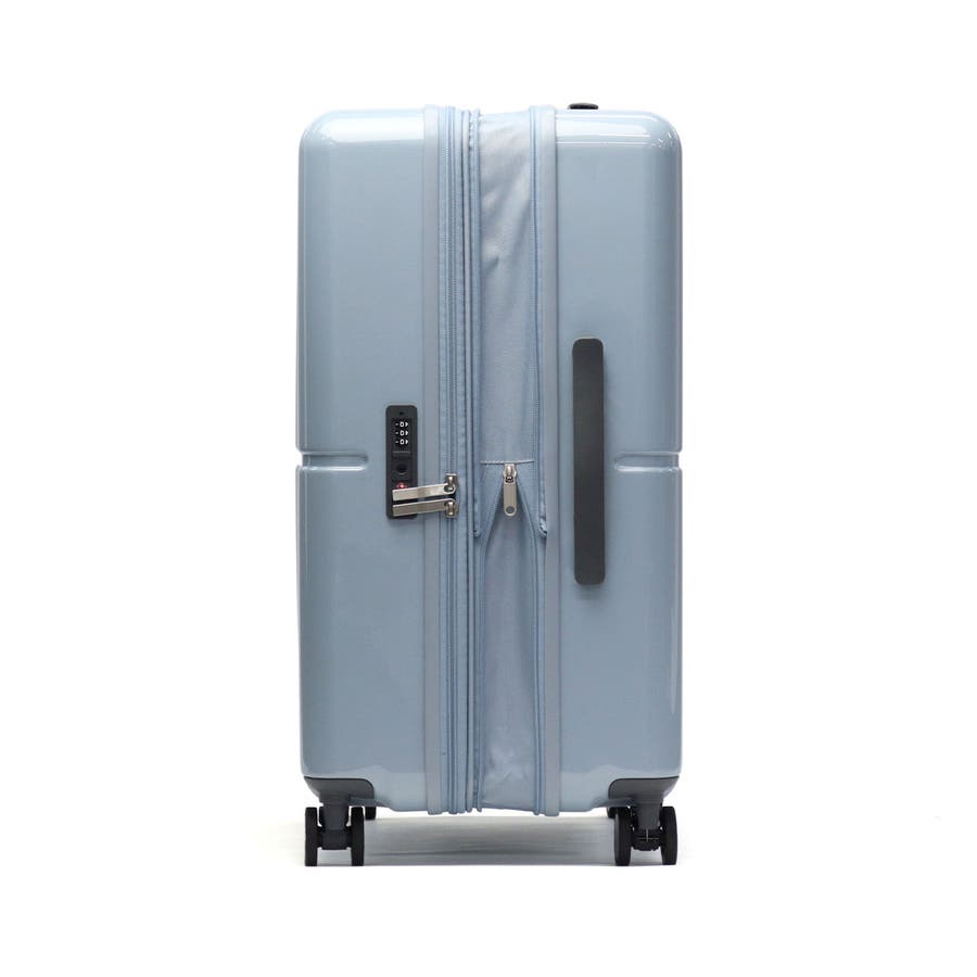 鮮やかな鏡面ボディが目を引く『ファームロード』シリーズの、6~8泊程度の旅に適した63L容量のスーツケースです。エキスパンド機能で75Lまで容量を拡大できるので、旅先で荷物が増えても安心。電車内や坂道で便利なキャスターストッパーや、小物を掛けられるサイドフックなど、快適な旅を支える機能が満載です。