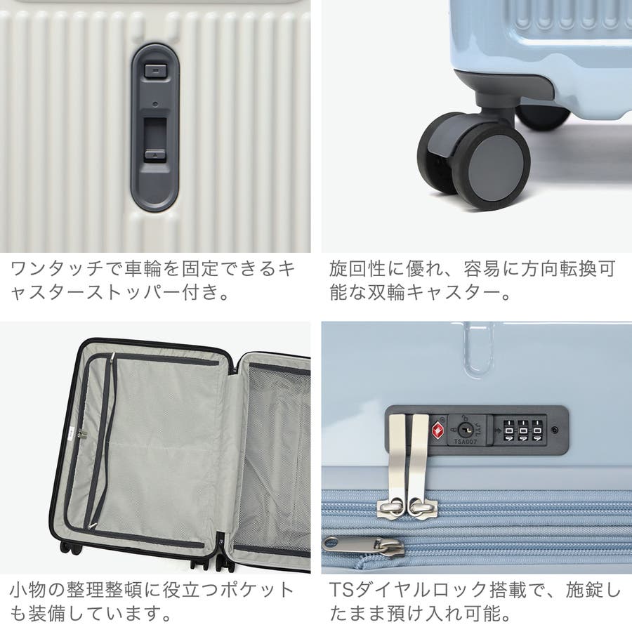 ・エキスパンダブル機能付きの製品は、マチ拡張時の3辺の和が機内持ち込みサイズ、預け入れ無料サイズを超える場合がございます。また、航空会社や飛行機の機種などによって規定が異なりますので、予めご確認の上お求めください。