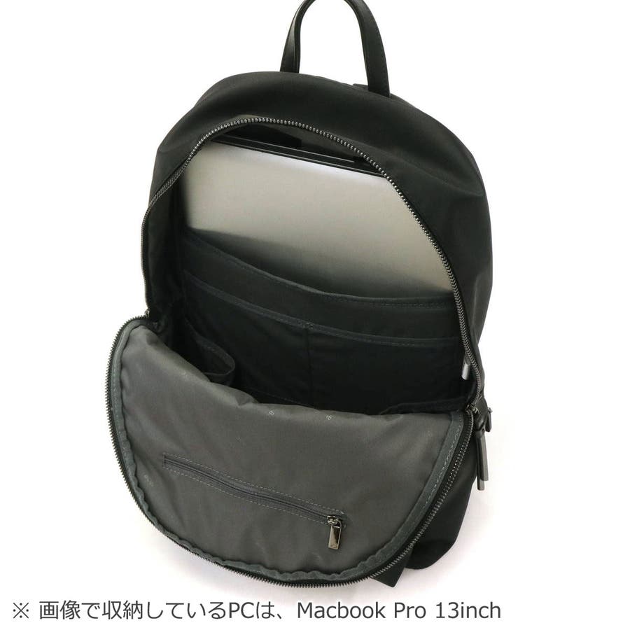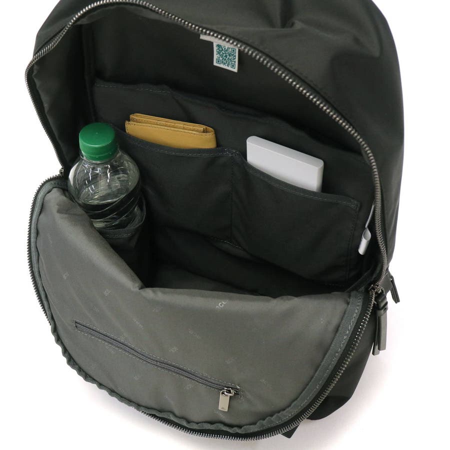 メインルームは、A4サイズの書類がゆったり収まるサイズ感。内装には、折り畳み傘や飲み物類を倒さずしまえるボトルホルダーや13.3インチ対応のPC収納を完備。外装は鍵やスマホなど小物を管理できるファスナーポケットを前後豊富に配置しており、デイリー使いには充分な収納力を実感できる設計となっています。