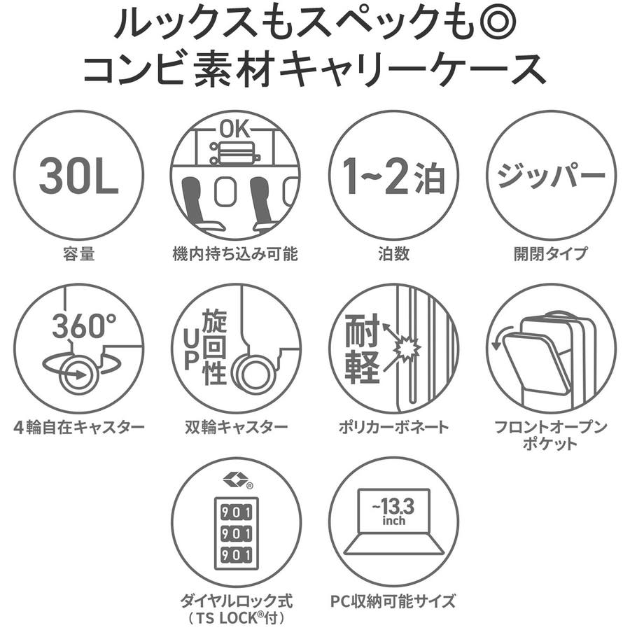 ポケット部分と本体とで異なる素材を使用し、カジュアルな雰囲気にデザインした『COMBICRUISER TR/コンビクルーザーTR』の30L容量のキャリーケース。100席以上の機内に持ち込み可能で、新幹線の荷物棚や足元にも置いても邪魔になりにくいサイズ感。出張や旅行などオンオフ問わず使用できるルックスもさることながら、機能性に優れたフロントポケットを完備した充実のスペックも魅力的なアイテムとなっています。