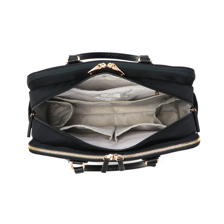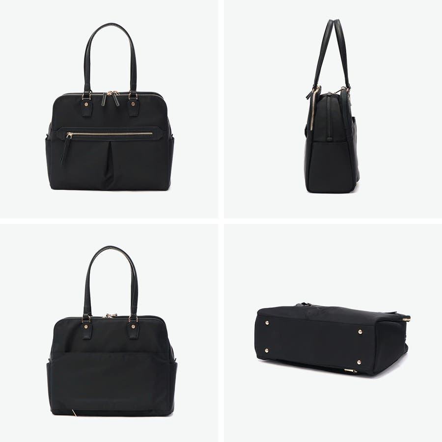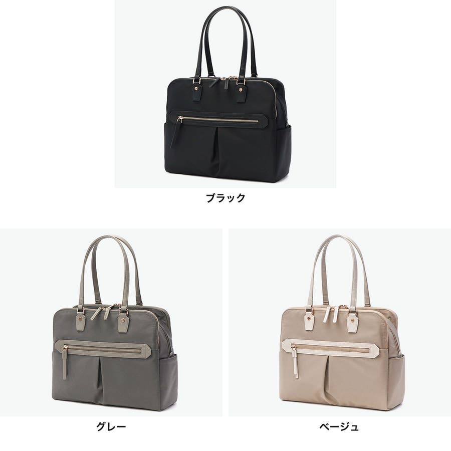 ノートPCの持ち運びに最適な、優秀お仕事バッグシリーズ 『ラポルテム』。テレワークと出社を組み合わせたハイブリットワークに対応する、16L容量のトートバッグです。PC収納をはじめ、充実の収納スペースや移動時に便利なセットアップ機能を搭載。メイン気室、フロントポケットには薄暗い場所でも荷物を見つけやすいよう、明るいグレーのストライプ生地を採用するなど、使いやすさにこだわりました。スーツにもオフィスカジュアルにも合わせやすい、すっきりとしたきれいめデザインに仕上がっています。