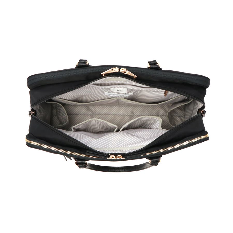 ノートPCの持ち運びに最適な、優秀お仕事バッグシリーズ 『ラポルテム』。テレワークと出社を組み合わせたハイブリットワークに対応し、荷物が多い方におすすめな26L容量のトートバッグです。PC収納をはじめ、充実の収納スペースや移動時に便利なセットアップ機能を搭載。メイン気室、フロントポケットには薄暗い場所でも荷物を見つけやすいよう、明るいグレーのストライプ生地を採用するなど、使いやすさにこだわりました。スーツにもオフィスカジュアルにも合わせやすい、すっきりとしたきれいめデザインに仕上がっています。