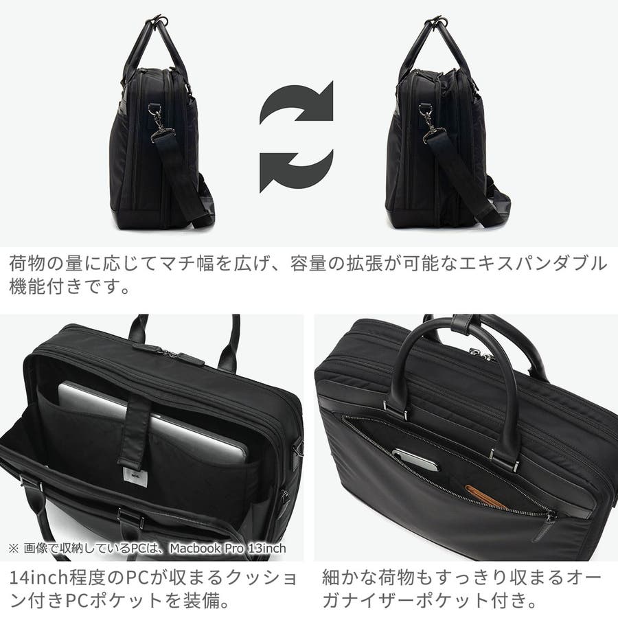 洗練されたデザインと使いやすい機能性を両立させた、『ヴァシリアス』シリーズのビジネスバッグ。2層構造でB4書類や14インチPCが収納可能。また、セットアップ機能付きで通勤から出張までスマートに活躍します。スーツスタイルに自然に馴染み、どんな場面でも落ち着いた印象を与えます。上質な素材使いと細部へのこだわりが、ビジネスシーンでの印象をワンランク上へと引き上げます。