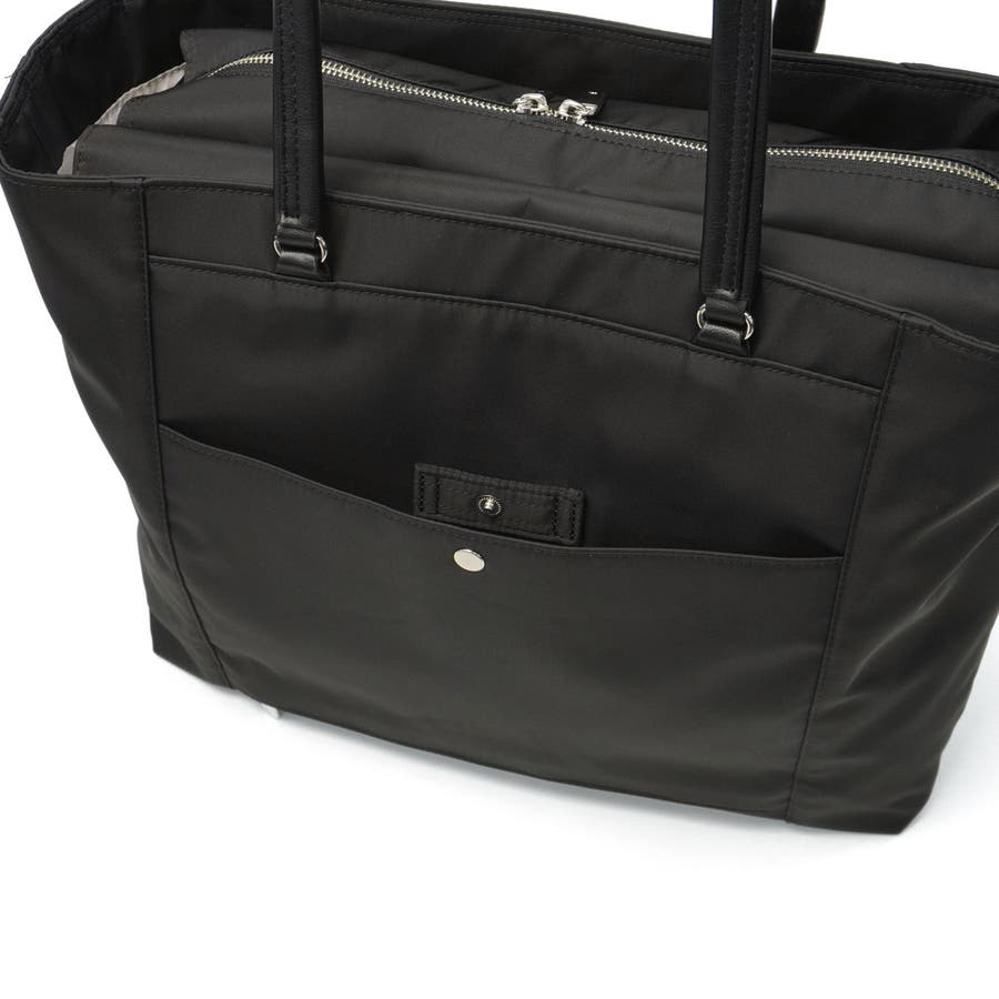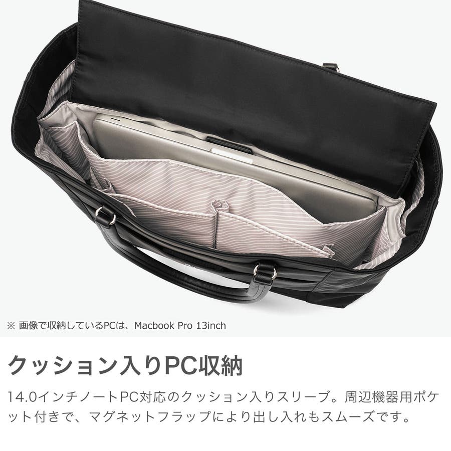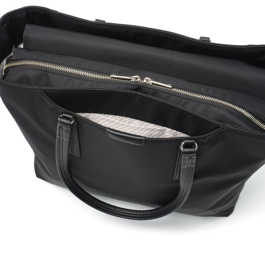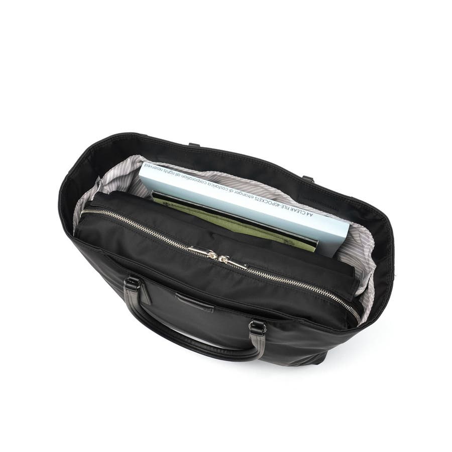 使い勝手を追求した通勤の決定版『フロモ』シリーズのトートバッグ。B4サイズや14インチPCが収まる2気室設計で、PC収納部には出し入れがスムーズなマグネットフラップを採用。内外に豊富なポケットとボトルホルダーを備え、荷物をすっきり整理できます。肩にやさしくなじむ柔らかなハンドルと底鋲付きで、自立も安定。セットアップ機能も備え、出張シーンにも頼れるアイテムです。
