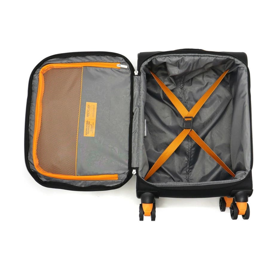外装と内装に回収したPETボトルを100%原料とした再生素材を使用したソフトケース『APPLITE 4.0』。機内持ち込みサイズでわずか約2.1kgの軽量設計により、軽快に持ち運べます。内装には、荷崩れを防ぐクロスストラップや小物収納に便利なメッシュポケットを完備。外側のファスナーを開閉することで上部が膨らみ、必要に応じて容量を調整できます。シンプルで洗練された外観に、スポーティーなアクセントカラーを効かせた立体的なデザインが際立つ一品です。