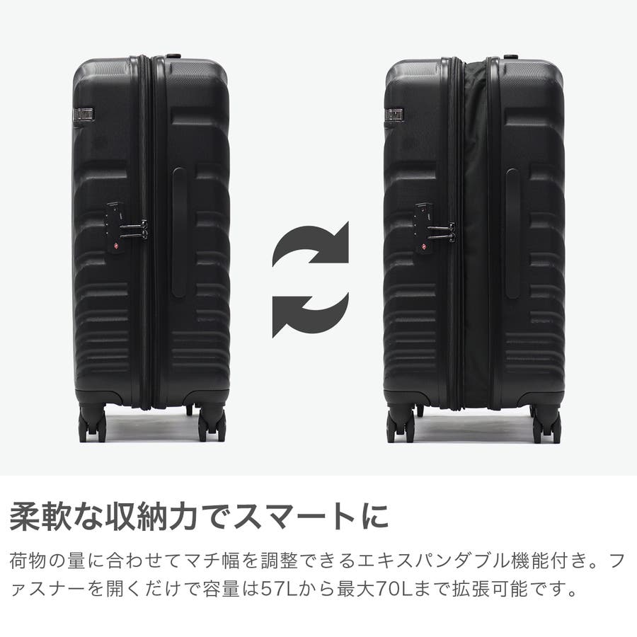 荷物が増えても安心のマチ拡張機能を備えた『OVAL2/オーバル2』シリーズの57Lのスーツケースです。美しい流線型のリブデザインのボディには、衝撃に強く耐久性に優れたABS混合樹脂を採用。利便性の高い機能を備えただけでなく発色の良い鮮やかなカラーリングで、トラベルシーンを明るく彩ります。