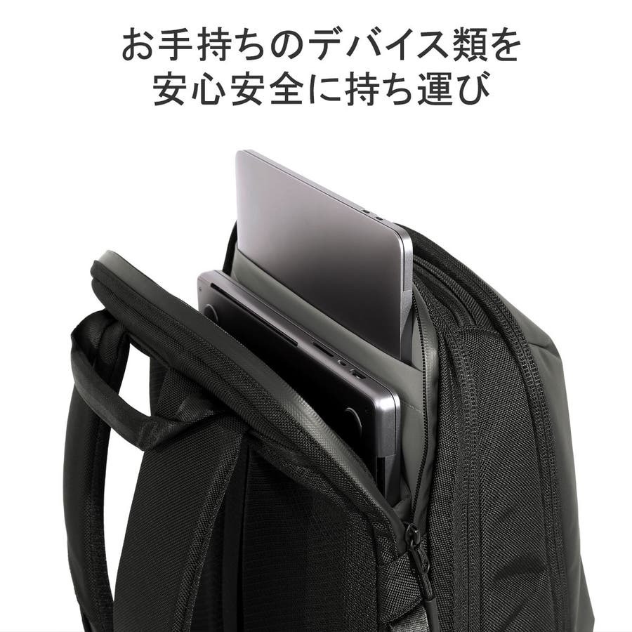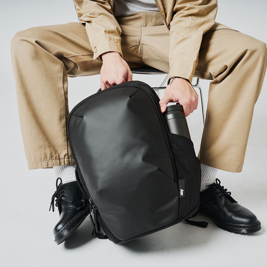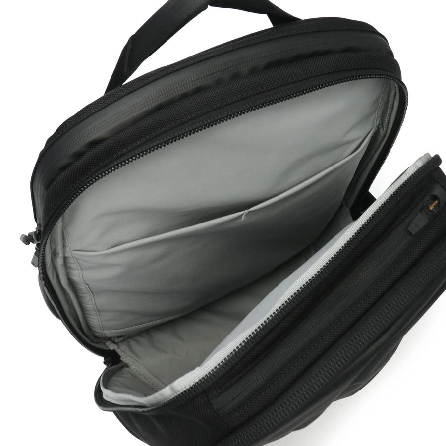 洗練されつつ、ほどよい抜け感のあるフォルムを持つこちらのデイパックは、多彩なギアを機能的に持ち運べるように設計されています。本体には、強度のあるナイロンを採用。フロントには、防水性に優れた素材を使用しています。また、置いても倒れない自立性も搭載。多くのギアをスマートに持ち運びたい方必見のデイパックとなっています。