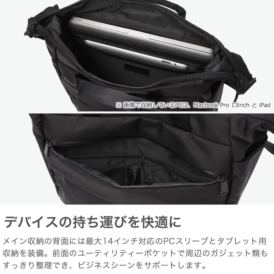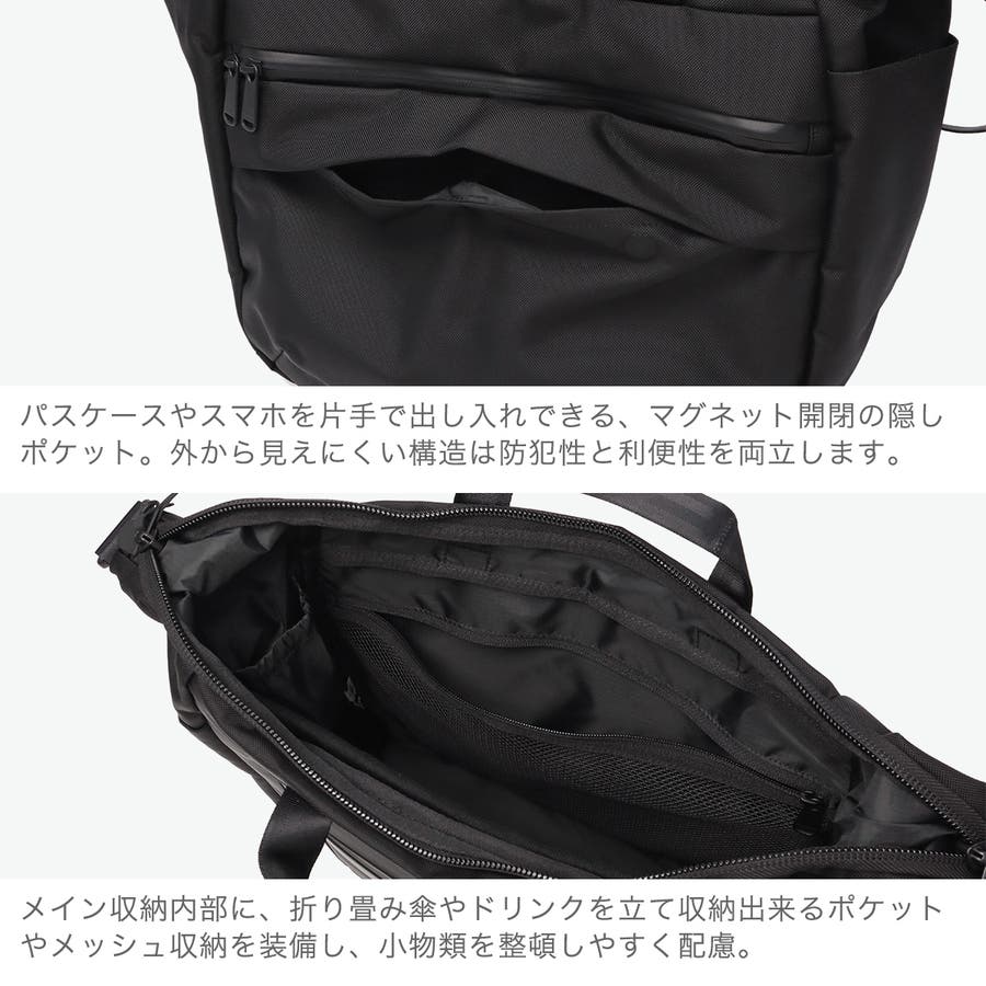 「本当に持ちたくなる仕事鞄」を目指して開発された、ビジネスでも使いやすいショルダーバッグ。ビジネスシーンにおいてだらしないと見られがちなイメージを払拭し、スマートな見た目と本格的な設計を極めました。あるべき場所にあるべき機能を搭載し、一つ一つの行動をノンストレスで行え、頼りになるアイテムに仕上がっています。