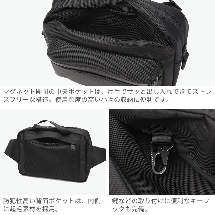 迷いを減らし、生産性を高めるためのプロダクトをめざしたボディバッグ。 Robic Airナイロンと防水メンブレンによる耐水圧10,000mmの高機能ファブリックを採用し、耐摩耗性・耐引裂性・軽量性を高次元で両立。プロフェッショナルの現場に求められる合理性と快適性を併せ持つ、ANINSANEを象徴するハイパフォーマンスシリーズです。