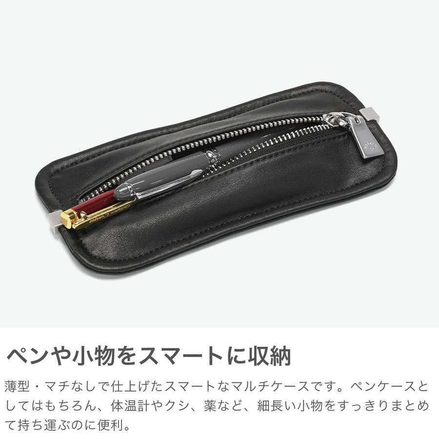 “世界一柔らかい革”を目指して作られた素材「Reality Leather」を使用した、マチなしの薄型スマートポーチ。ペンケースとしてはもちろん、体温計やクシ、薬など細長い小物をすっきり収納可能です。バッグの中で散らばりがちなアイテムもまとめて整理でき、シンプルなデザインだから使い方は自由自在。日常のちょっとした持ち物をスタイリッシュに持ち運べるアイテムです。