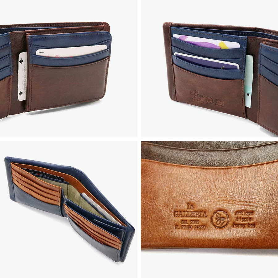 レザーにアンティークカラーの美しい色ムラを施した、深い陰影のある『Arrosto/アーロスト』の二つ折り財布。柔らかな触り心地が魅力となっており、緩やかな中縫いと端正な表情の外縫いを組み合わせた、こだわりのアイテムとなっています。