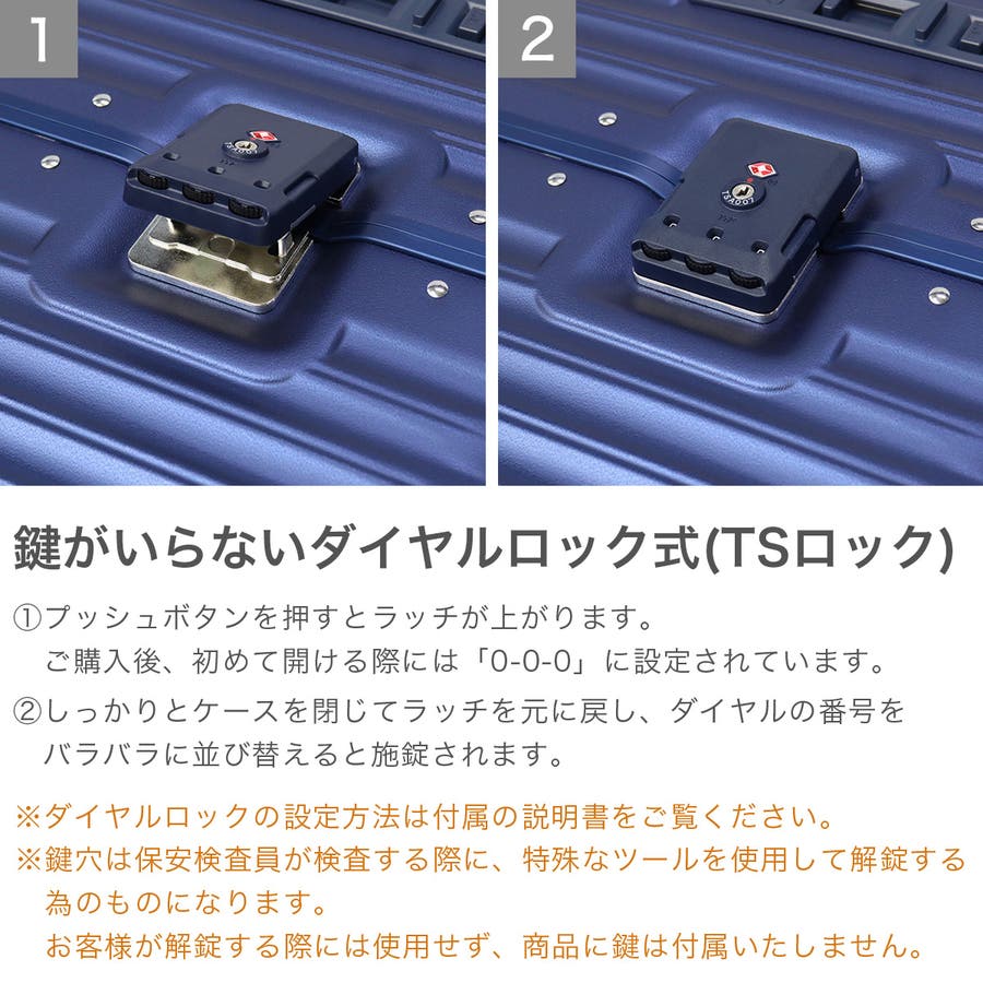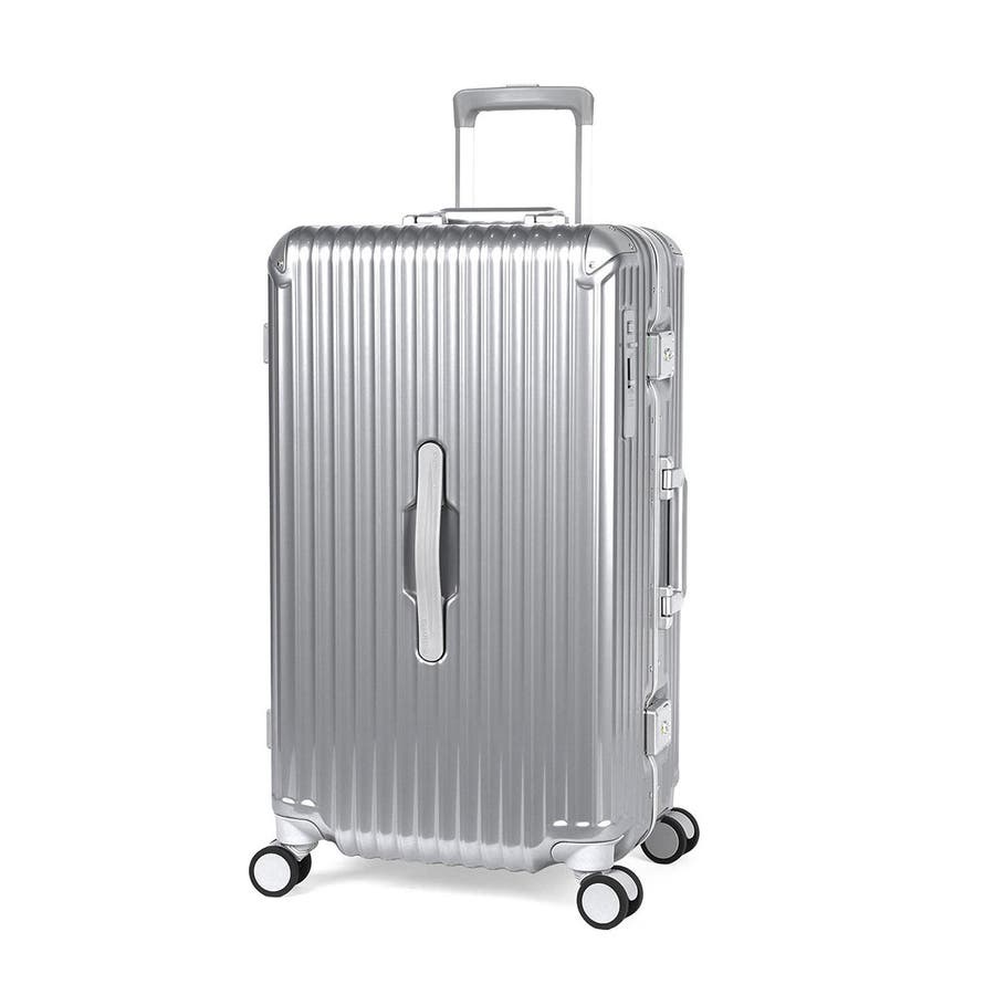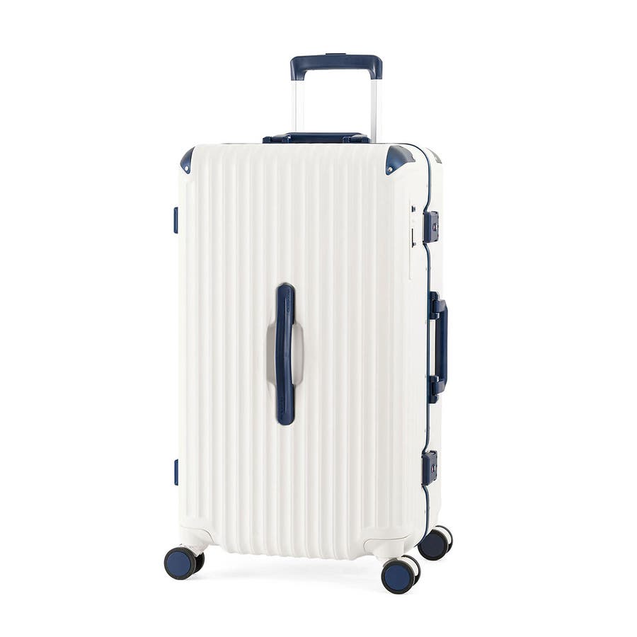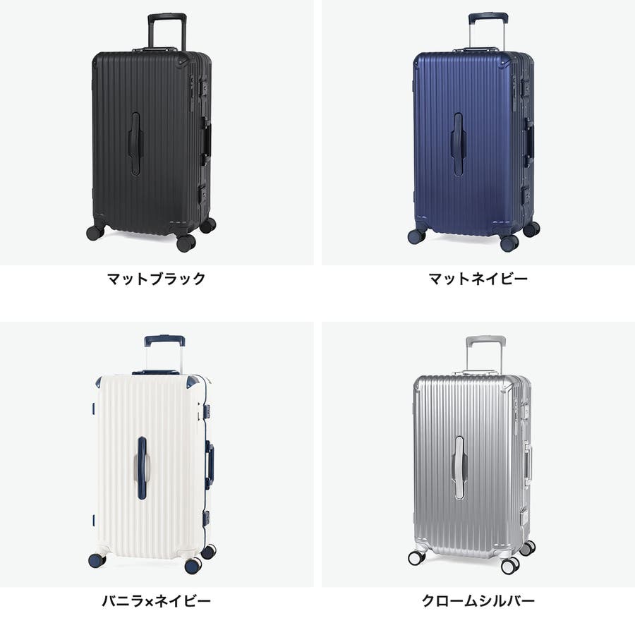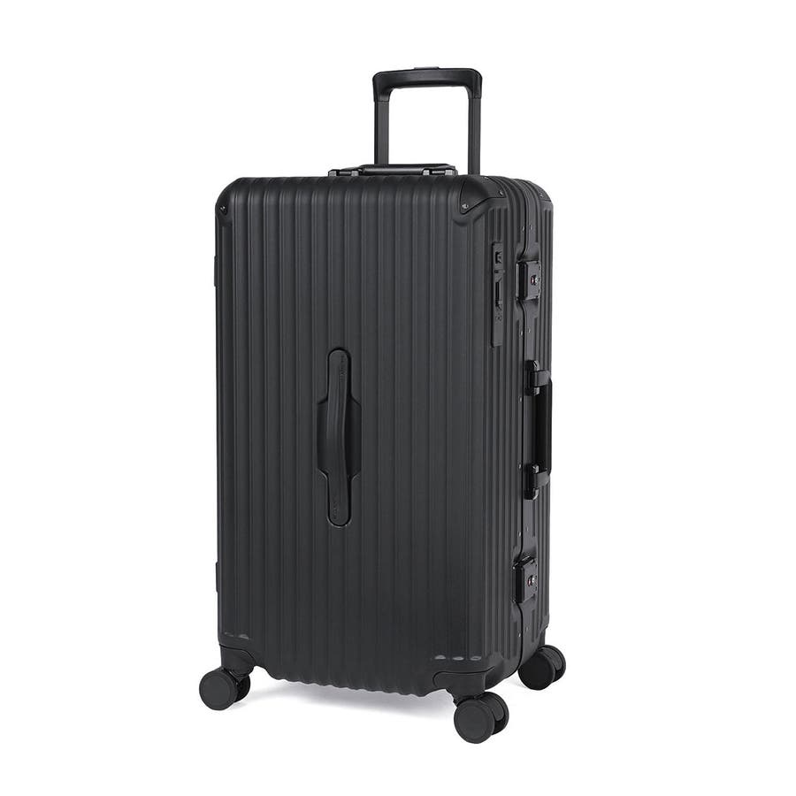 スタイリッシュなデザインが魅力のスーツケースです。こちらは、70L容量で6泊~7泊の旅行や出張に最適です。静音ダブルキャスターと前輪ストッパーで移動もスムーズ。ボトムハンドルで持ち上げやすく、抗菌ハンドルや内装防水ポケットなど機能も充実。100%ポリカーボネート製のフレームタイプで高い耐久性を誇り、ラッチ型TSロック付きで安心です。