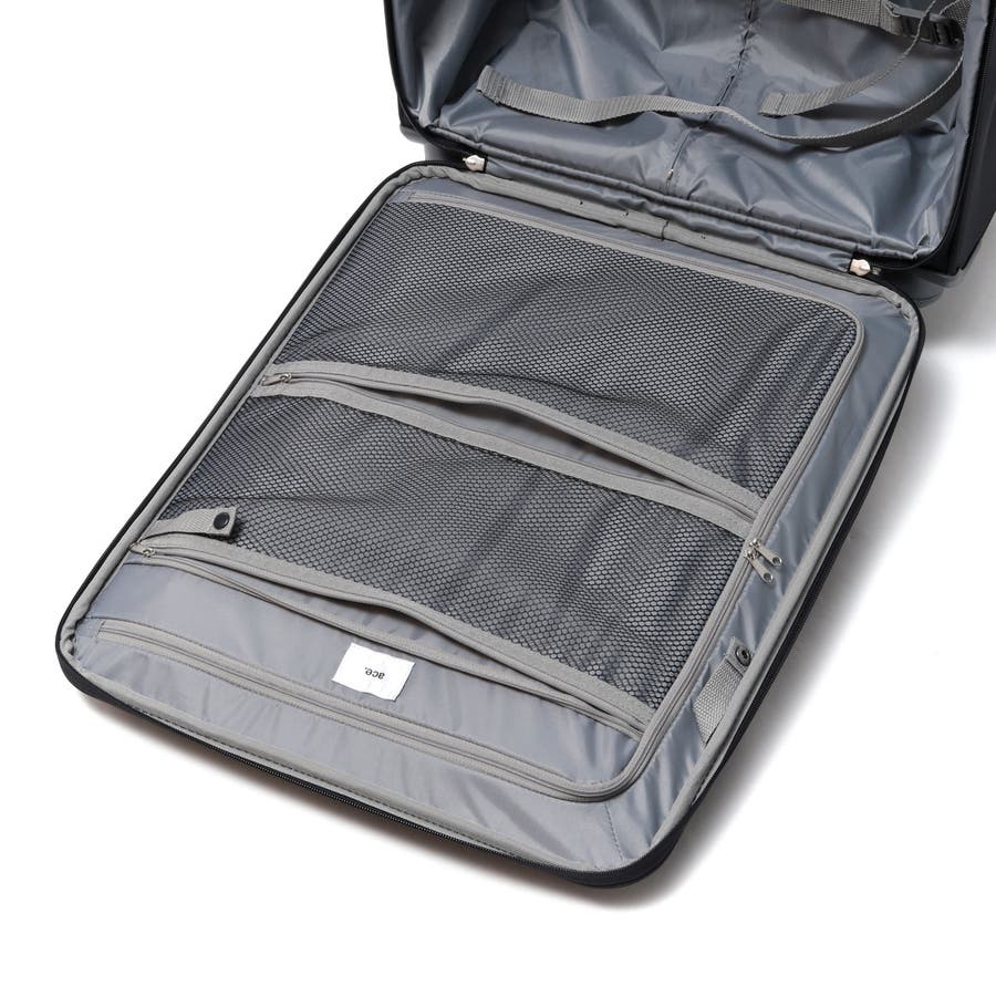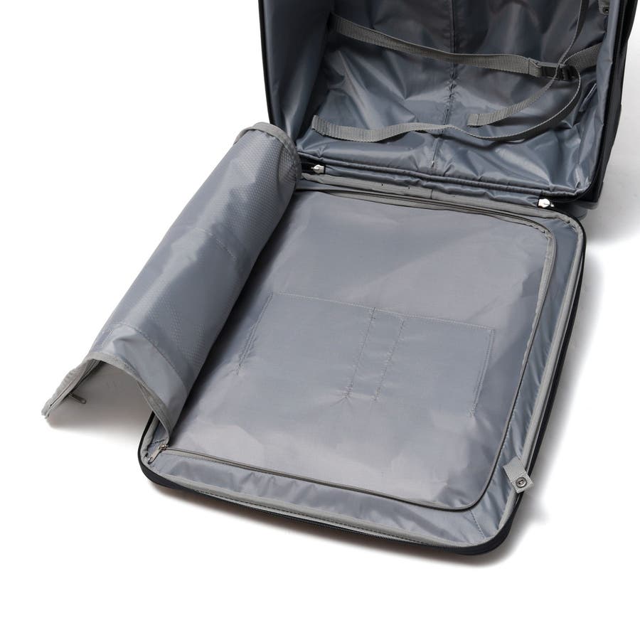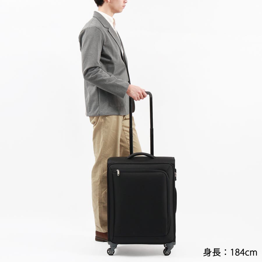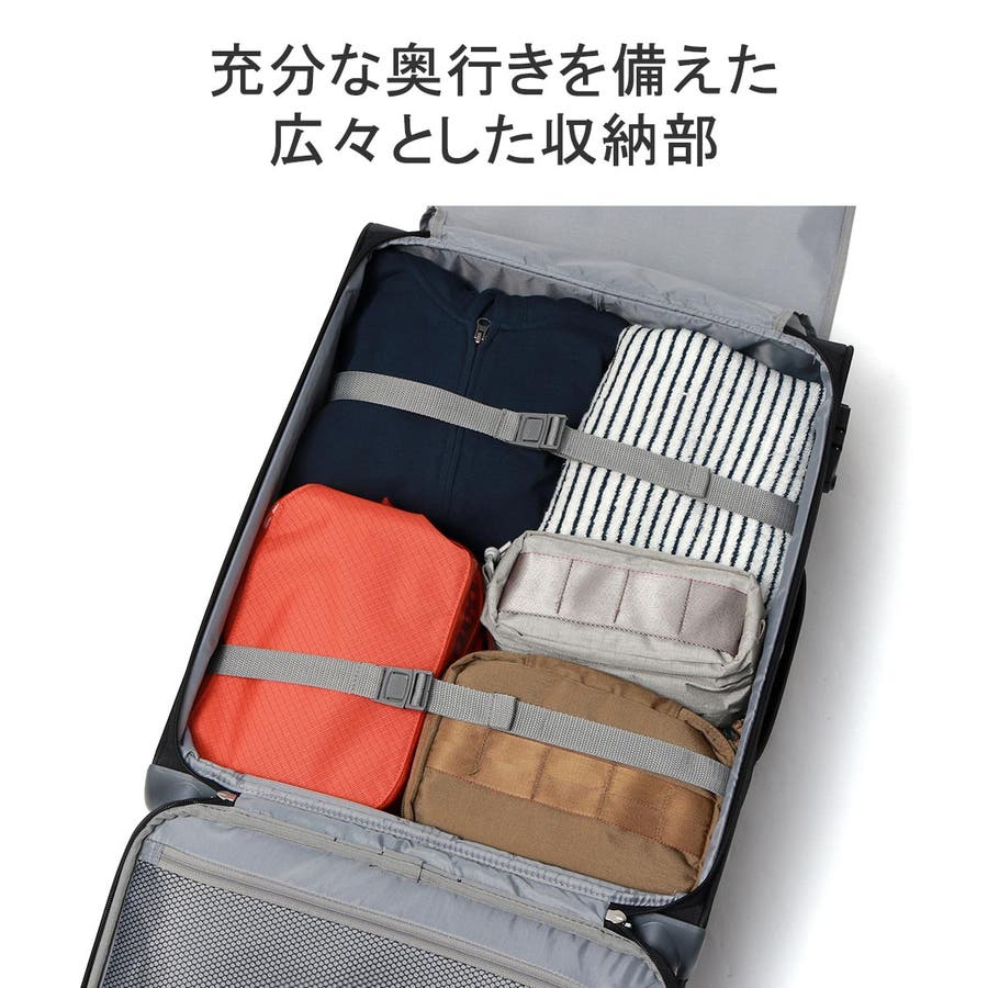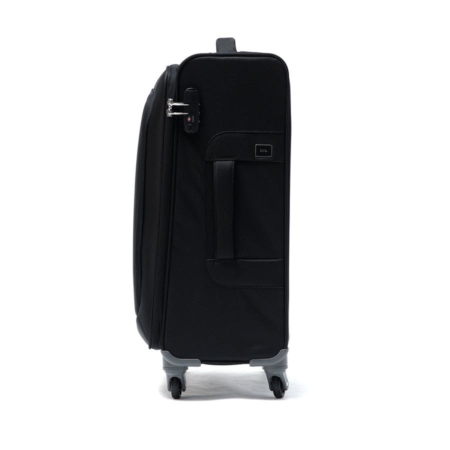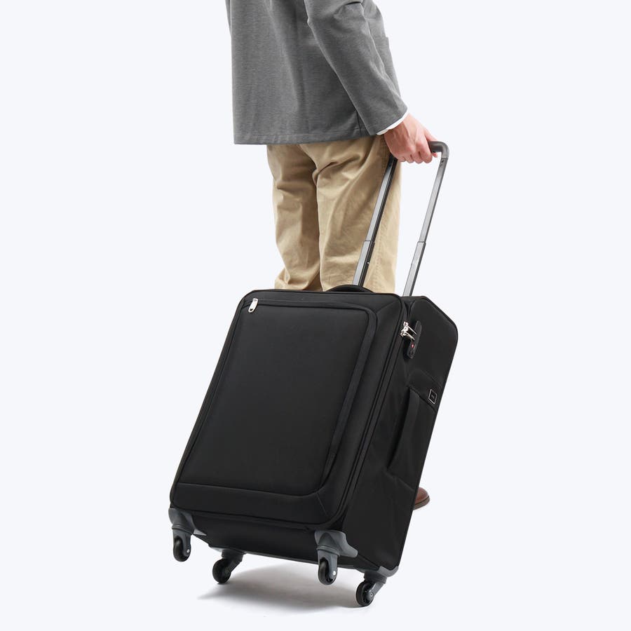 軽量かつ丈夫な素材を採用し、耐久性と軽量性を両立したソフトトローリー。こちらは3~5泊程度の旅行に適した容量58Lサイズです。開閉は縦開きタイプで、両脇のベルトをスナップで留めればハーフオープンにすることが出来ます。収納部には目隠しになる仕切り布がついており、空港などで荷物を取り出す際も安心です。旋回性に優れたキャスターやTSロックなど、旅に必要な機能を搭載したベーシックなアイテムです。