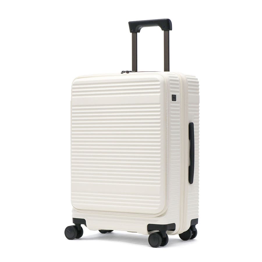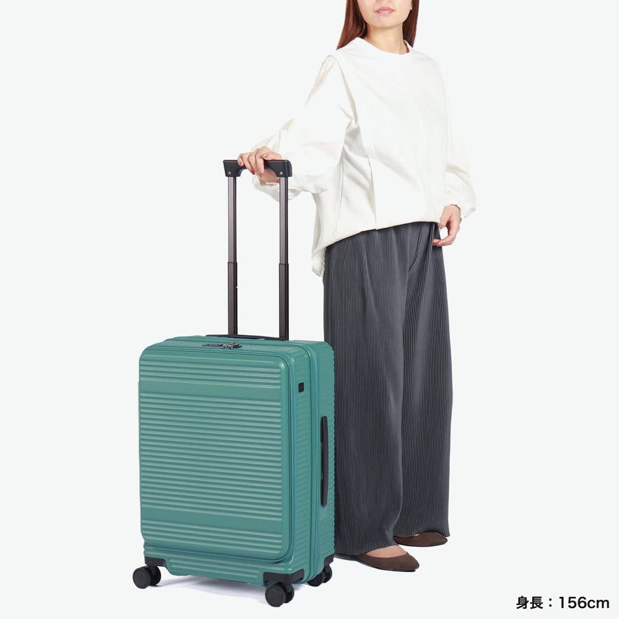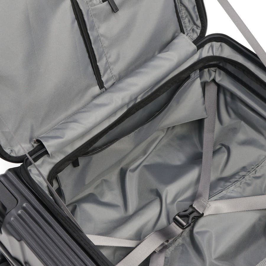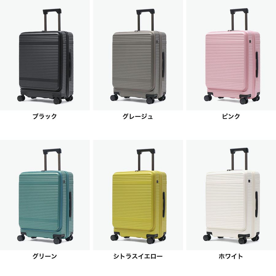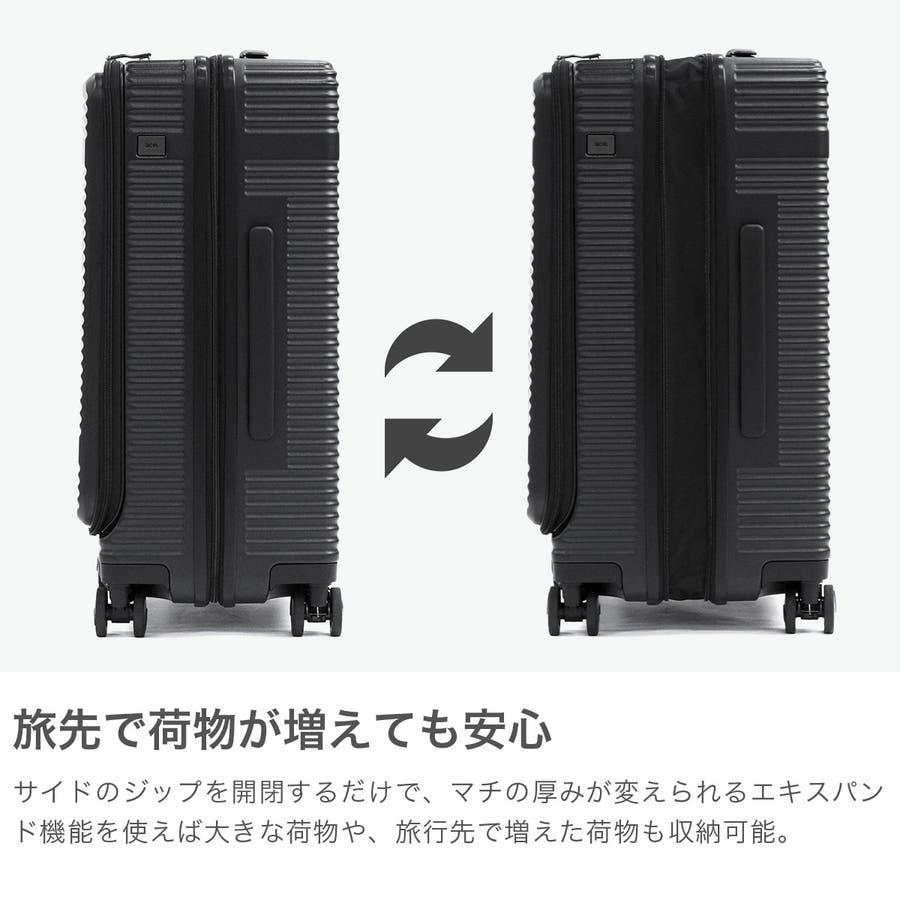 横リブを基調としたシンプルなデザインに機能性をプラスした『サルートン』シリーズ。こちらは4~6泊程度の長期旅行に適したサイズです。荷物の出し入れがしやすいフロントオープンタイプで、旅行先で増えたおみやげなどの収納にも対応できる拡張機能も搭載。快適な旅をサポートする充実した機能が備わっています。