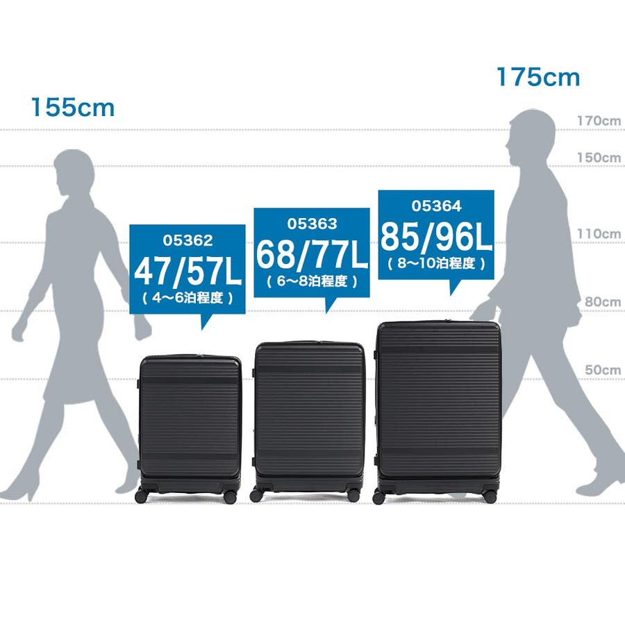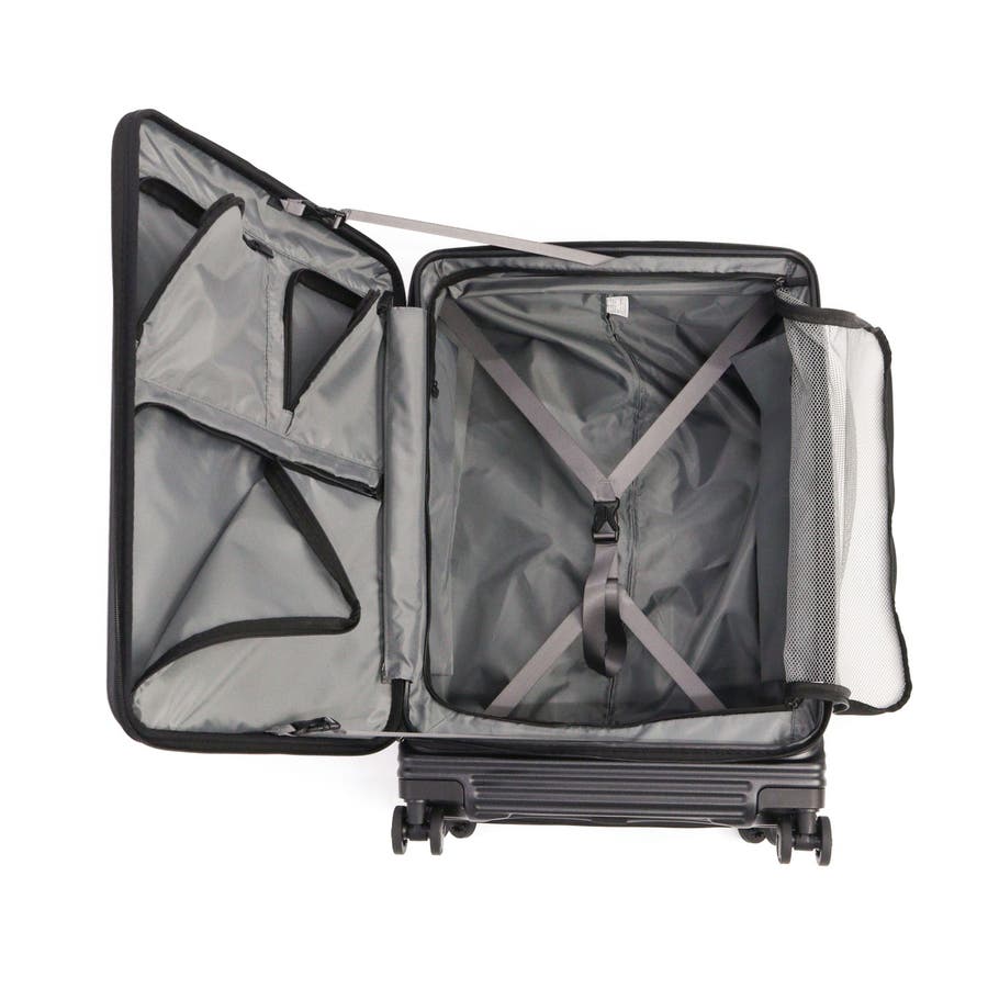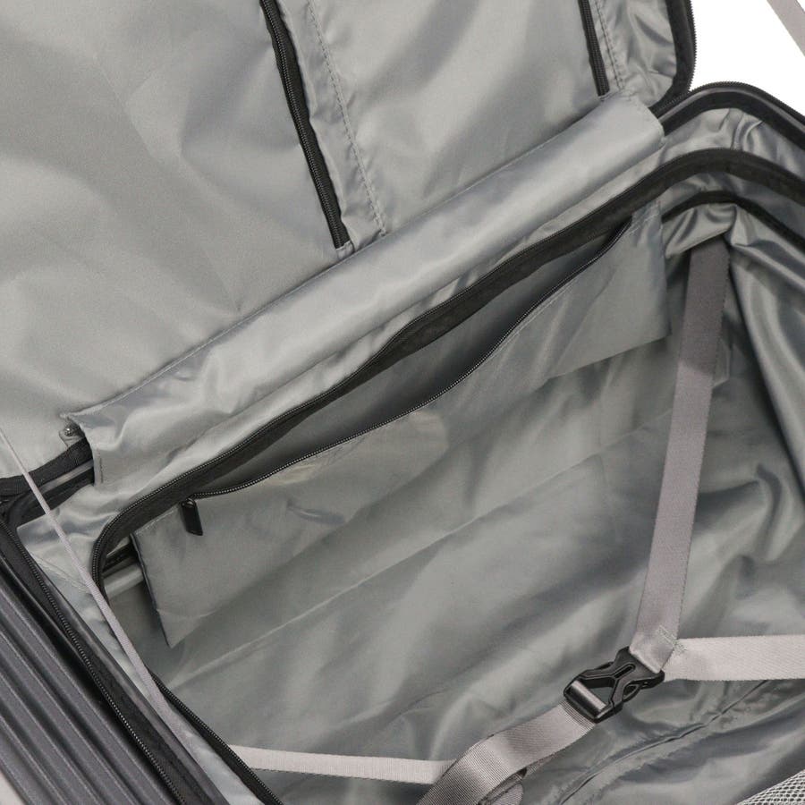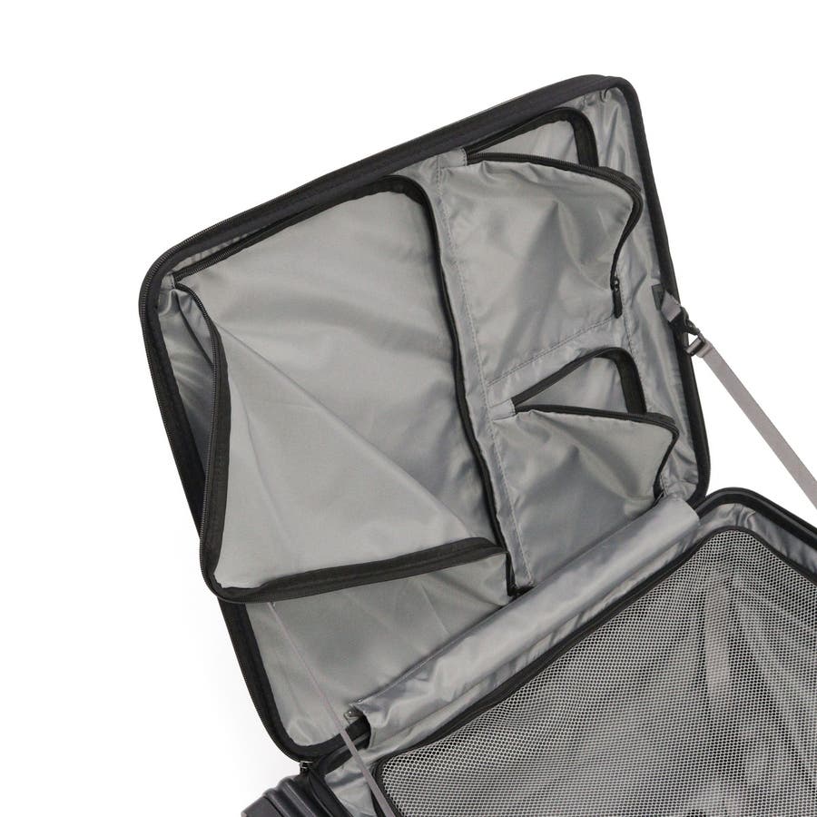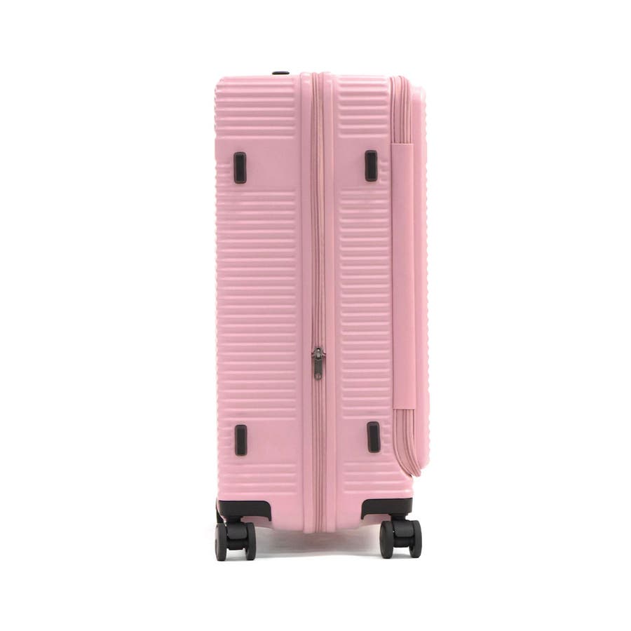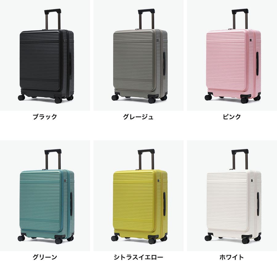 横リブを基調としたシンプルなデザインに機能性をプラスした『サルートン』シリーズ。こちらは6~8泊程度の長期旅行に適した大きめサイズです。約1週間分の荷物が収納でき、スムーズな出し入れを叶えるフロントオープンタイプ。荷物の増減にも対応できる拡張機能など、快適な旅をサポートする充実した機能が備わっています。